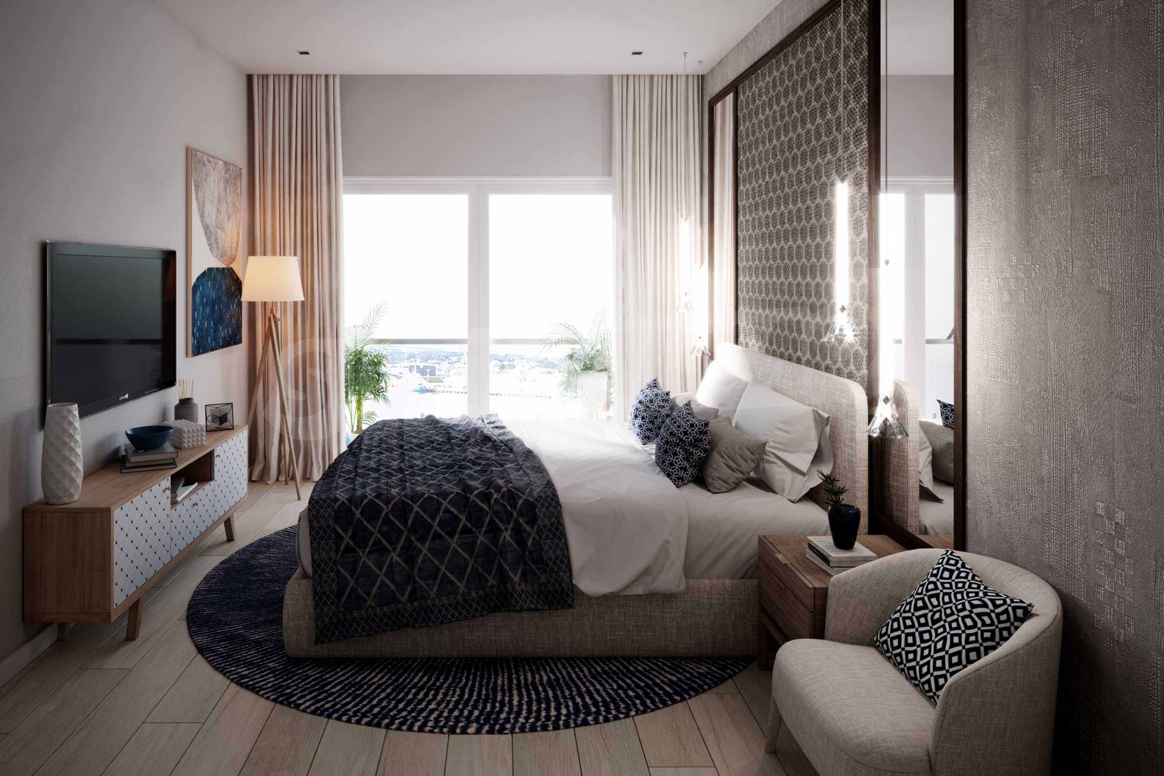 Квартира сочетает исключительный дизайн, просторные и светлые комнаты, высокие потолки и красивый вид из окна. Квартира оснащена итальянской кухней и спальнями с собственными ванными комнатами. Смесители, аксессуары для ванной комнаты, итальянская фарфоровая плитка, имеют безупречное качество и принадлежат престижным европейским брендам, таким как Duravit, Hansgrohe, Italgraniti.