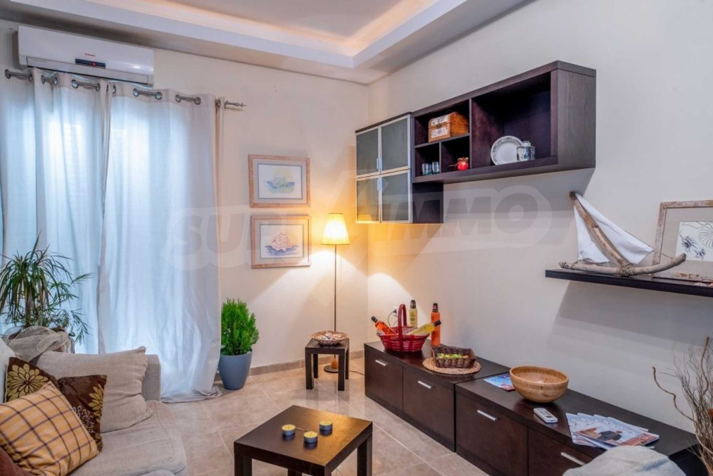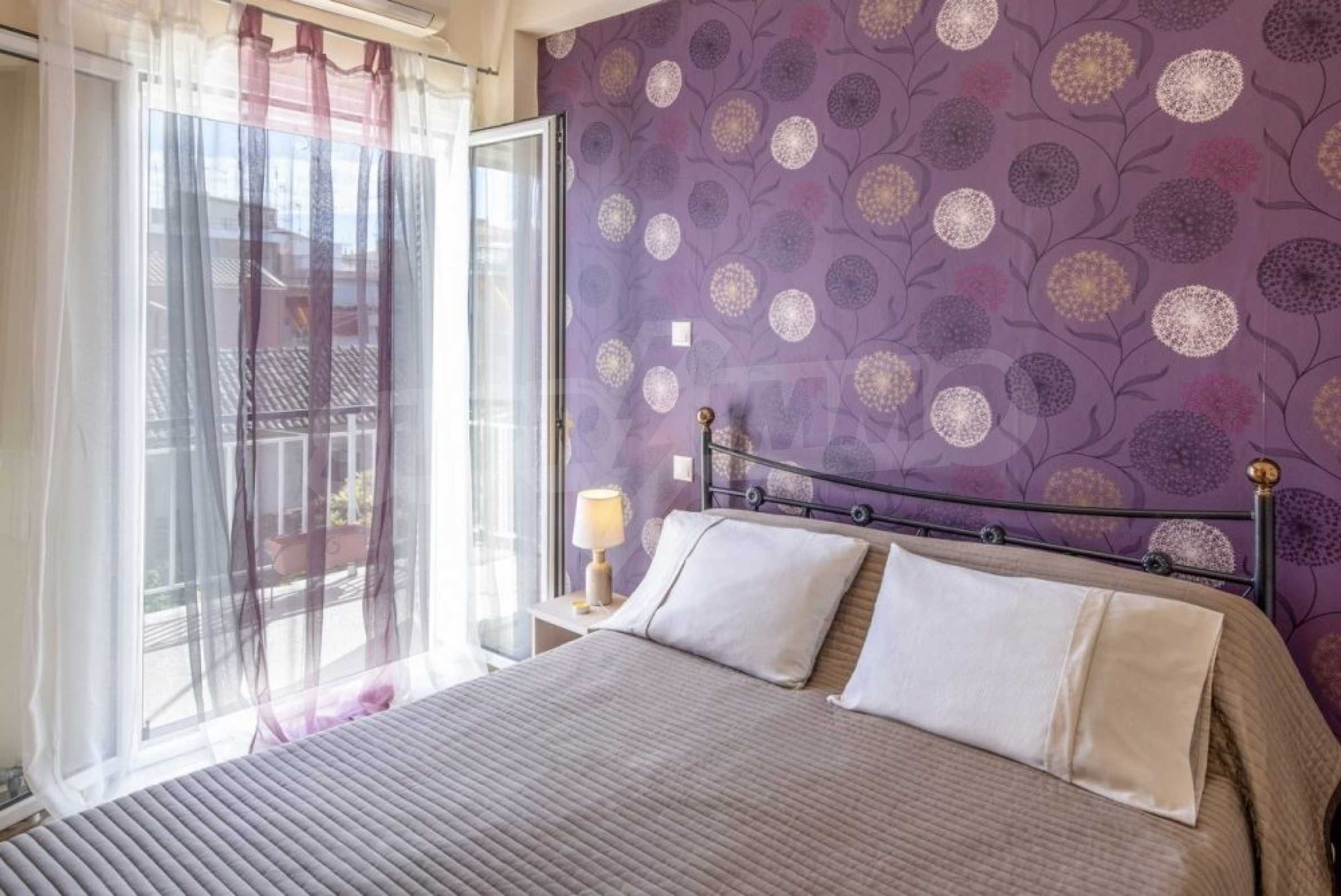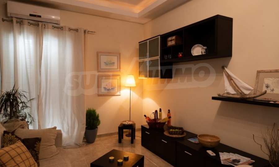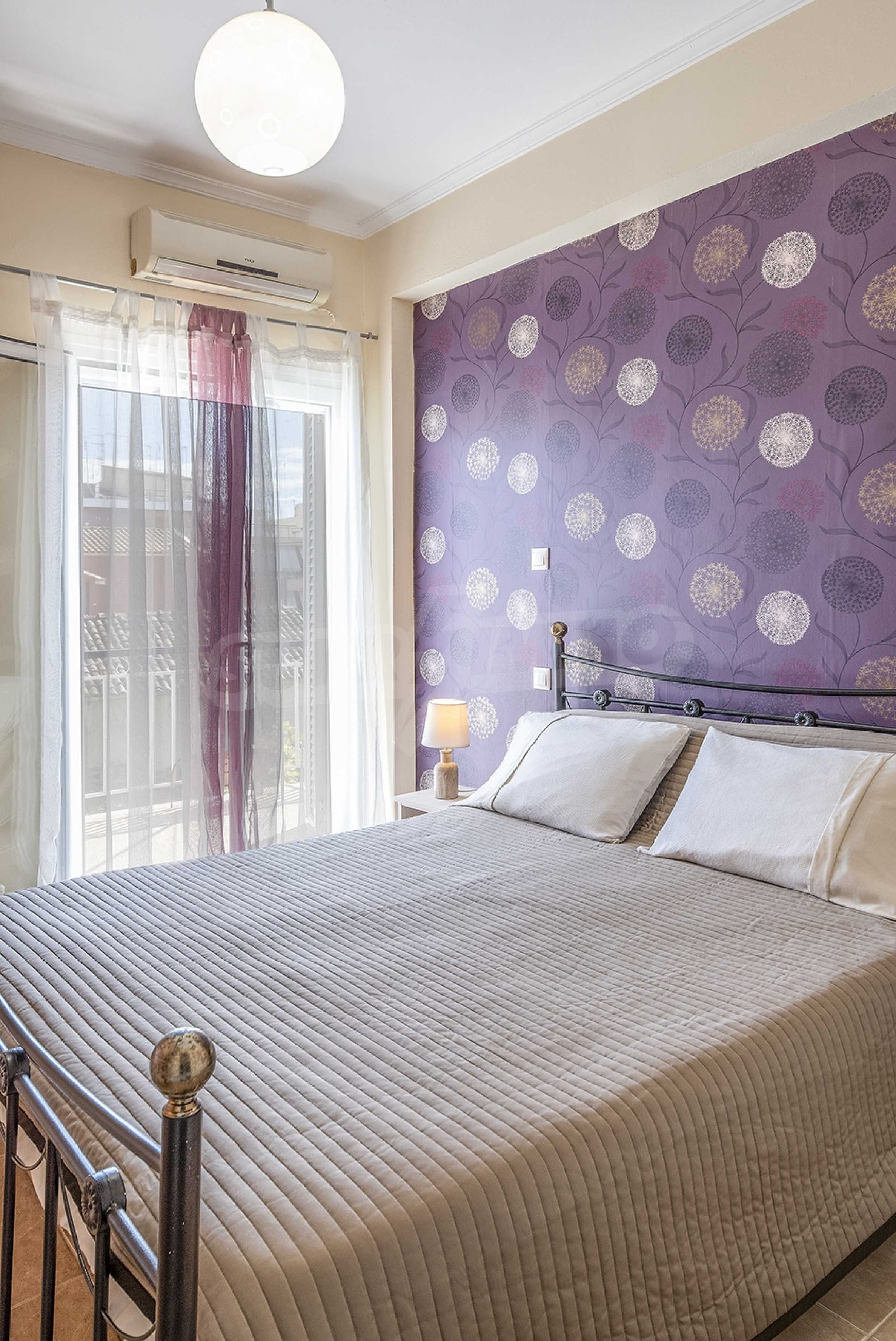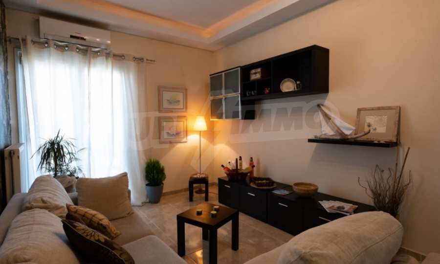 Квартира находится на первом этаже и состоит из 2 спален, ванной комнаты, а также кухни,совмещенной с гостиной и балконом, где раним утром вы сможете наслаждаться греческим кофе. Она недавно отремонтирована и очень солнечная.