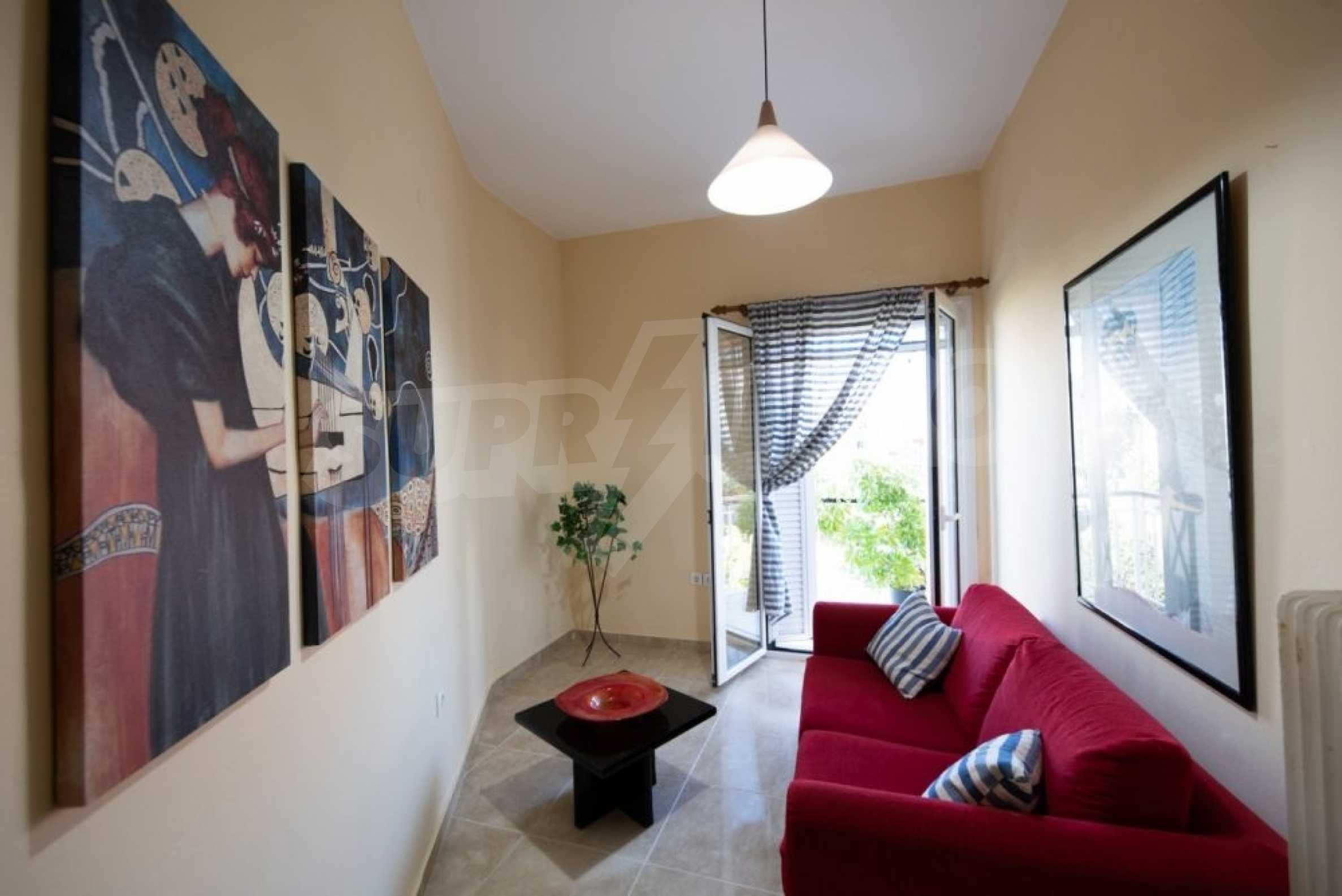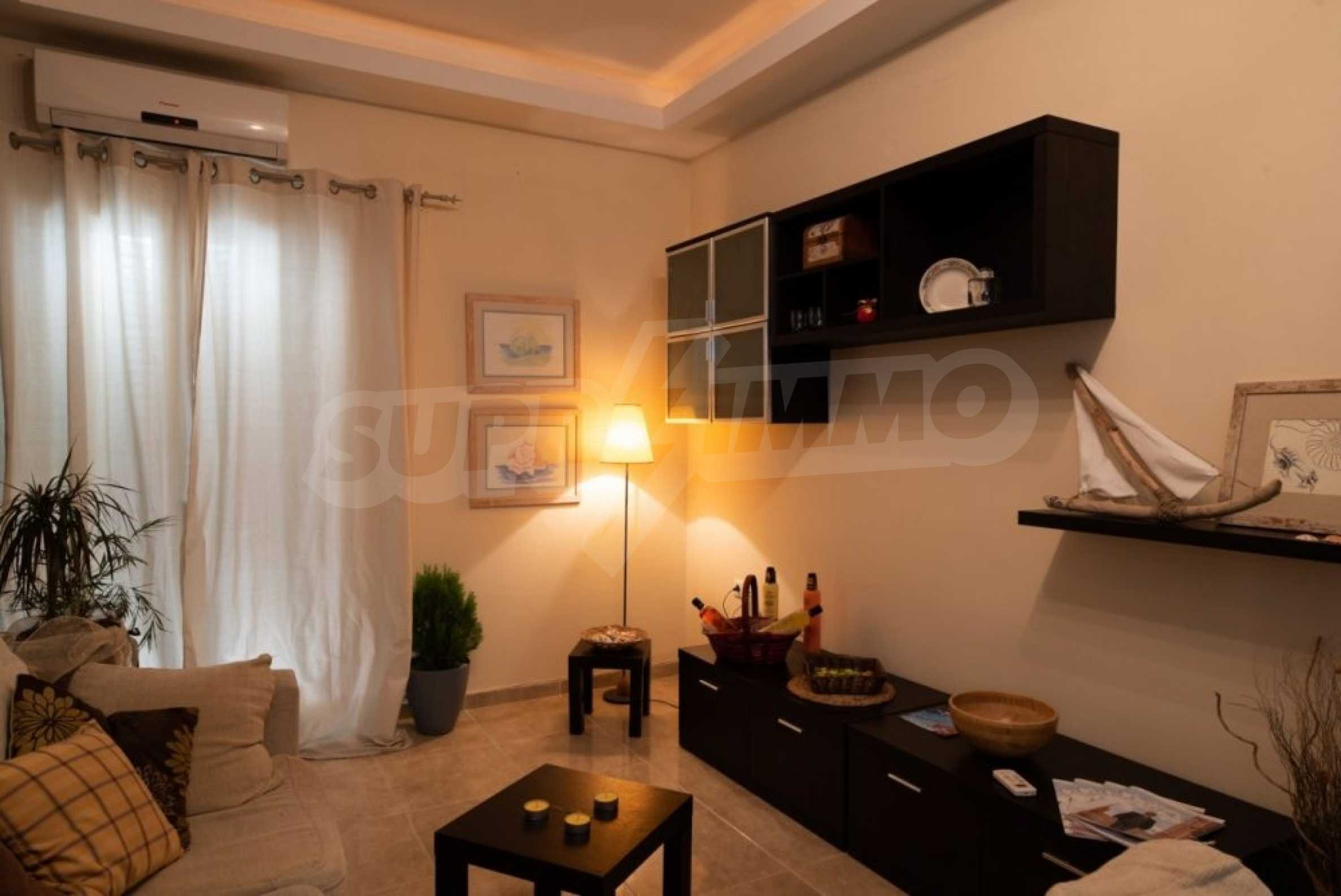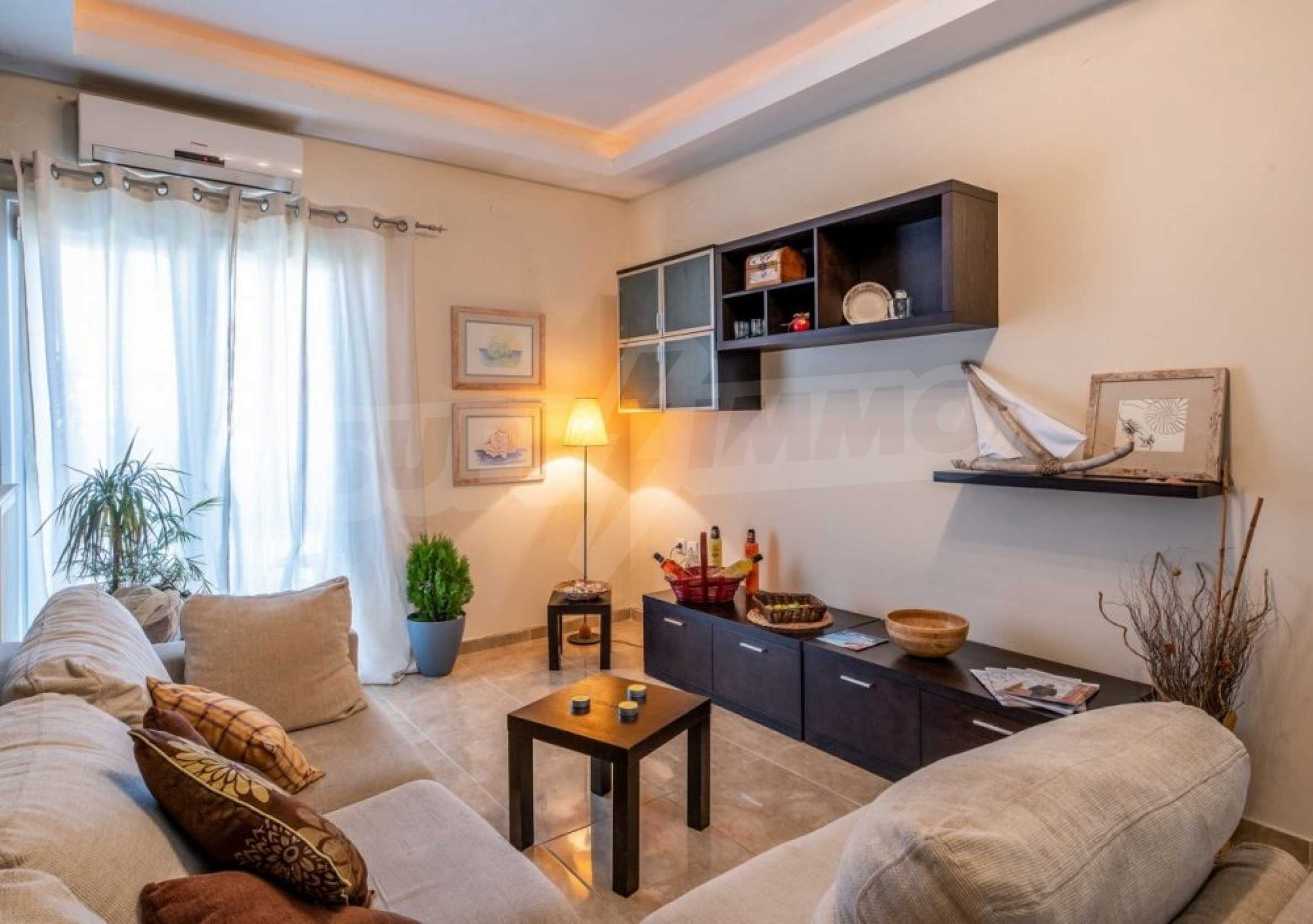Квартира находится на первом этаже и состоит из 2 спален, ванной комнаты, а также кухни,совмещенной с гостиной и балконом, где раним утром вы сможете наслаждаться греческим кофе. Она недавно отремонтирована и очень солнечная.