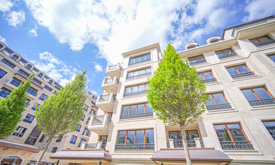 • Лестничные клетки: Цементно-песчаная стяжка и отделка из натурального камня в сочетании с облицовкой фасадов гипсокартоном и высококачественной латексной отделкой стен и потолка.