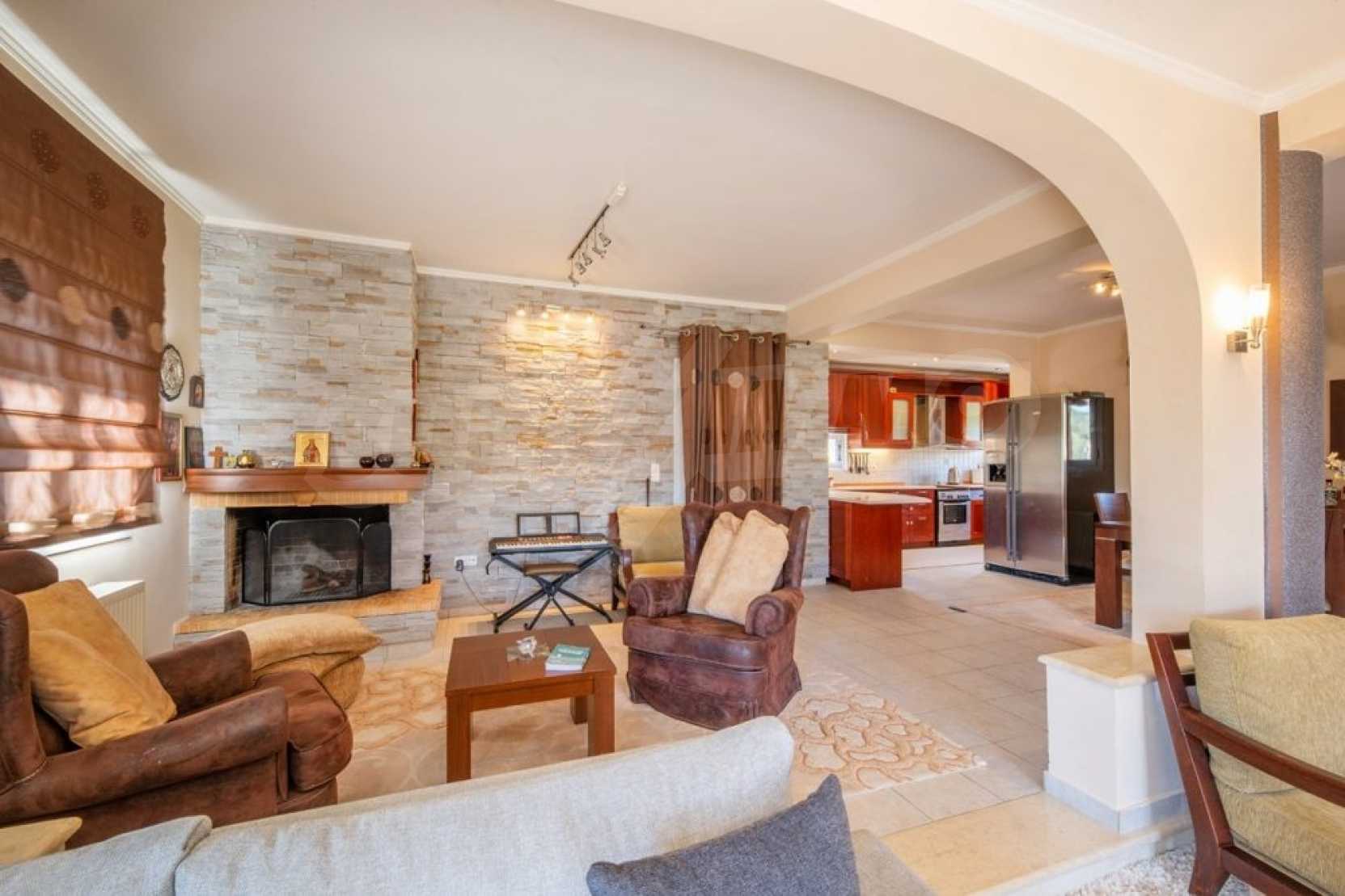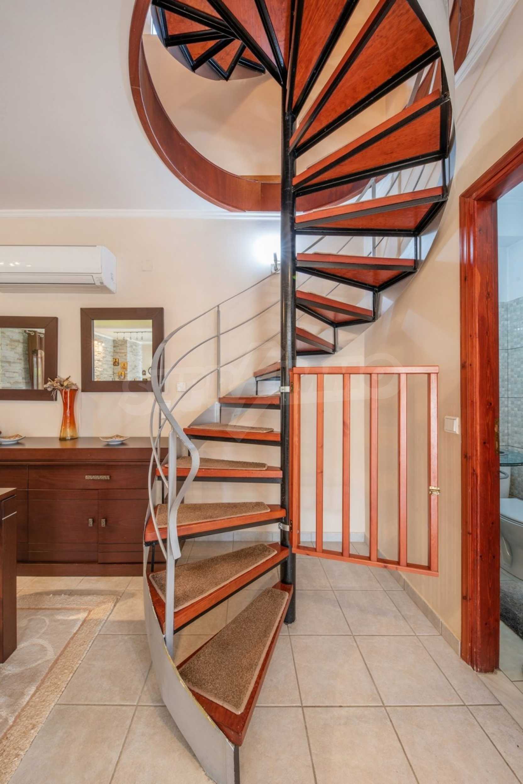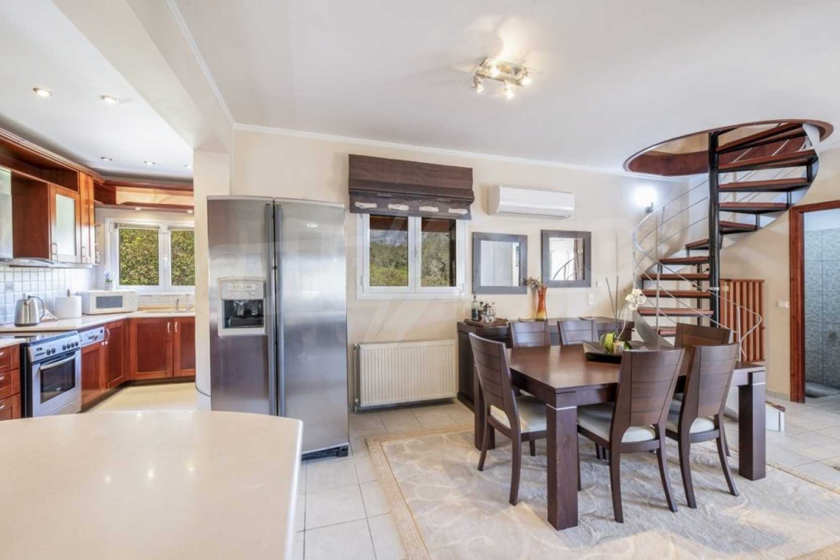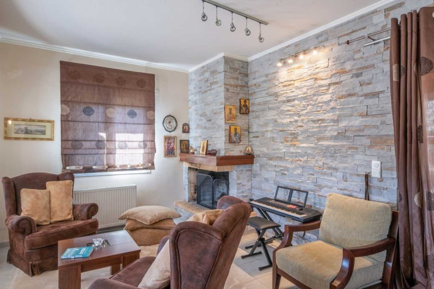 Дом состоит из 3 спален и 1 ванной комнаты, на втором этаже и просторной гостиной-столовой-кухни и туалета на первом этаже. Также есть камин, кондиционер, центральное отопление, окна с двойным остеклением, противомоскитные сетки, жалюзи, частная парковка и электрогенератор. Есть подвальное помещение площадью 100 кв.м , которое легко может быть преобразован в жилую или игровую зону.