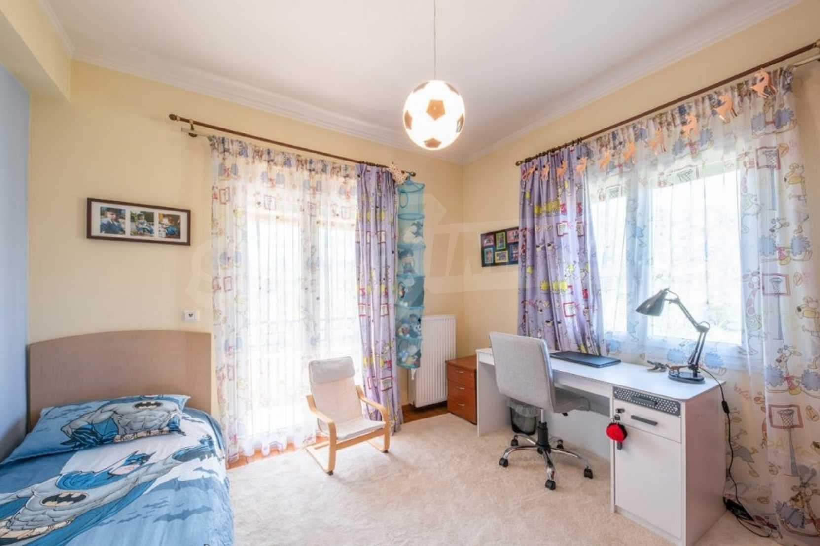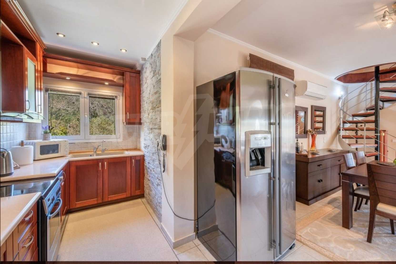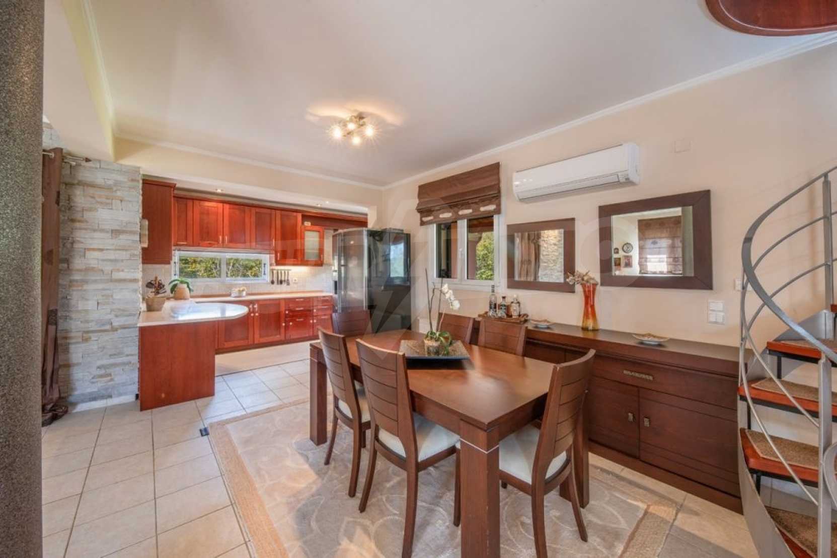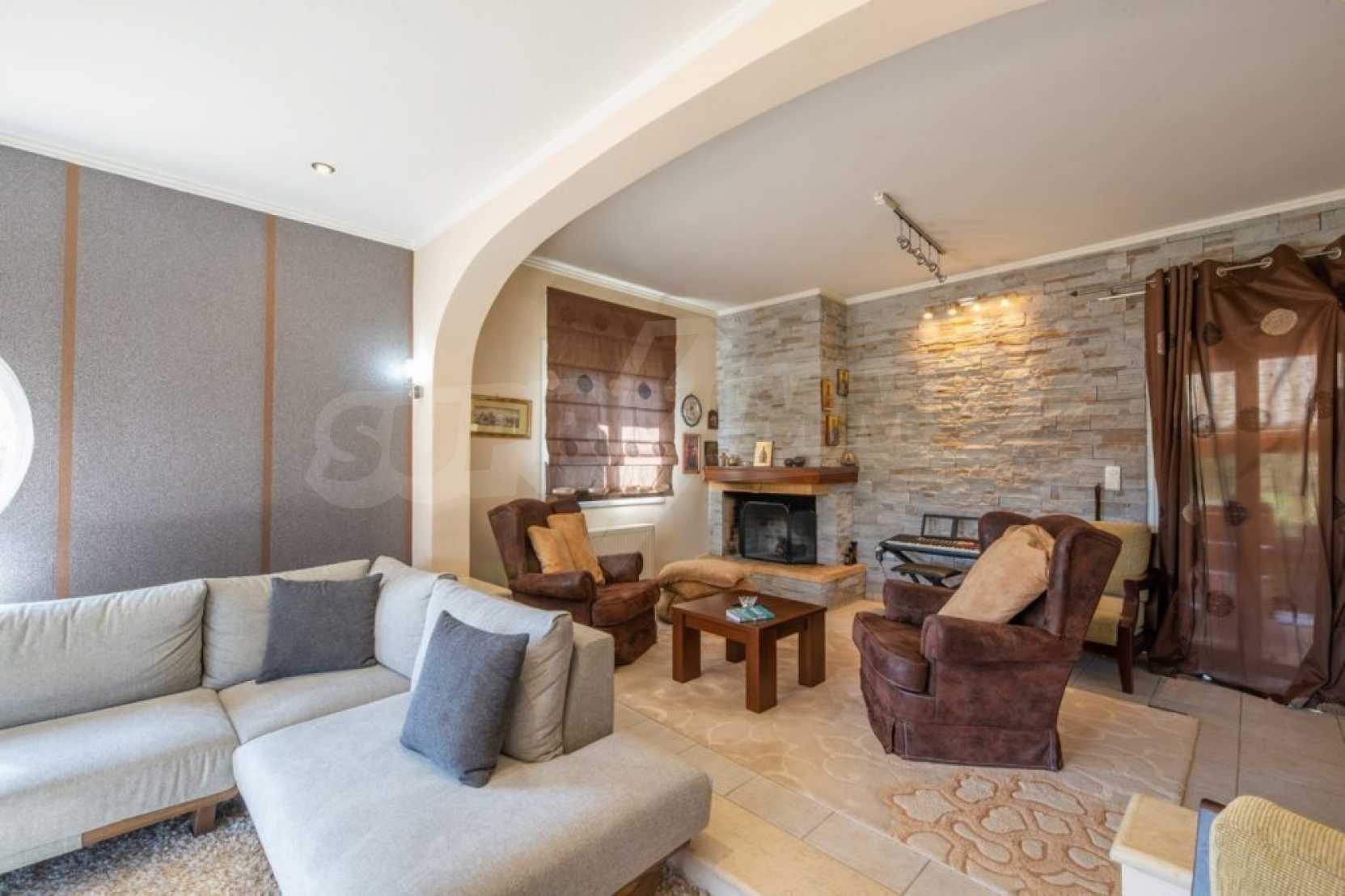 Дом состоит из 3 спален и 1 ванной комнаты, на втором этаже и просторной гостиной-столовой-кухни и туалета на первом этаже. Также есть камин, кондиционер, центральное отопление, окна с двойным остеклением, противомоскитные сетки, жалюзи, частная парковка и электрогенератор. Есть подвальное помещение площадью 100 кв.м , которое легко может быть преобразован в жилую или игровую зону.