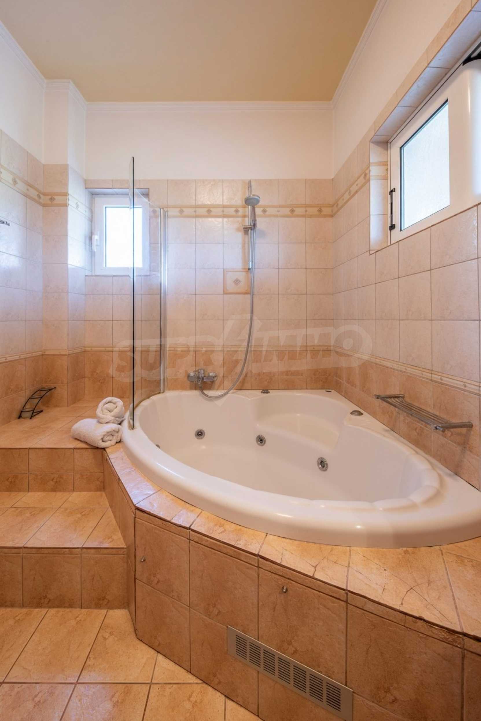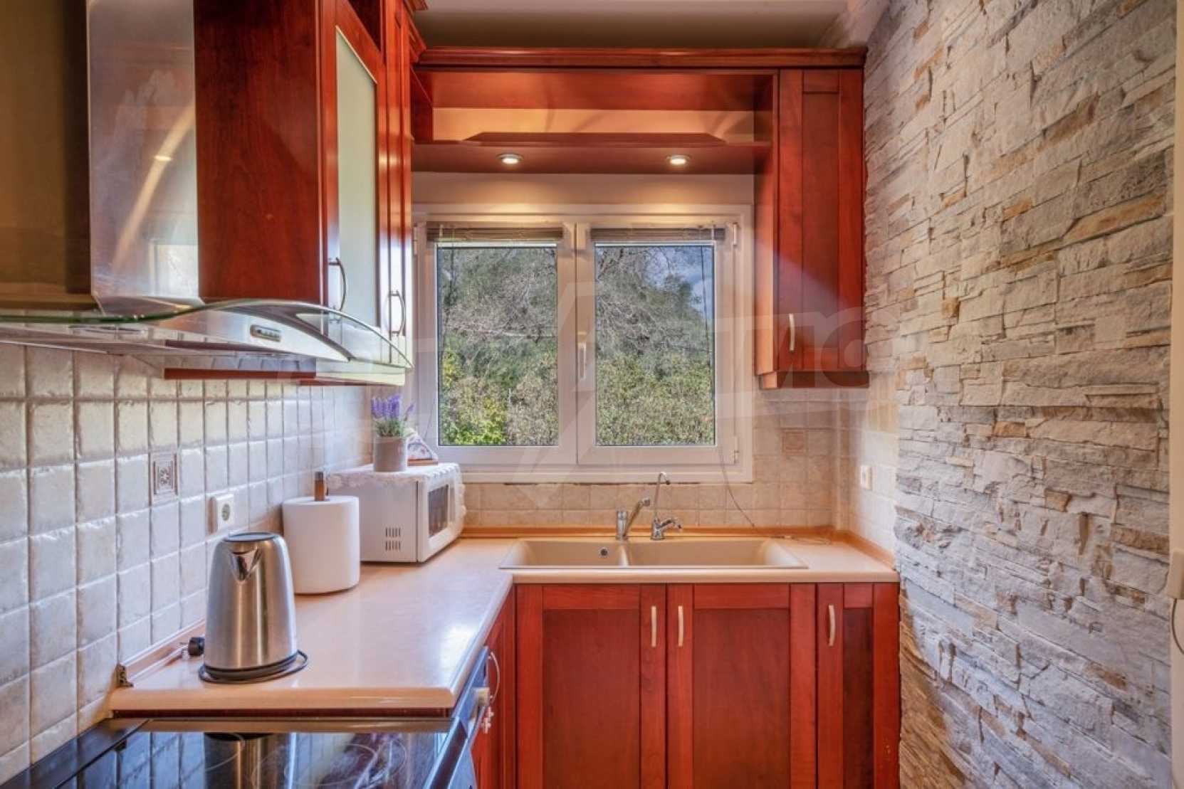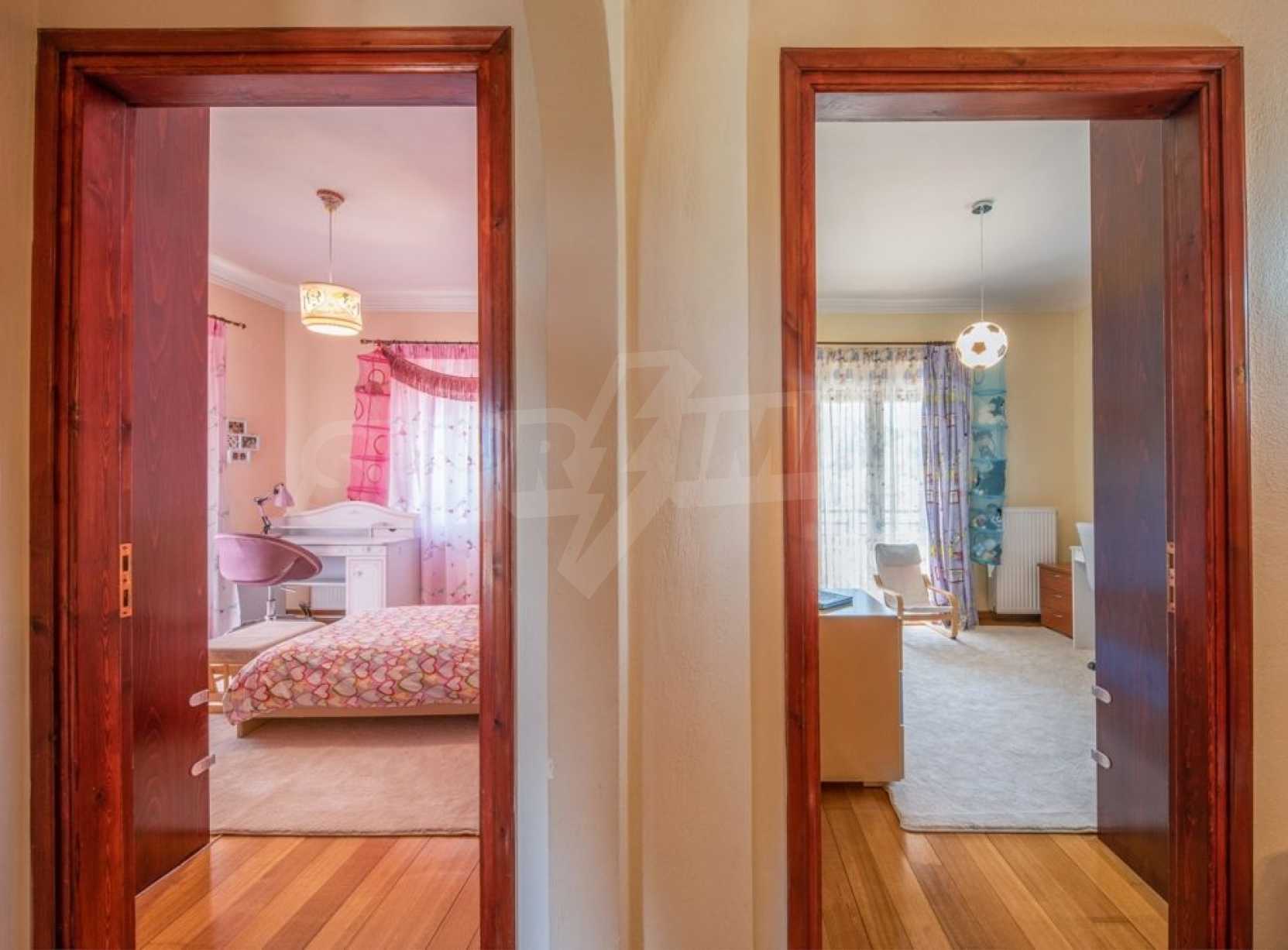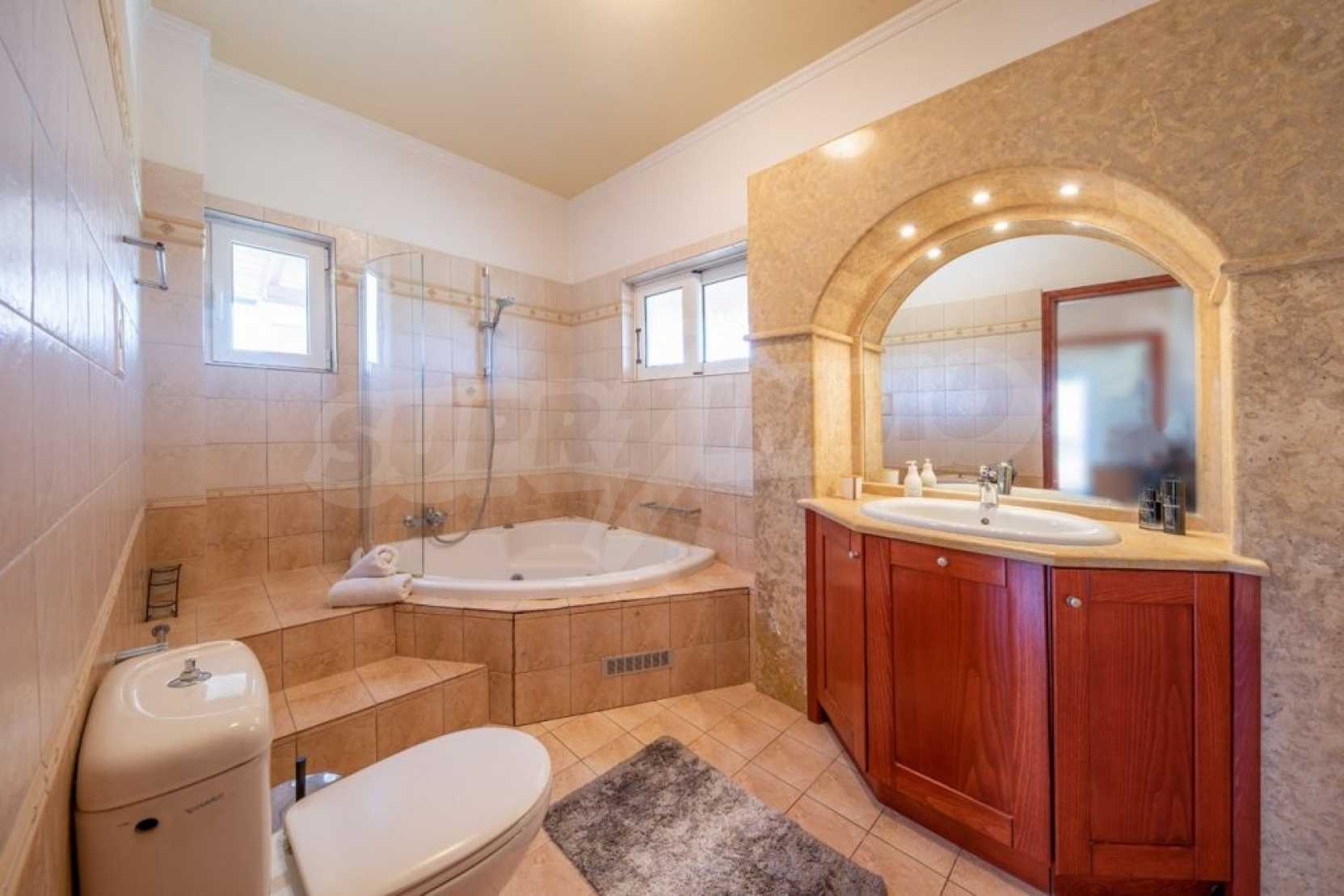 Дом состоит из 3 спален и 1 ванной комнаты, на втором этаже и просторной гостиной-столовой-кухни и туалета на первом этаже. Также есть камин, кондиционер, центральное отопление, окна с двойным остеклением, противомоскитные сетки, жалюзи, частная парковка и электрогенератор. Есть подвальное помещение площадью 100 кв.м , которое легко может быть преобразован в жилую или игровую зону.