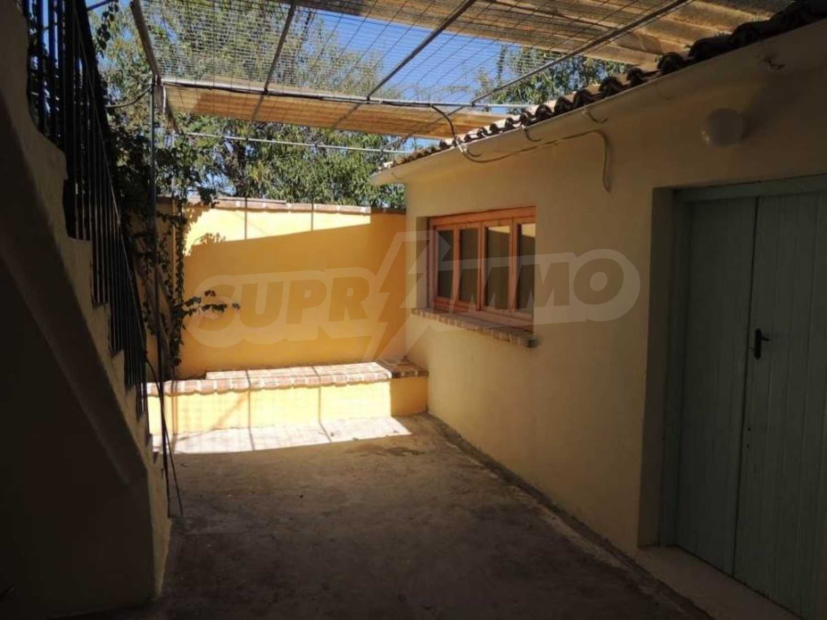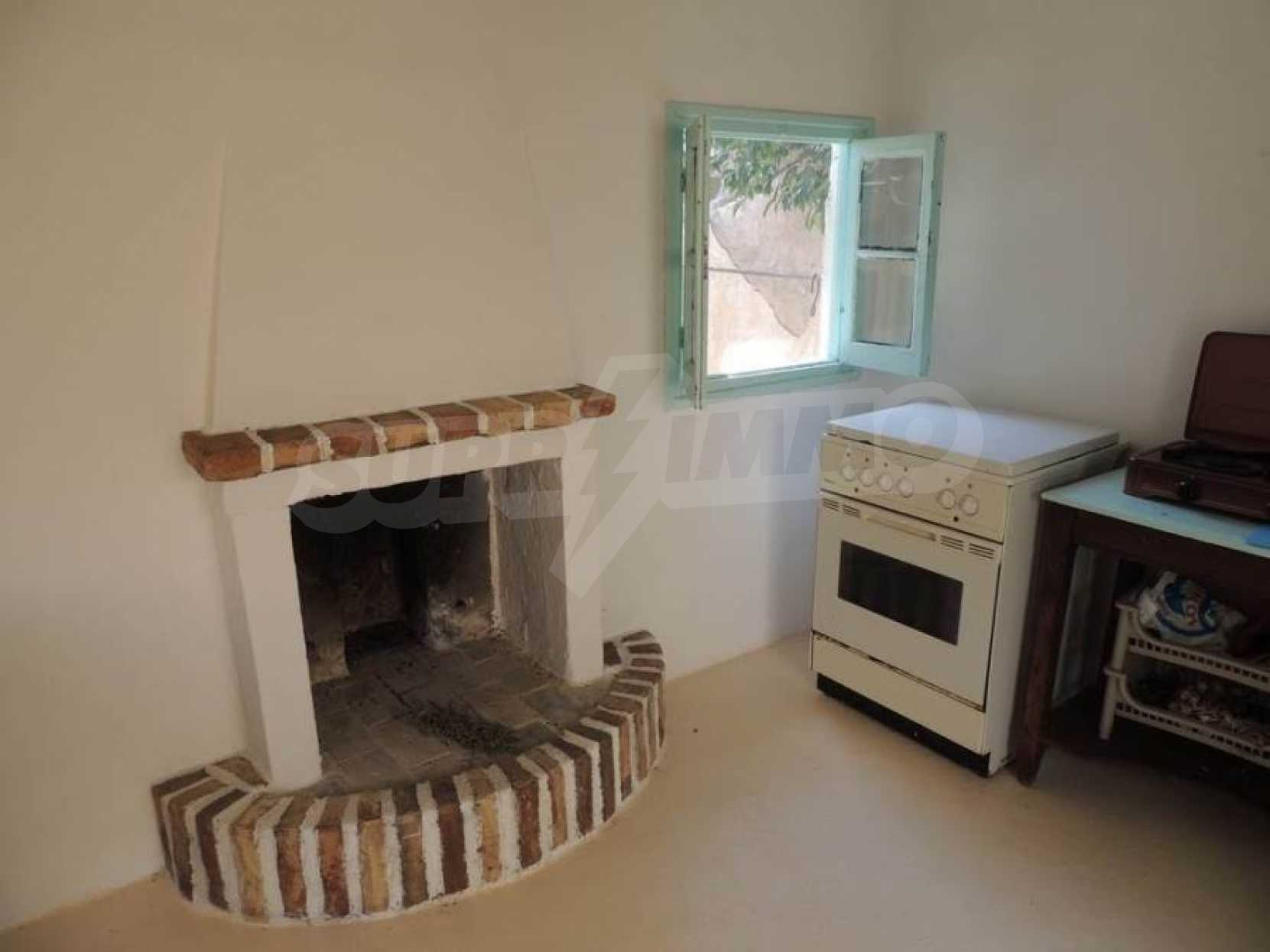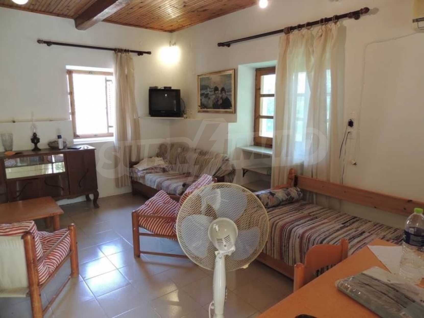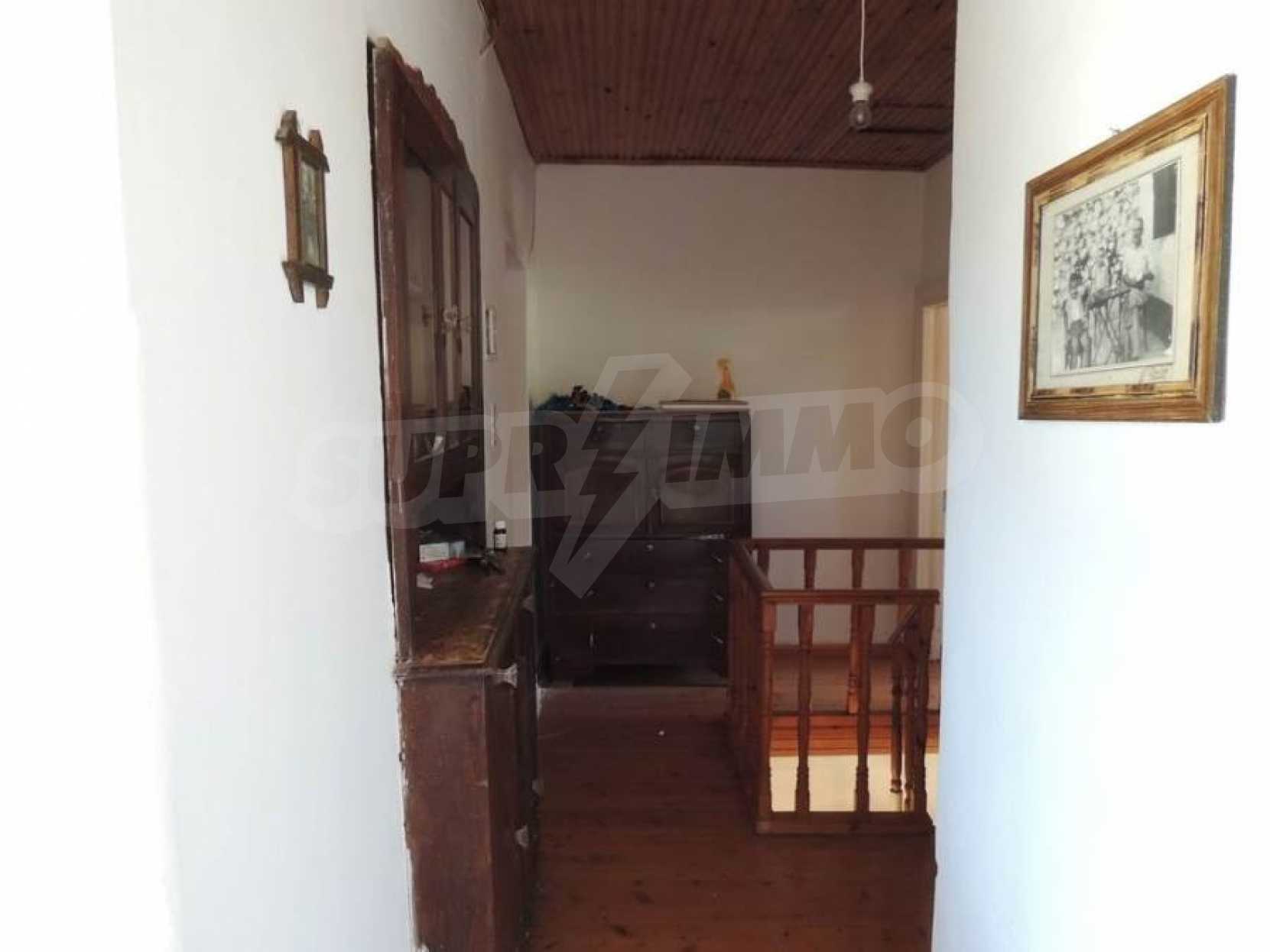 Дом двухэтажный, на первом этаже располагается просторный салон- кухня- гостиная,ванная комната.По внутренней лестнице мы поднимаемся на второй этаж,где есть 2 спальные комнаты с просторными балконами. С балконов открывается исключительный,панорамный вид на горы и оливковые рощи.На заднем дворе располагается кухня,общей площадью 20 квадратных метров,которая была недавно отремонтирована,снабжена всем необходимым.Кроме этого,есть складское помещение,общей площадью 20 квадратных метров.Склад и кухня могут быть объединены.