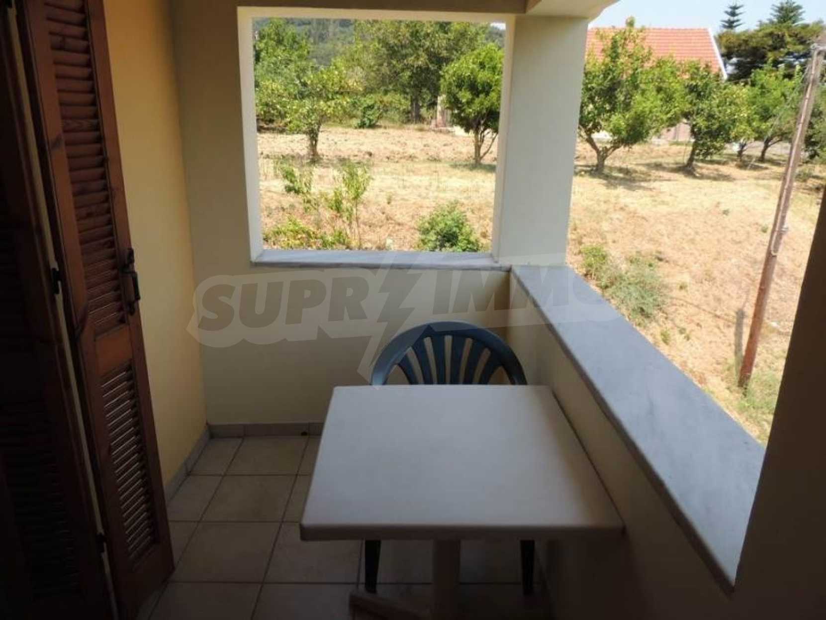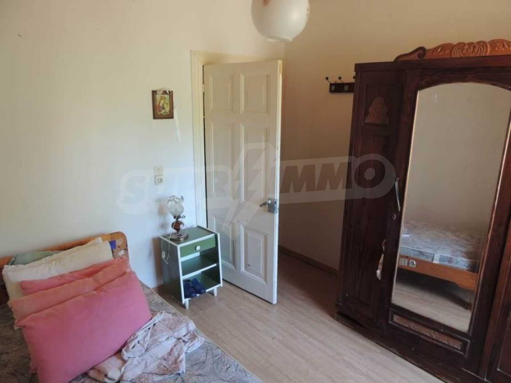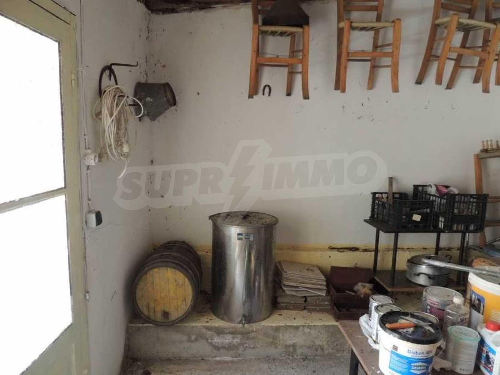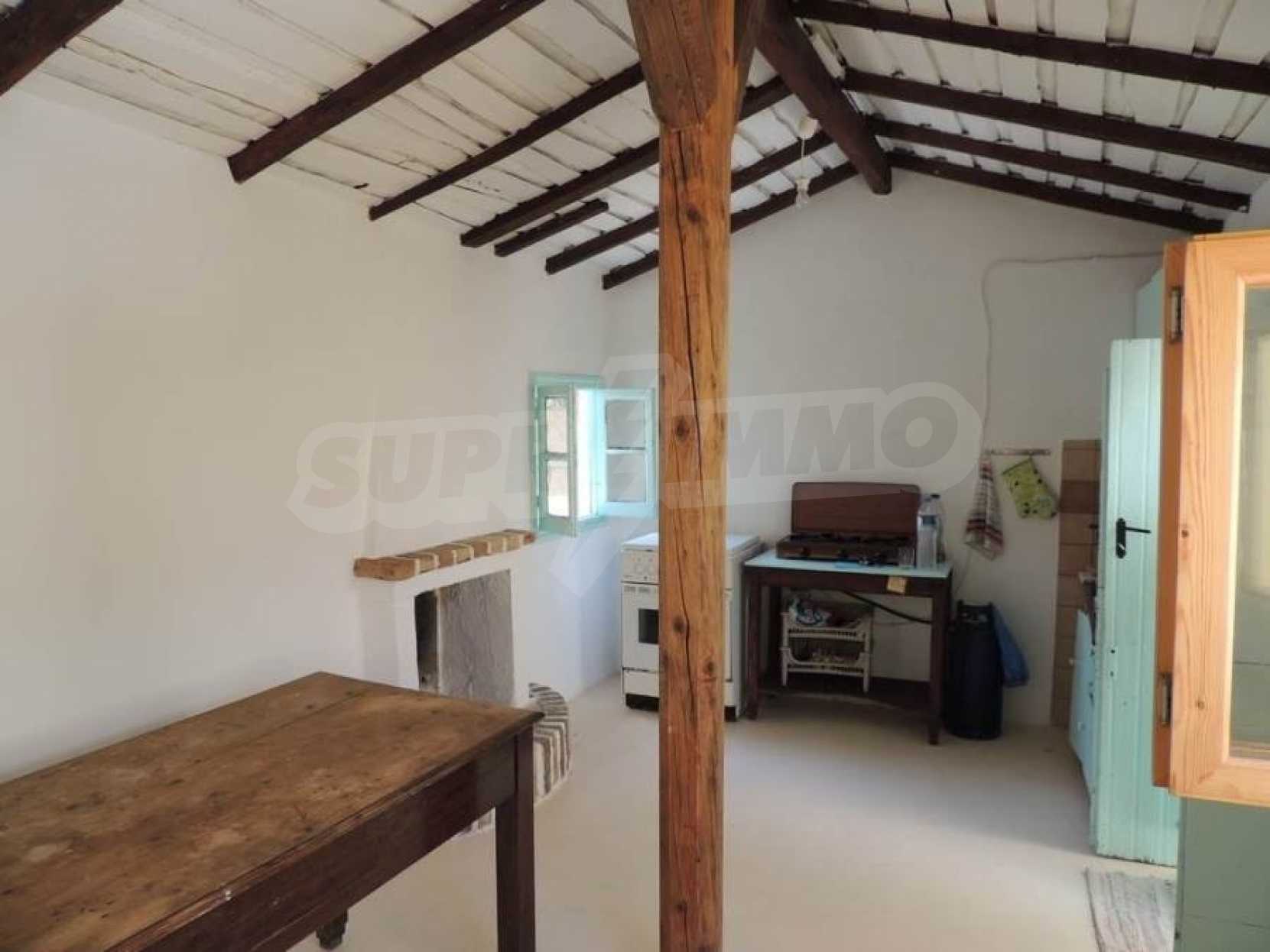 Дом двухэтажный, на первом этаже располагается просторный салон- кухня- гостиная,ванная комната.По внутренней лестнице мы поднимаемся на второй этаж,где есть 2 спальные комнаты с просторными балконами. С балконов открывается исключительный,панорамный вид на горы и оливковые рощи.На заднем дворе располагается кухня,общей площадью 20 квадратных метров,которая была недавно отремонтирована,снабжена всем необходимым.Кроме этого,есть складское помещение,общей площадью 20 квадратных метров.Склад и кухня могут быть объединены.