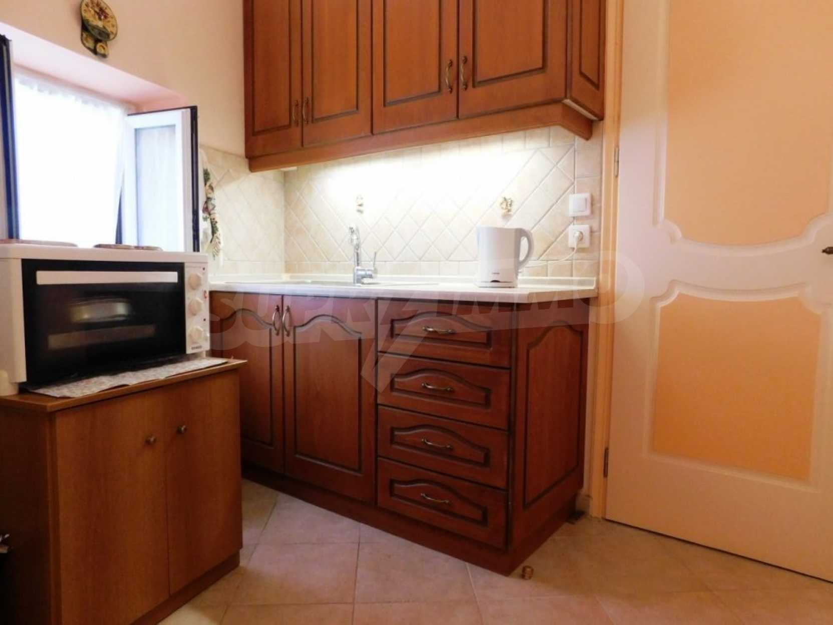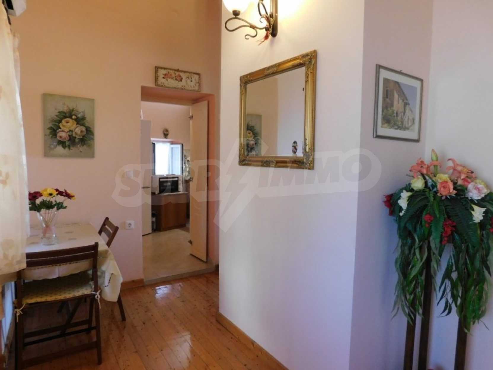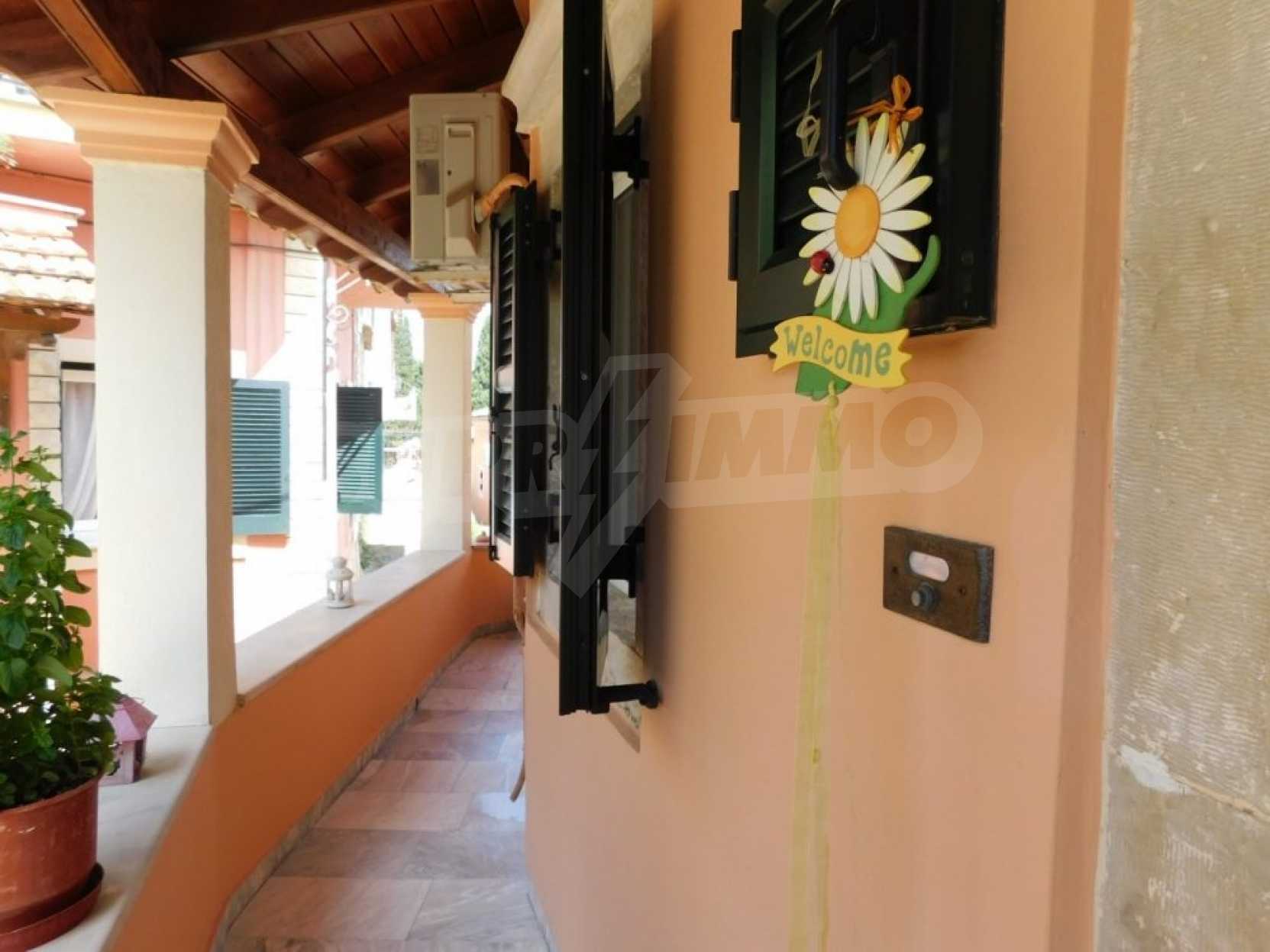 В доме есть квартира, полностью отремонтированная, с балконами со обоих сторон дома откуда открывается фантастический вид. Квартира состоит из кухни, столовой, двух спален и кладовой. В доме также есть цокольный этаж, он не отреставрирован и нуждается в капитальном ремонте. Можно соединить внутренней лестницей цокольный этаж и первый, тем самым сделать двухэтажную квартиру.