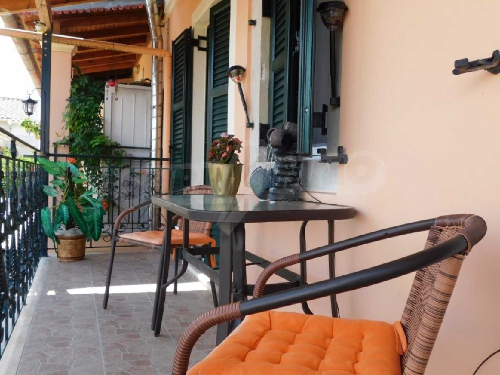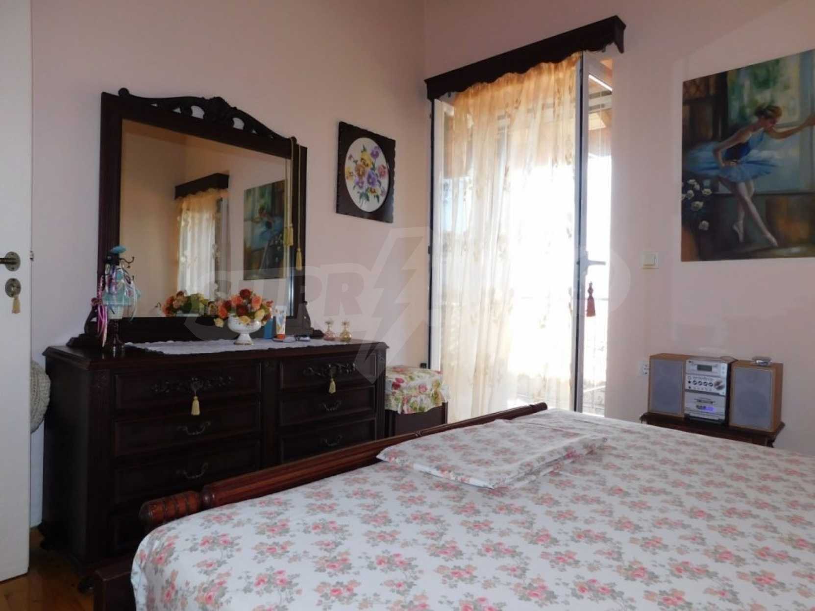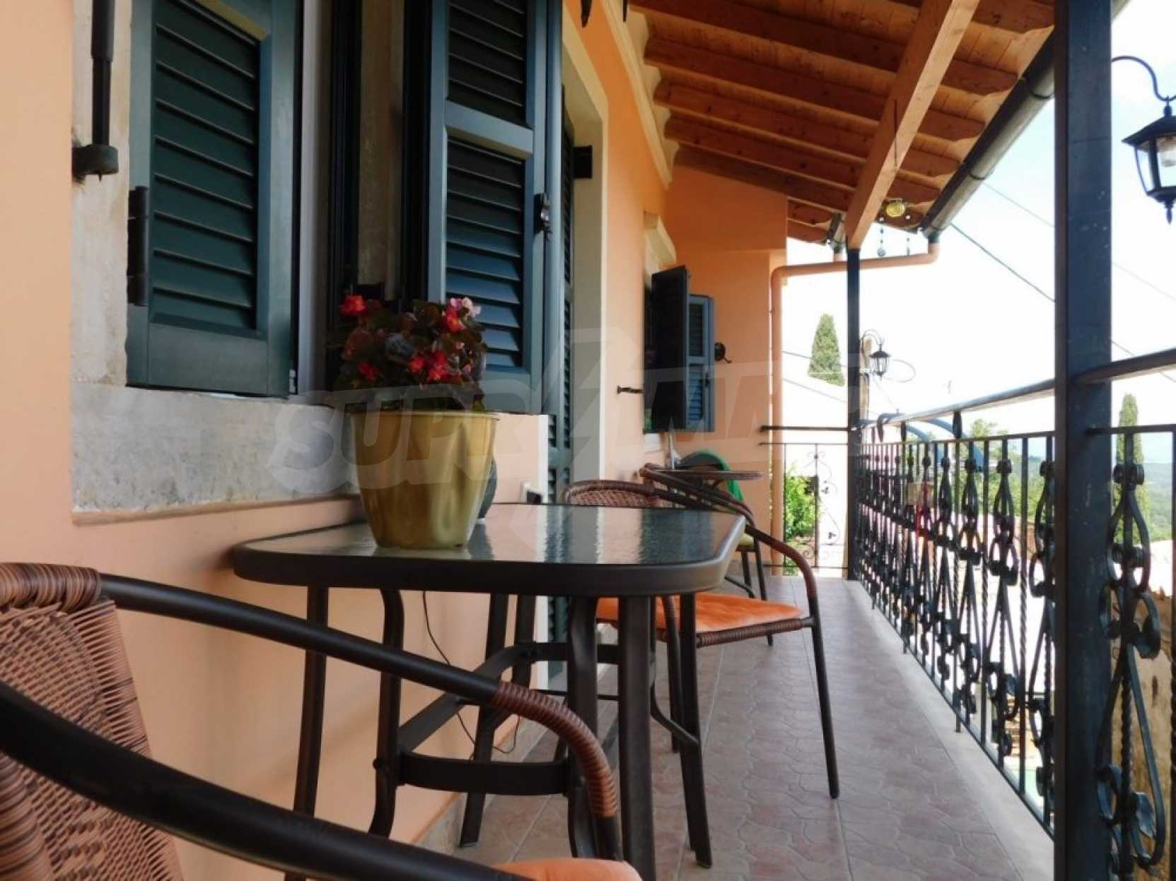 В доме есть квартира, полностью отремонтированная, с балконами со обоих сторон дома откуда открывается фантастический вид. Квартира состоит из кухни, столовой, двух спален и кладовой. В доме также есть цокольный этаж, он не отреставрирован и нуждается в капитальном ремонте. Можно соединить внутренней лестницей цокольный этаж и первый, тем самым сделать двухэтажную квартиру.