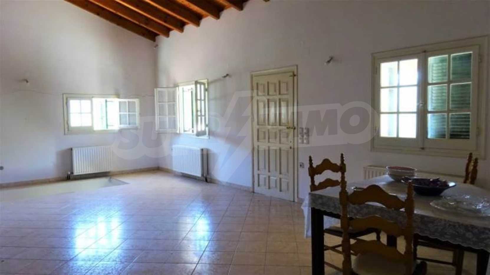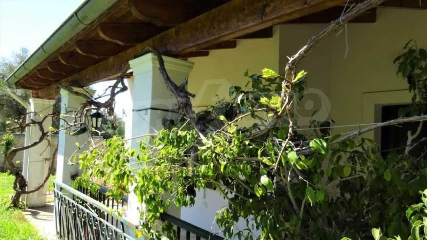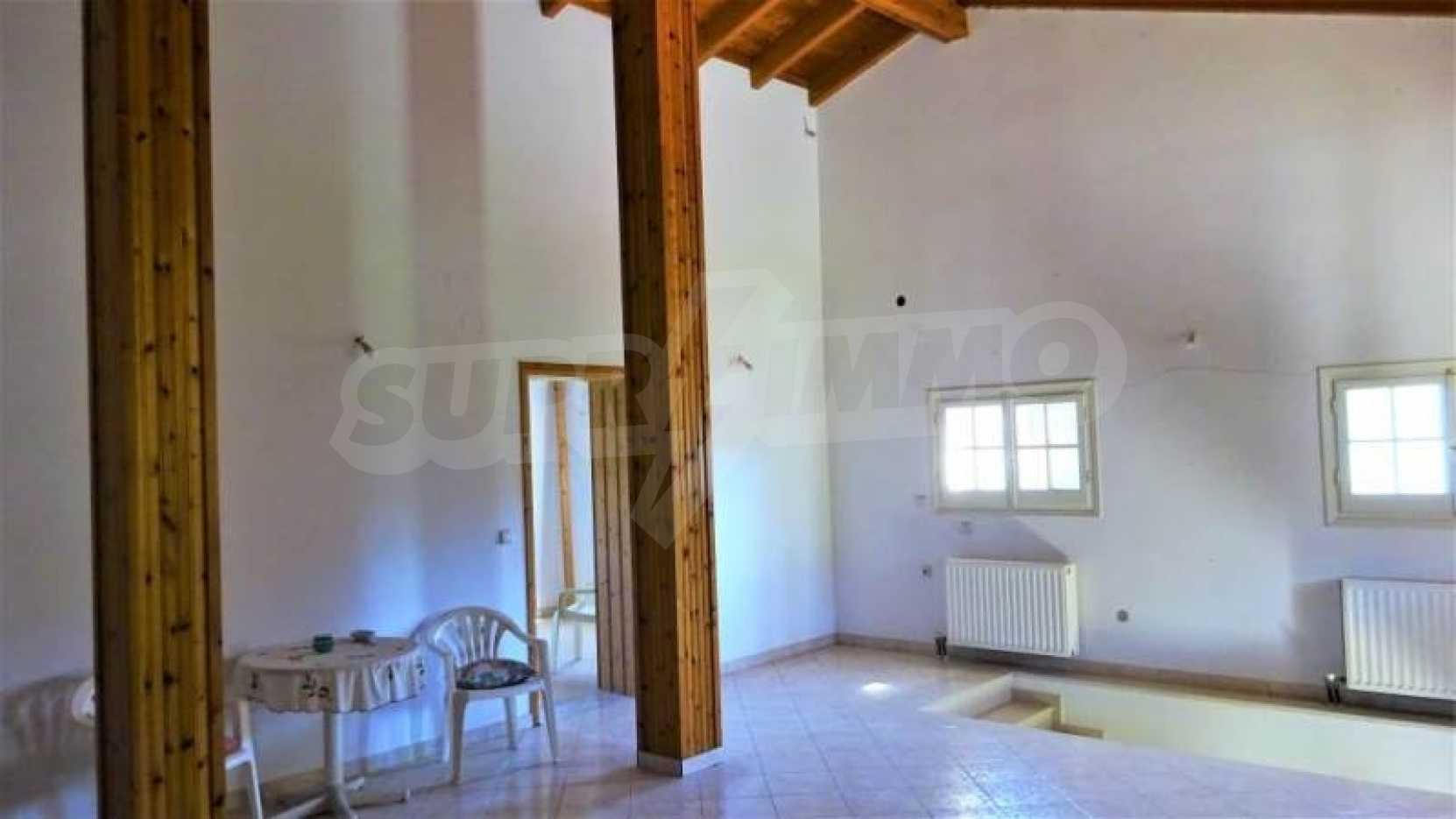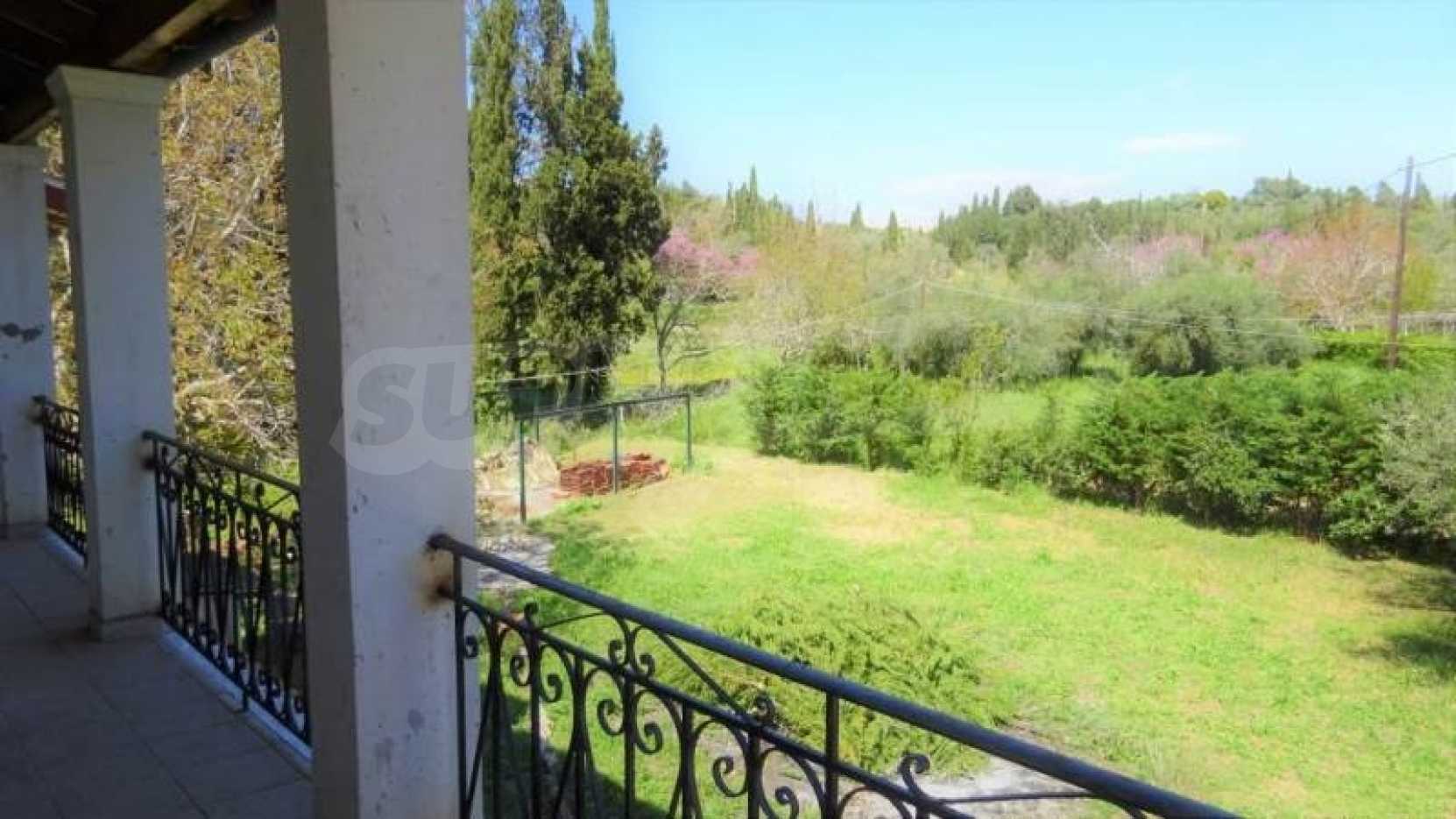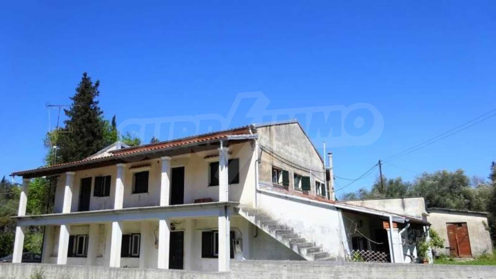 Двухэтажный недостроенный дом площадью 360 кв.м. Первый этаж составляет 143 кв. м., в настоящее время используется как небольшая фабрика. Он состоит из большого пространства площадью 56 кв. м., котельной и кладовой. Второй этаж площадью 143 кв.м. включает большую гостиную, 2 большие спальни, 1 большую ванную комнату и большую кухню. Дом построен на участке площадью 2,5 акра с оливами и фруктовыми деревьями. Существует разрешение на достройку существующих зданий дополнительными 220 кв. м. Он расположен в 2 км. от деревни Аграфос, в 4 км. от пляжа Агнос и в 31 км. от города Корфу.