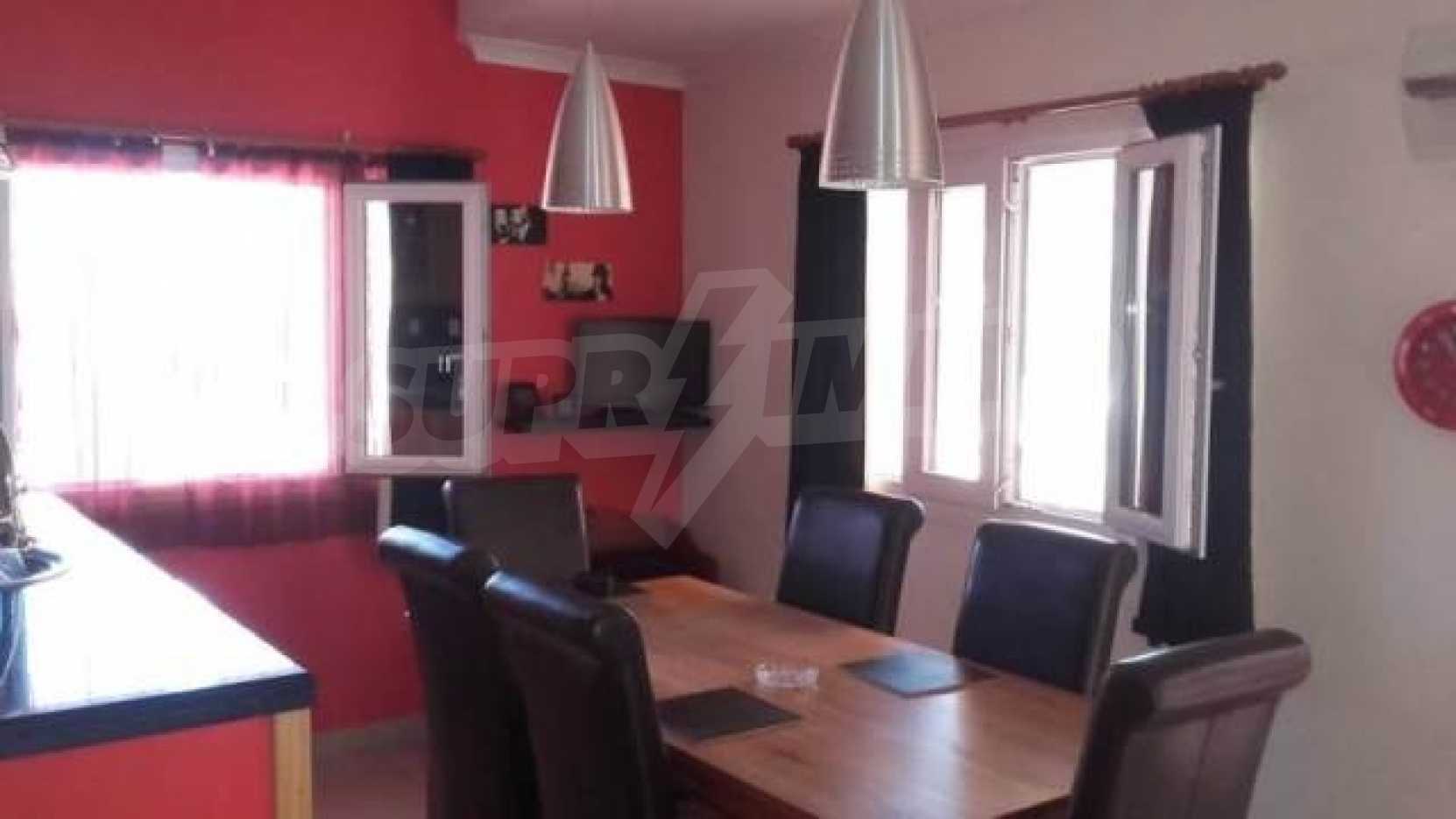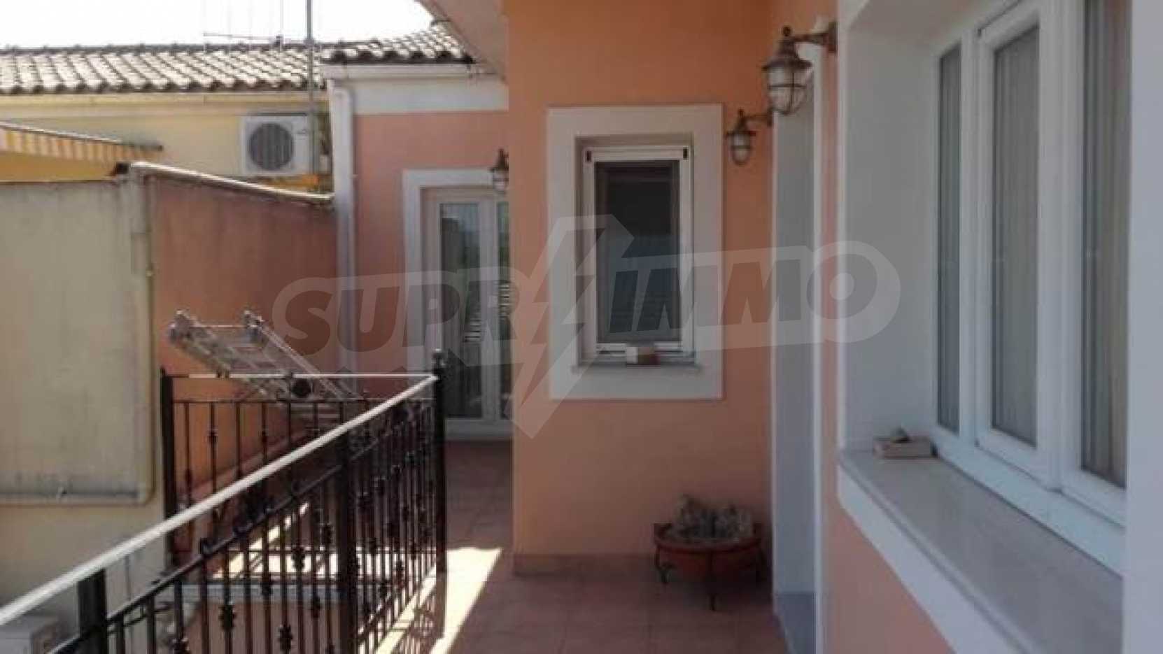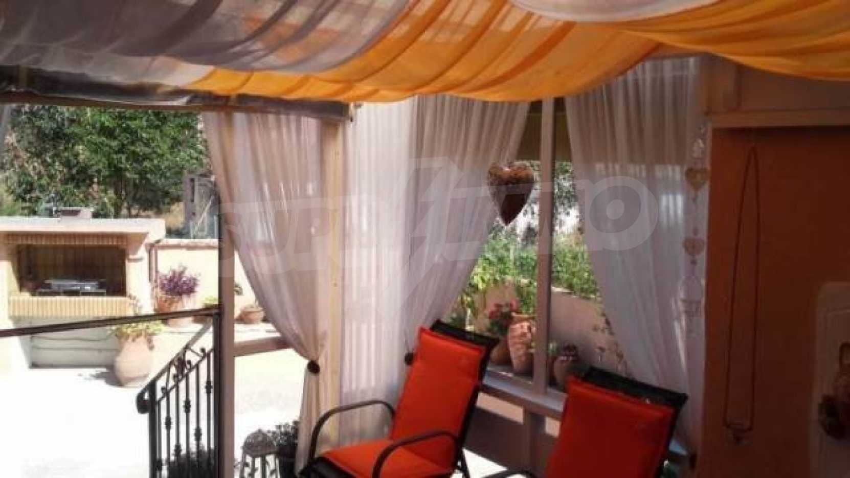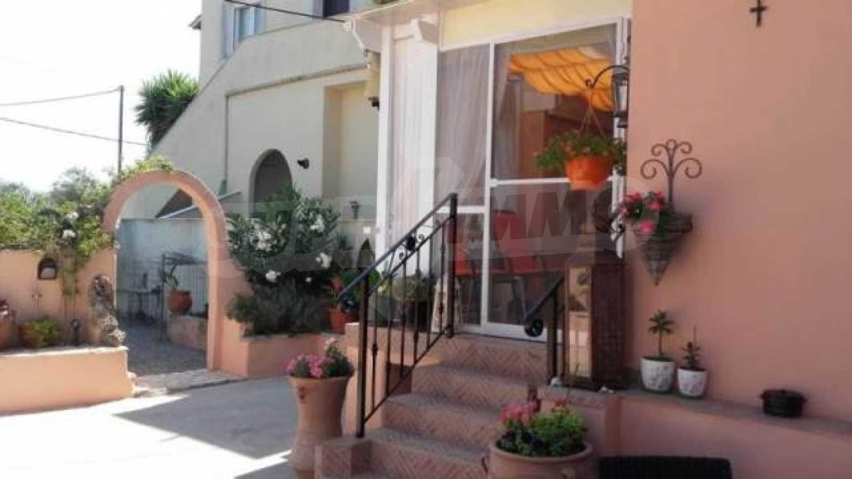 На втором этаже 2 спальные комнаты, салон,просторная ванная.Каждая комната имеет балкон,с которого открывается панорамный вид гор,зелёных холмов.Характерные особенности:прогреваемые полыкондиционерыдвойной стеклопакетсетки от комаровпарковкаБольшой двор,находящийся перед домом благоухает цветами и кустарниками,есть зона барбекю.