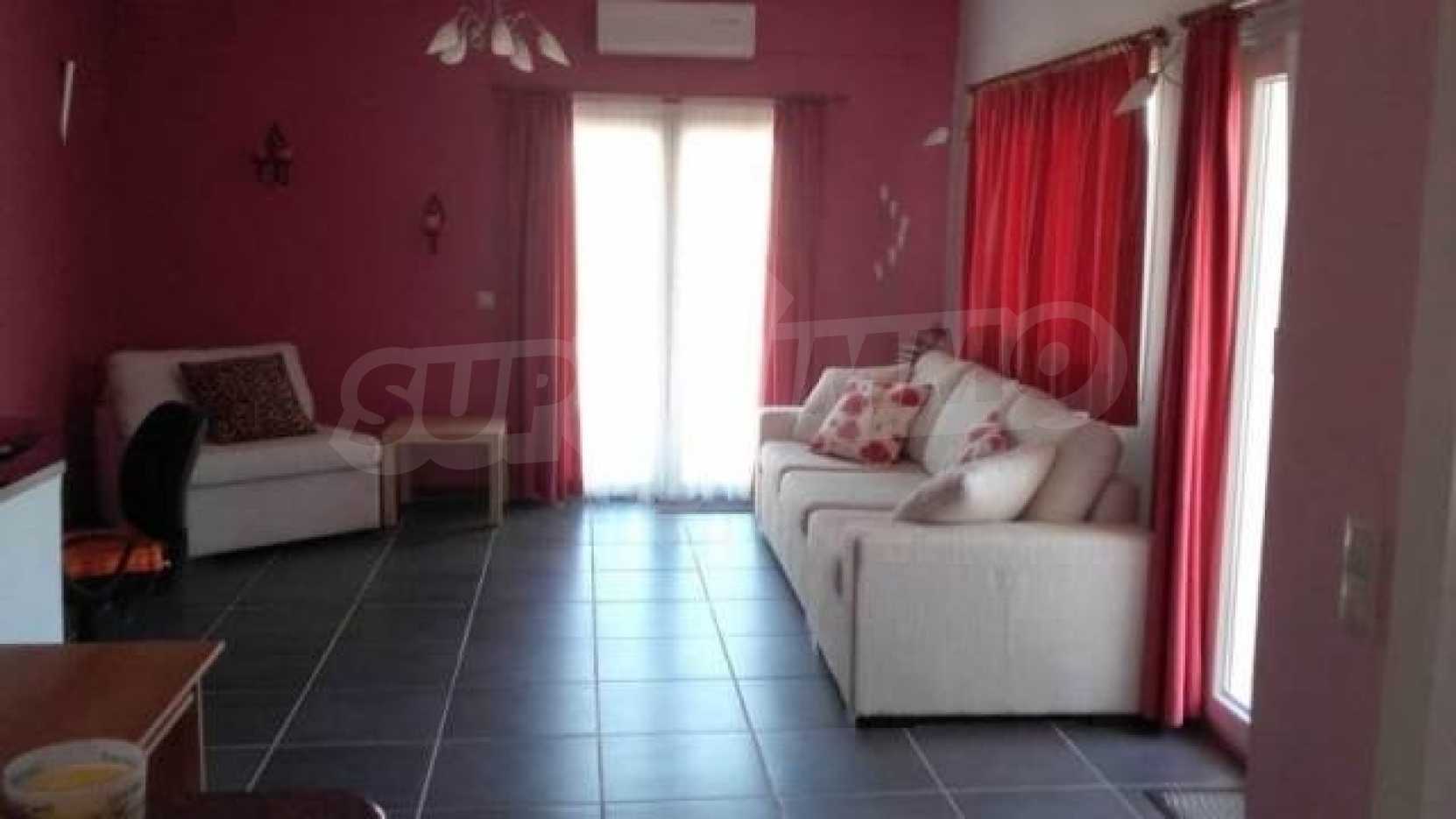 Дом находится в одном из прекрасных районов Святой Яннис,очень близко от знаменитого водного парка Акваланд,рядом минимаркеты,кафетерии,рестораны,школа и детская площадка.Дом двухэтажный. На первом этаже кухня-столовая,салон,2 спальные комнаты,ванная.