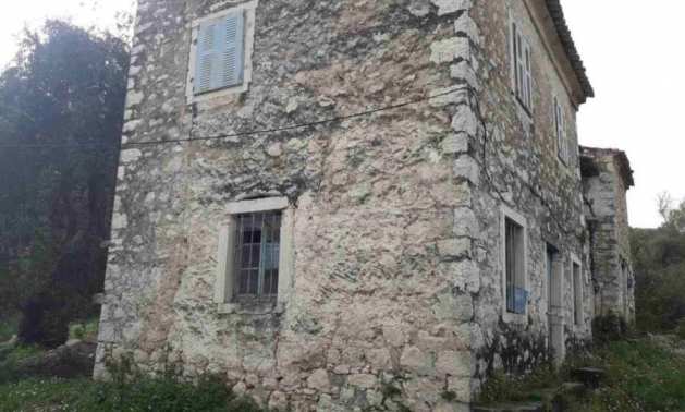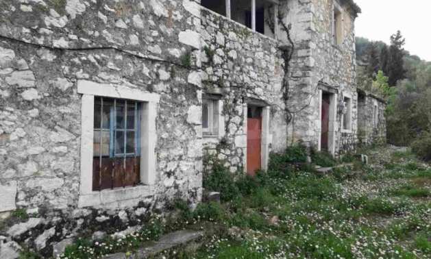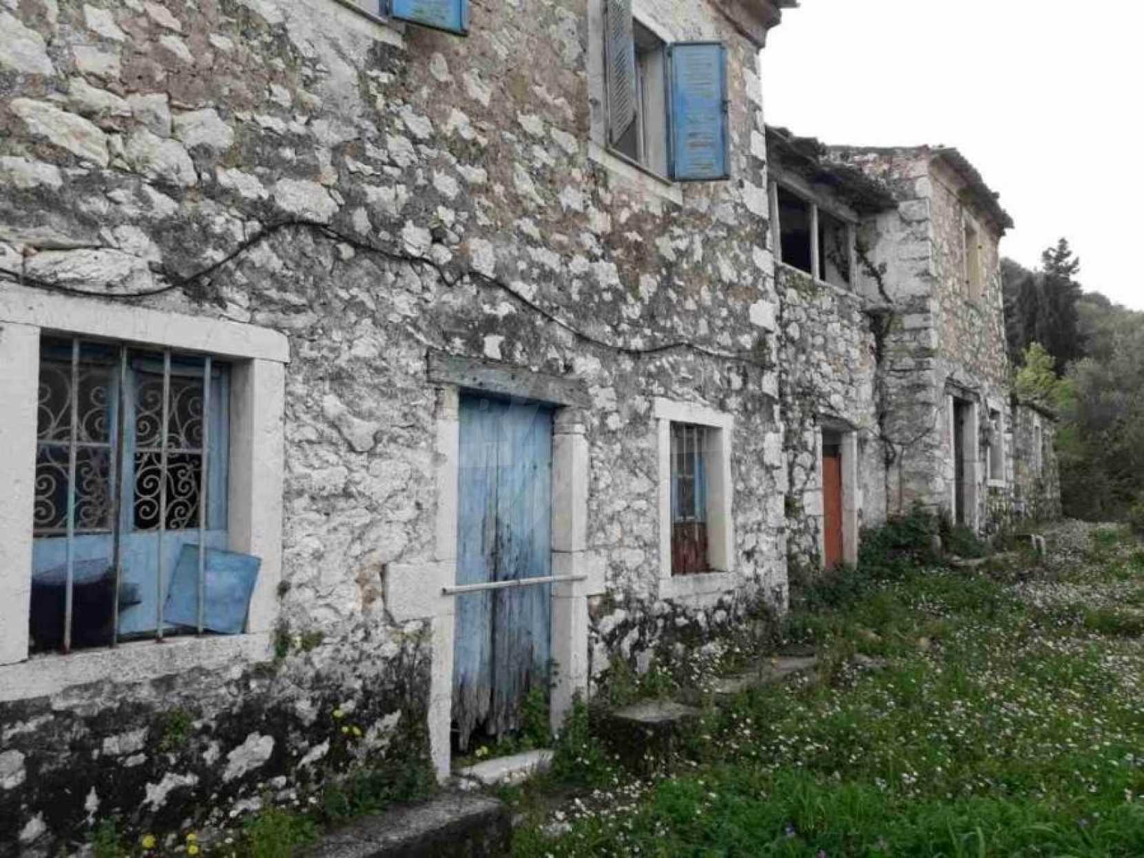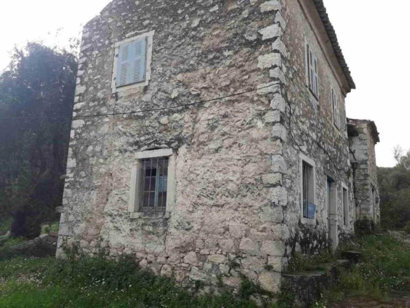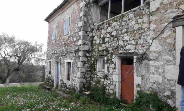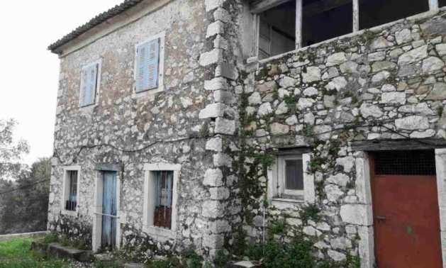 Продается традиционный двухэтажный каменный дом площадью около 400 кв.м на участке площадью около 1035 кв.м в поселке Айос Пантелеймонас в районе Ахарави, в северной части Корфу.