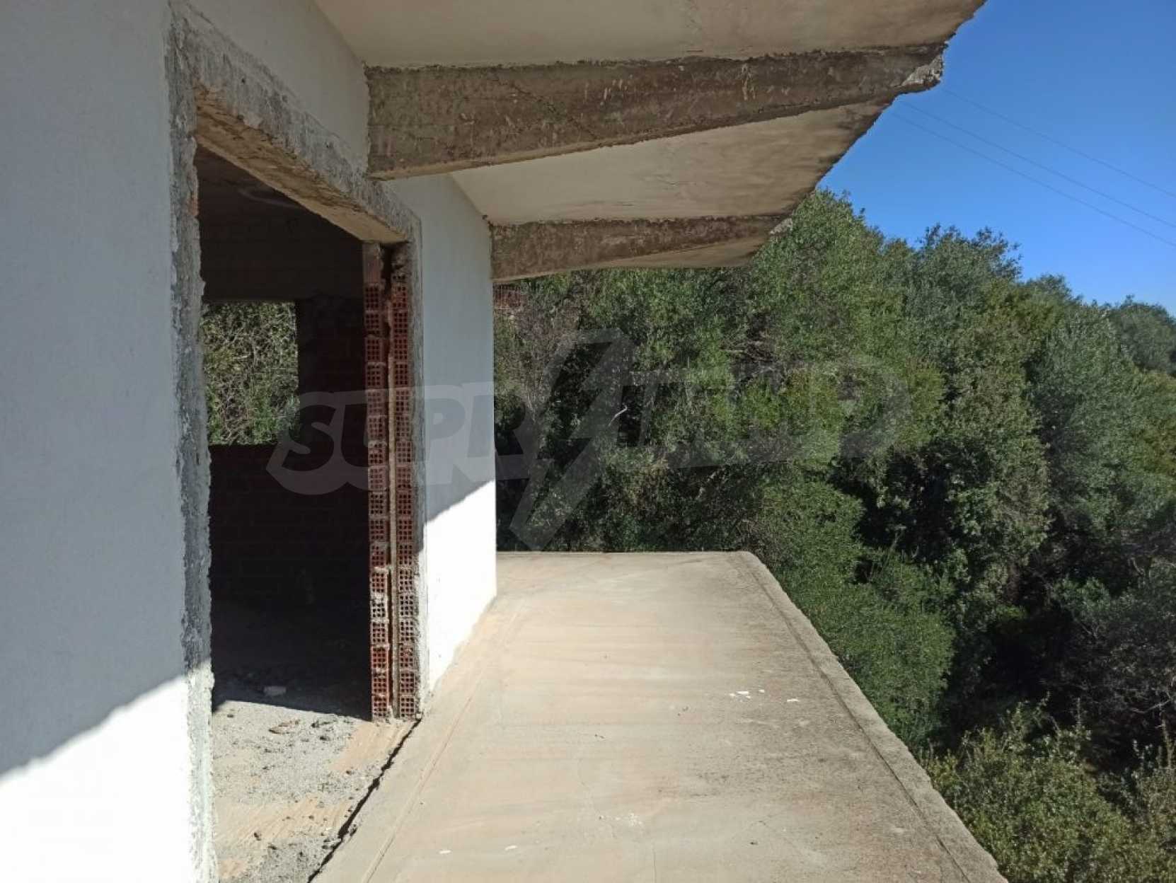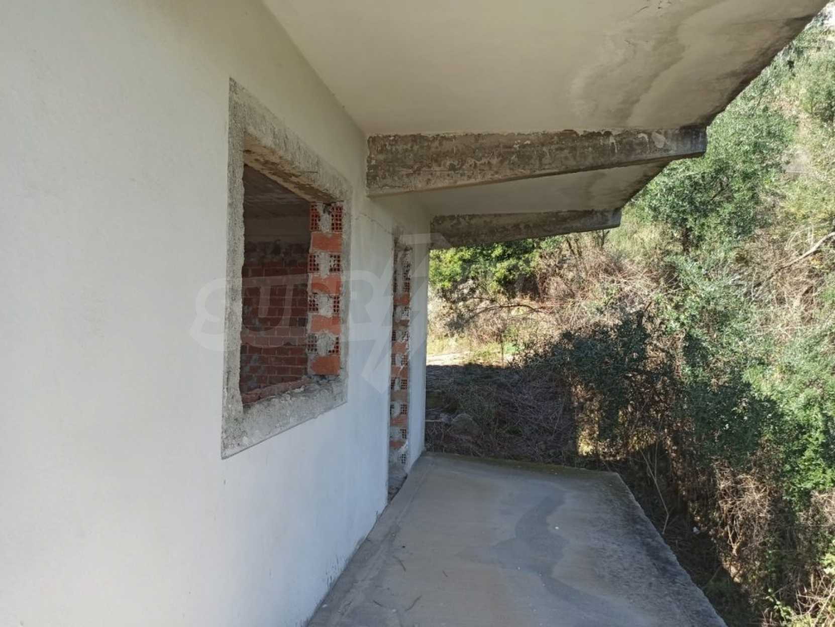 Среди пышной зелени с панорамным видом на море находится незаконченное здание площадью 534 кв. м., построенное на четырех уровнях. Дом большой и может быть преобразован в очень красивую виллу или комплекс апартаментов.Участок, площадью 4,825 кв. м. с легким доступом с дороги засажен оливами. Электричество и вода поблизости, а ближайшие пляжи Барбати и Ипсос находятся примерно в 3,5 км.Спартилас - традиционная и организованная деревня с гостеприимными жителями. Посёлок работает круглый год и построен на восточном побережье острова. В селе есть школа, мини-маркет, пекарня и традиционные кафе.