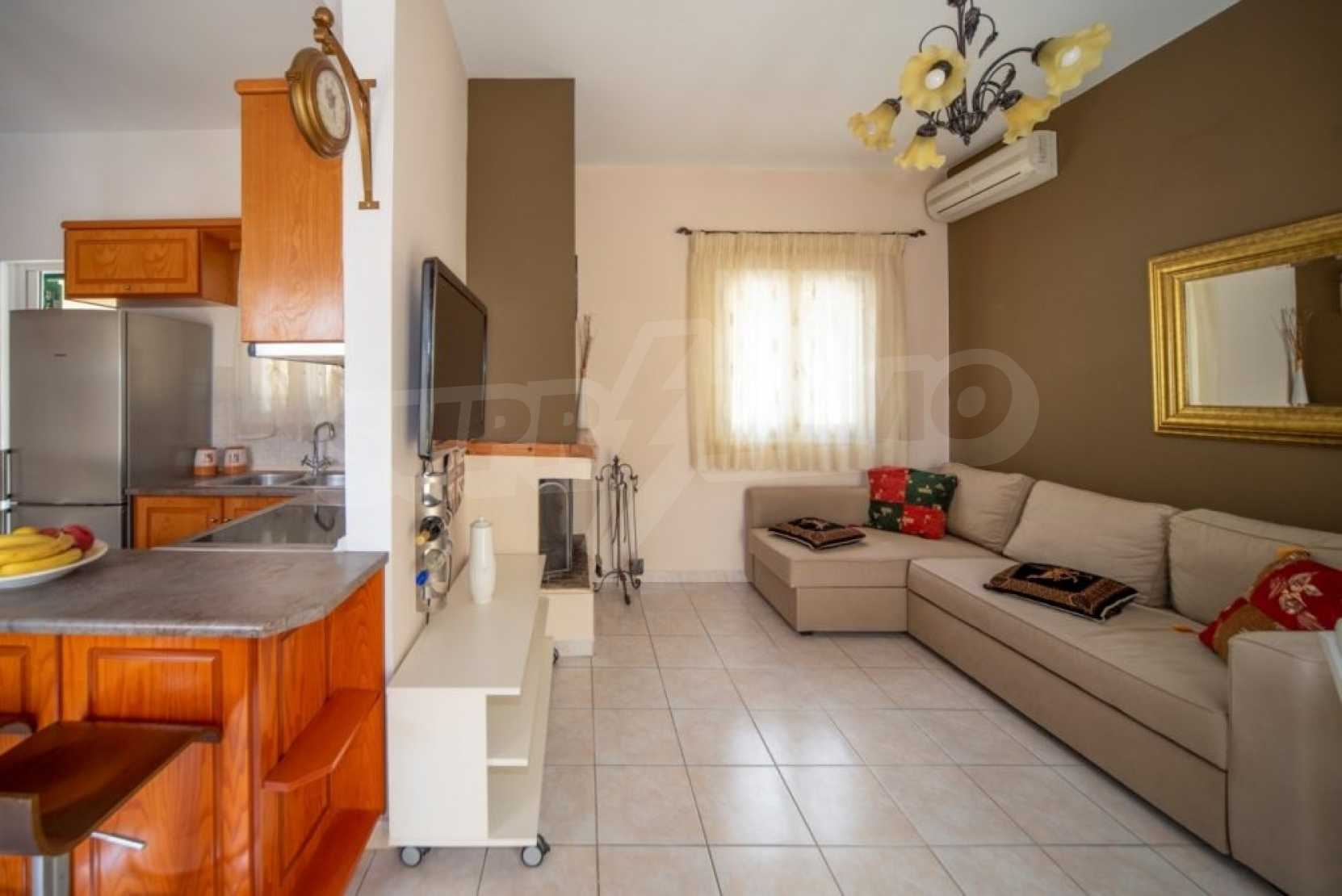 Расстояние до города и аэродрома 10 км, расстояние до моря 5 км,совсем недалеко расположен крупный супермарке,таверны, рестораны и кафетерии.
