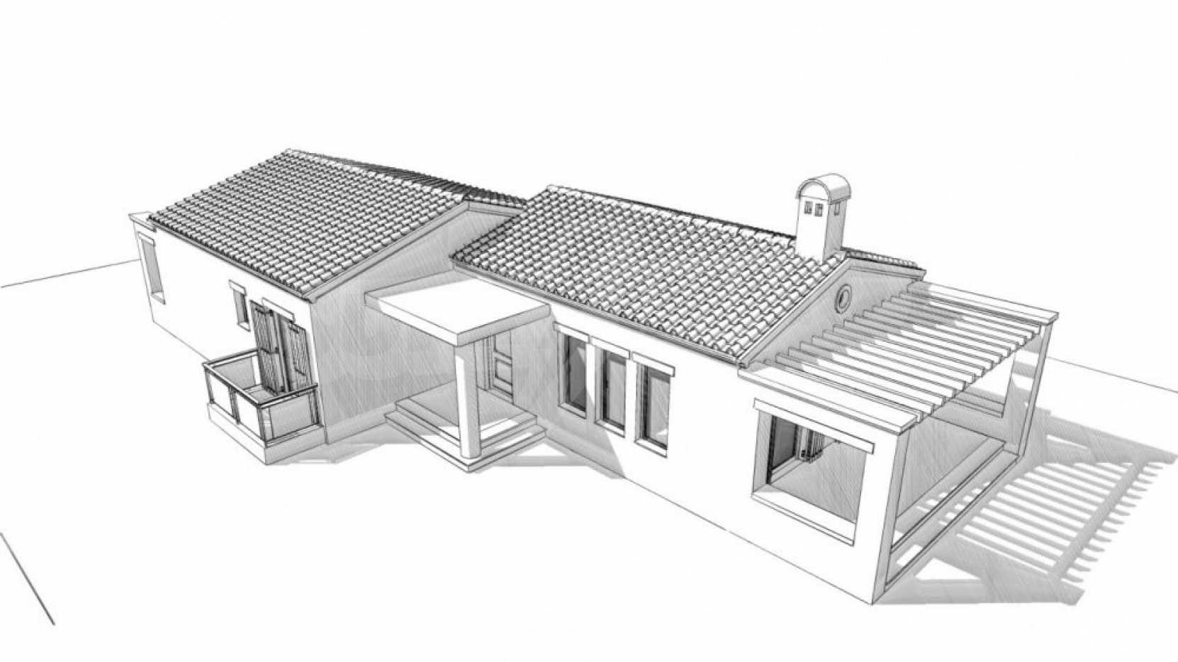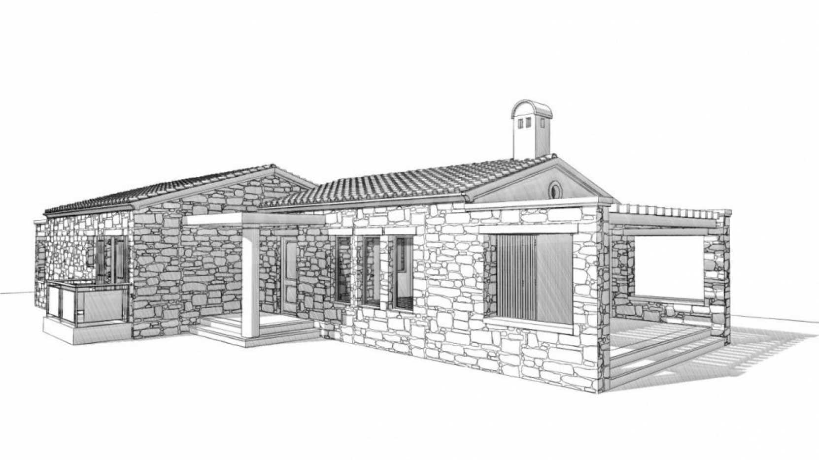 На земельном участке площадью 1099 кв. м на вершине холма в Агия Параскеви, Карусадес, будет построен каменный дом площадью 119,79 кв.