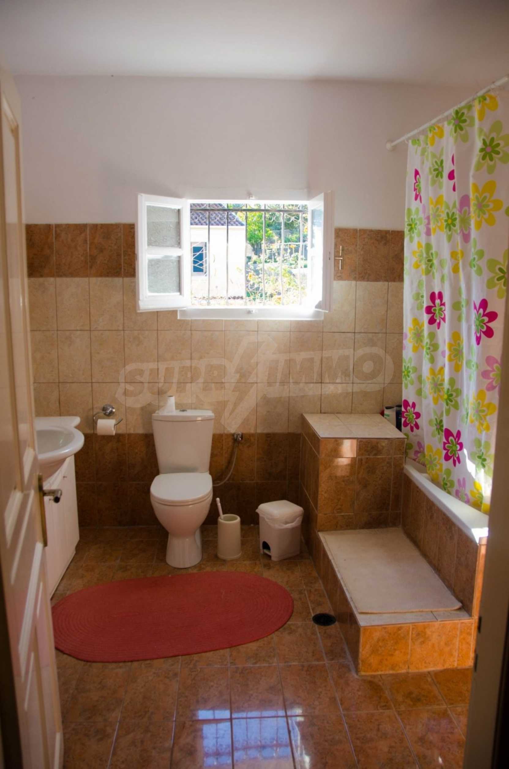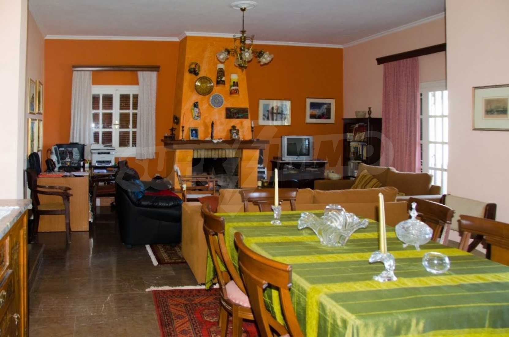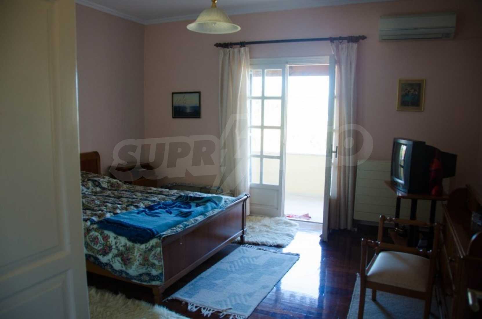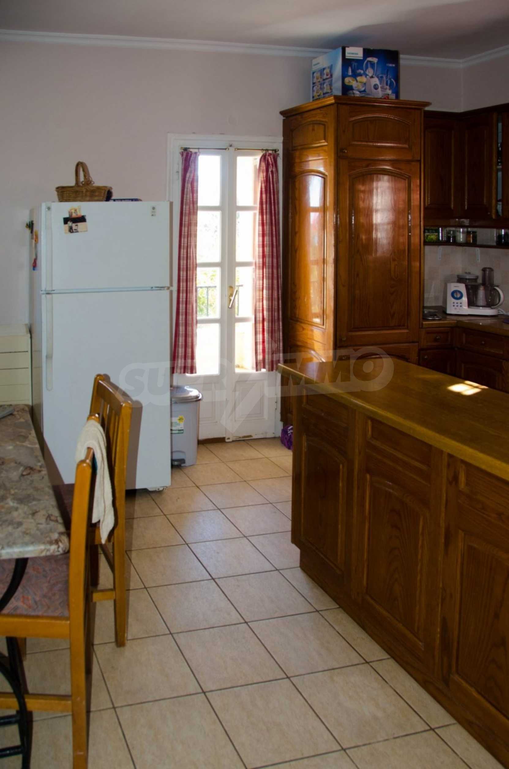 На вилле три этажа: На первом этаже находится отдельная квартира с выходом в сад, в ней 2 спальни, гостиная с камином, кухня и ванная комната .Эту квартиру можно использовать в качестве гостевого домика или даже ,возможно, сдавать в аренду.