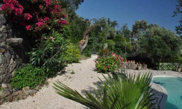 Вилла в спокойном месте, на огороженном участке, полном деревьев и цветов.