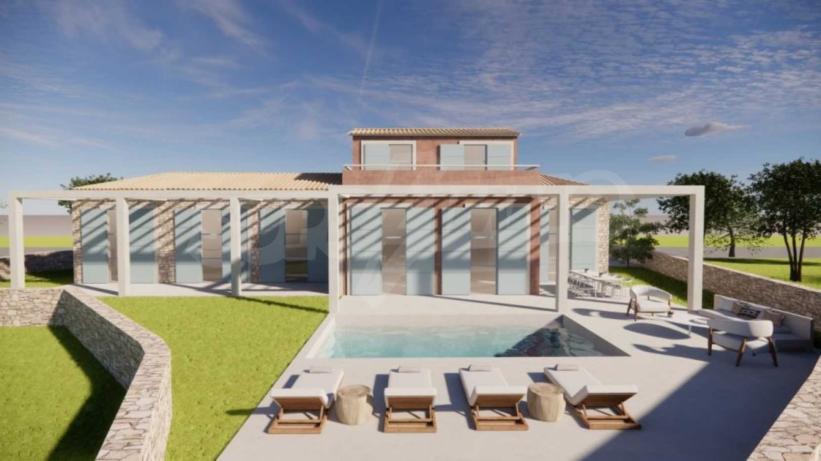 Архитектура этого проекта сочетает в себе все элементы греческой красоты. Сочетания камня и дерева, вид на море сделают эту виллу раем на земле. Она будет состоять из 3 спален, 4 ванных комнат, 1 туалета, гостиной, современной полностью оборудованной кухни / столовой на первом этаже и одной спальни с ванной комнатой на втором этаже.