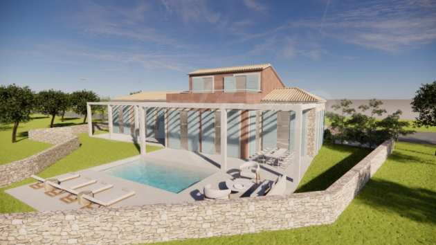 Продается вилла (в проекте) виллы площадью 240 кв.м, которая будет расположена над Логгосом, на острове Паксос.