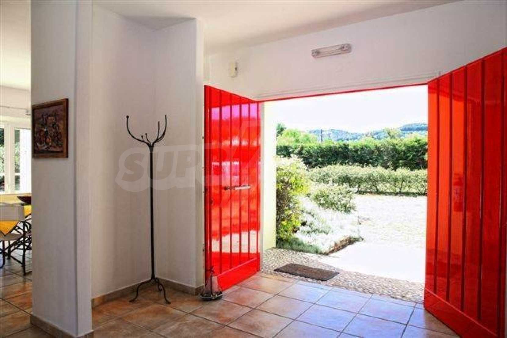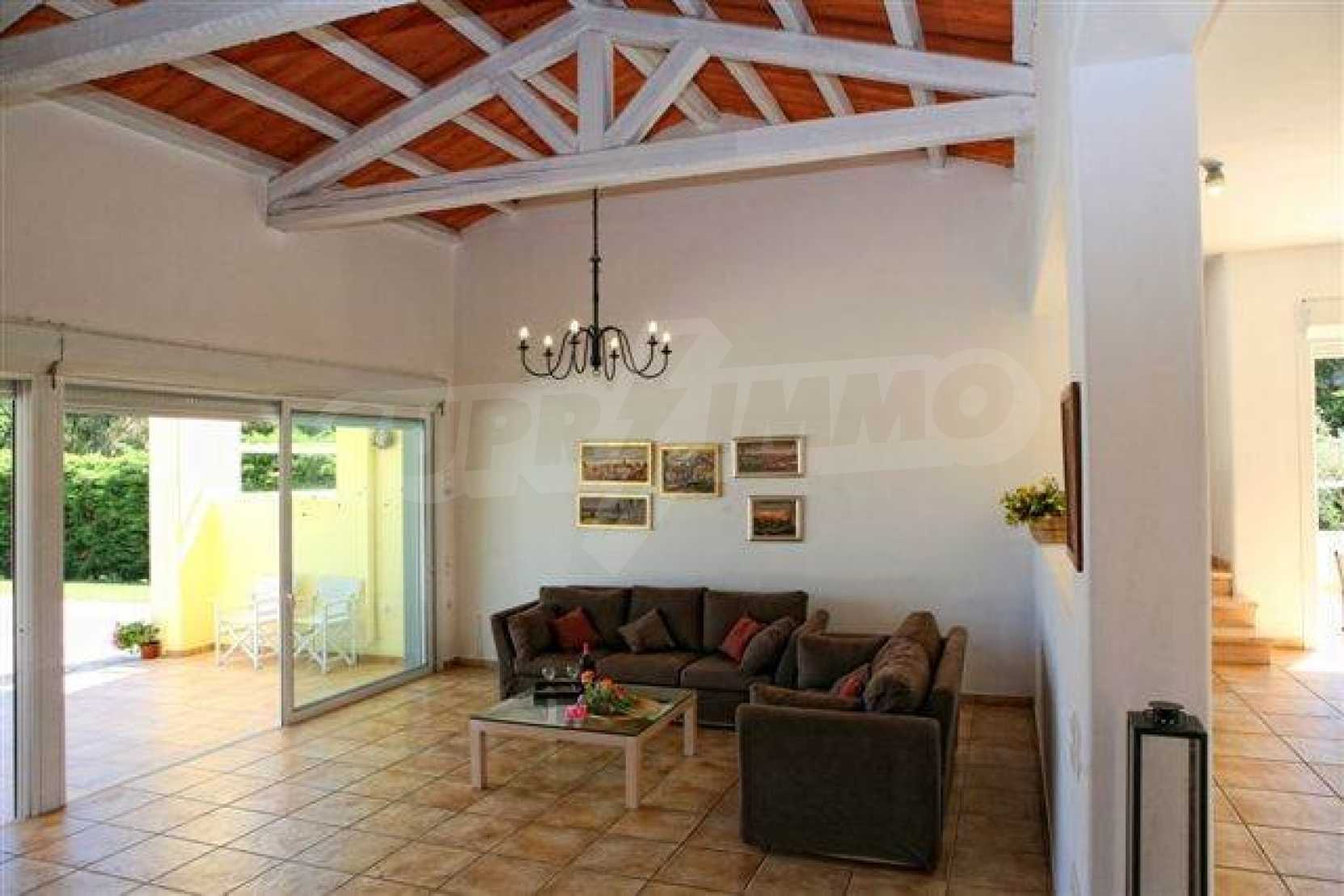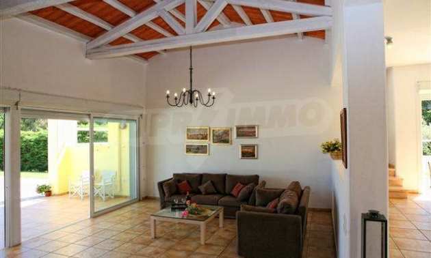 Вилла дает ощущение, что интерьер простирается на открытом воздухе, так как имеет большие раздвижные двери, ведущие к крытой столовой с видом на бассейн. В доме есть частный сад и двор с бассейном с подогревом и встроенными барбекю. Вилла окружена газоном площадью 2.200 кв.м. и деревьями из Кипра, апельсиновые, лимонные деревья, оливы и другие растения средиземноморья.