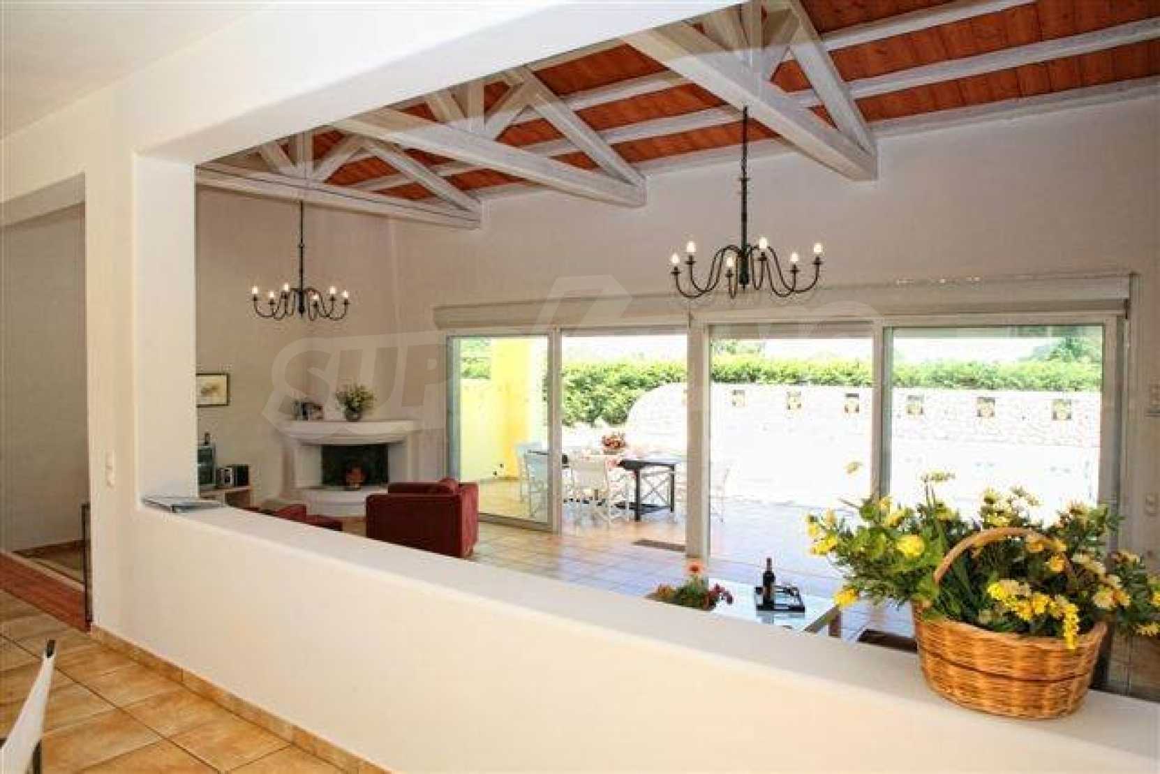 Дом продается полностью оборудованным и меблированным: плита на кухне, духовка, холодильник, микроволновая печь, посудомоечная машина, стиральная машина, утюг, гладильная доска, спутниковая антенна, спутниковое телевидение, телевизор, DVD-плеер, музыкальный центр. Дополнительные удобства: кондиционеры в каждой спальне, автоматизированная система отопления и бассейн с самообогревом. Вилла идеально подходит для семей, так как расположена в равнинной местности и имеет обширное пространство вокруг сада.