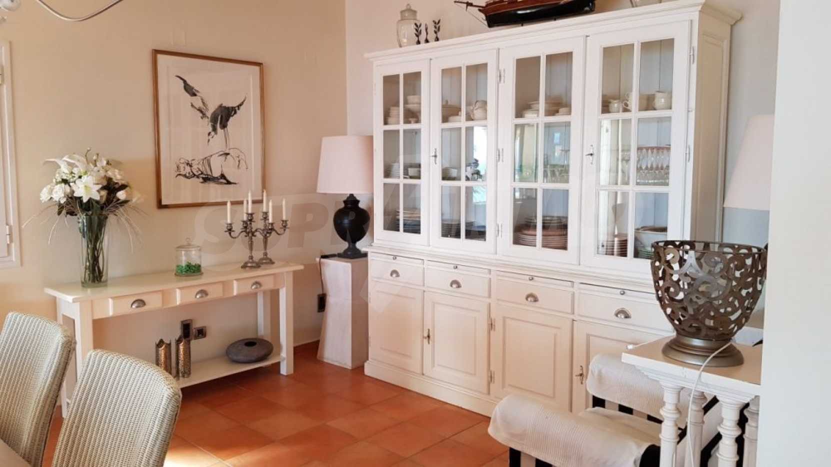 Доступ на второй этаж осуществляется через дверь, разделяющую два этажа. Это дает нам возможность объединить два этажа в одну виллу или две отдельные квартиры. По всей вилле есть много комнат, кторые можно использовать как хоз помещения или кабинет, а также крытый гараж, подсобное помещение и мастерская.