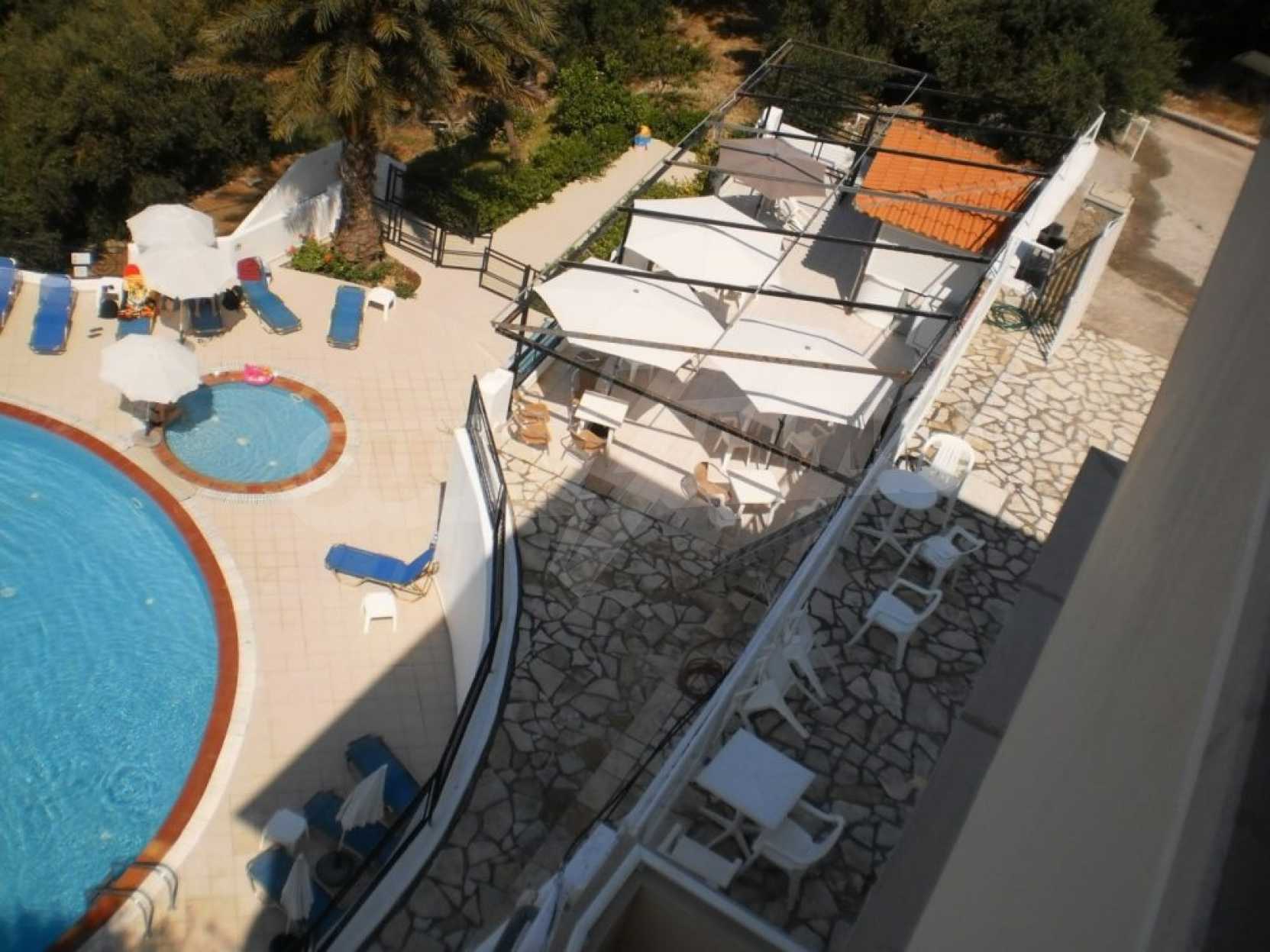 Территория около виллы ухожена, засажена фруктовыми деревьями, великолепными цветущими кустарниками, розами и оливками. Бассейн дает нам возможность расслабиться и отдохнуть после жаркого дня.