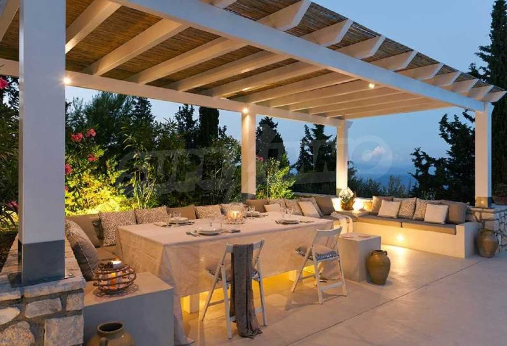 На славу подрудились стилисты и ландшафтные дизайнеры ,чтобы сделать эту виллу единственной и неповторимой . На стиль всей виллы сильно повлияла архитектурная мода из Италии. При строительстве домов на острове Паксос, используется местный камень и натуральное дерево. Это создаёт великолепное сочетание вида и качества этой виллы.