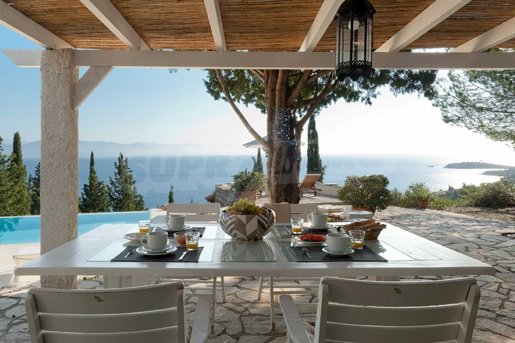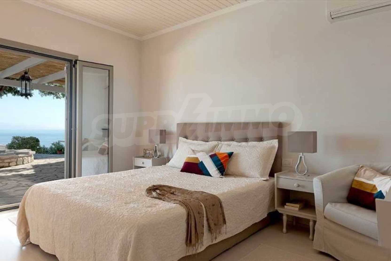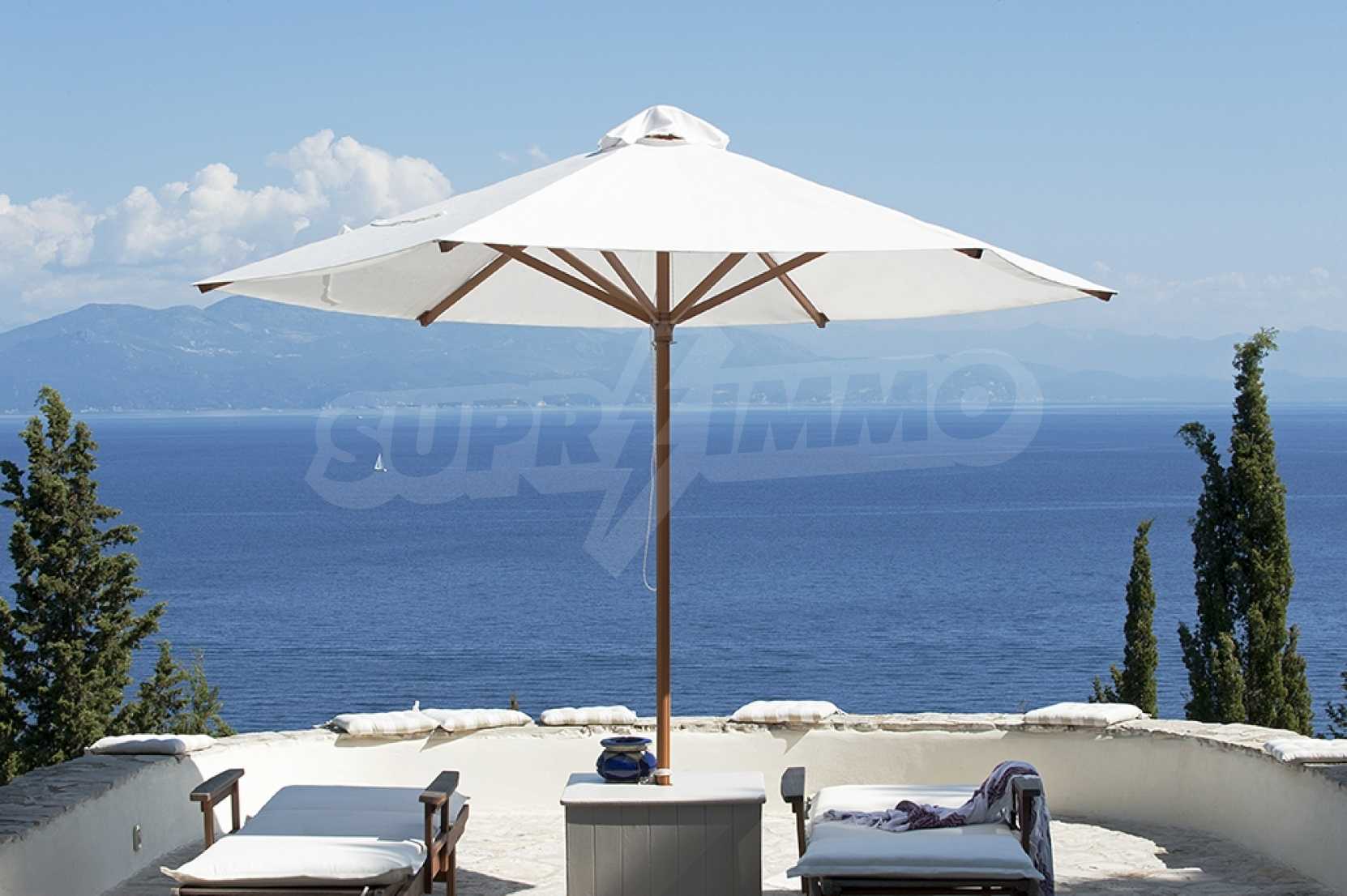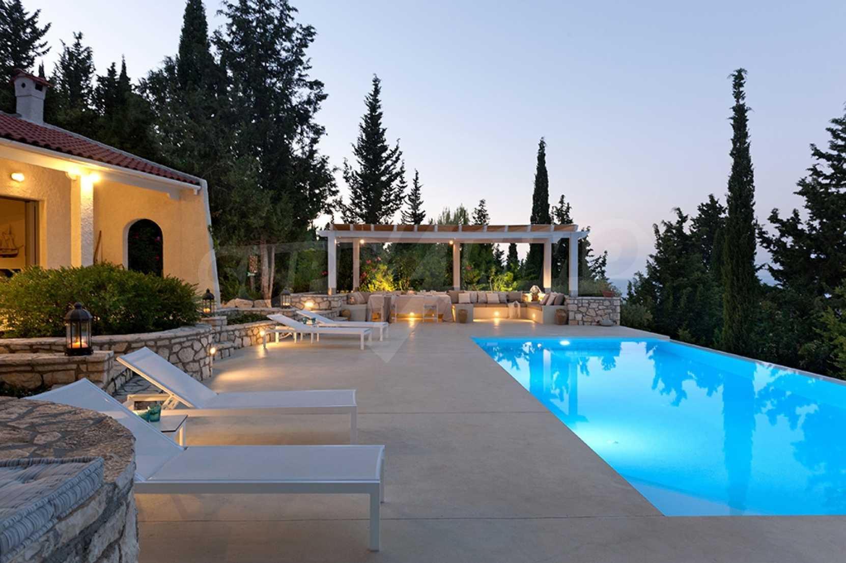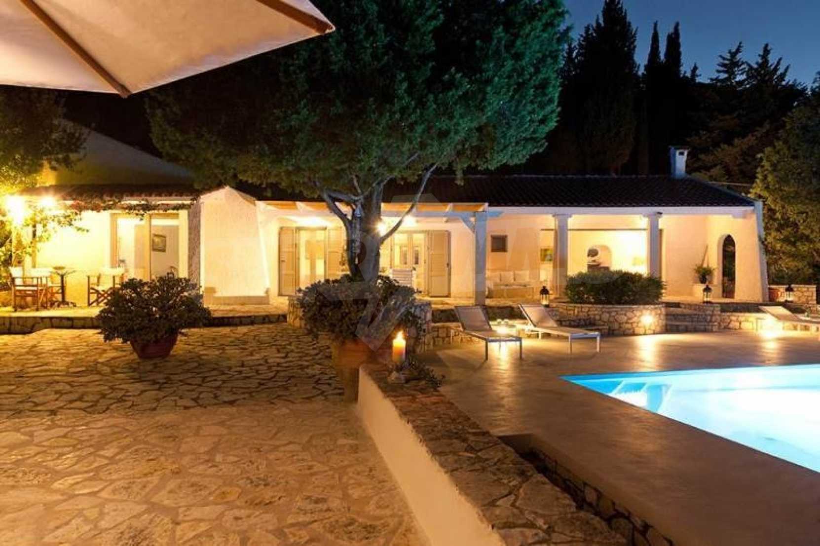 Комфорт, простота и фешенебельность-эти слова характеризуют виллу, которая продается на острове Паксос. Великолепное месторасположение, панорамные виды безбрежного голубого моря делают эту виллу необыкновенной. Бассейн и сад позволяют расслабиться и отдохнуть, набраться сил. Великолепная гостиная, которая позволяет нам наслаждаться морским видом и зеленью кипарисов, камин в гостиной облицован мрамором. Просторная и комфортная, удобная кухня снабжена самыми необходимыми бытовыми кухонными приборами. Всё окружающее пространство наполнено запахами цветов, кустарников и моря. Хочеться взять акварель и запечатлеть эти мгновения и палитру красок, корорую нам дарит каждый день пребывания на этом удивительном острове. Основные 3 спальни с ванными комнатами и балконами,которые открывают нам захватывающий панорамный вид. Спальня для гостей имеет встроенную кровать,стилизованную под 80-е года и ванную.