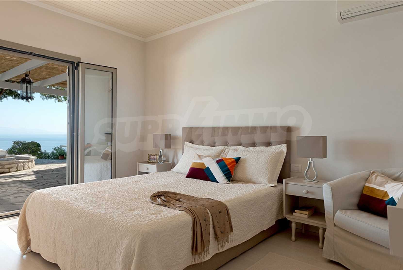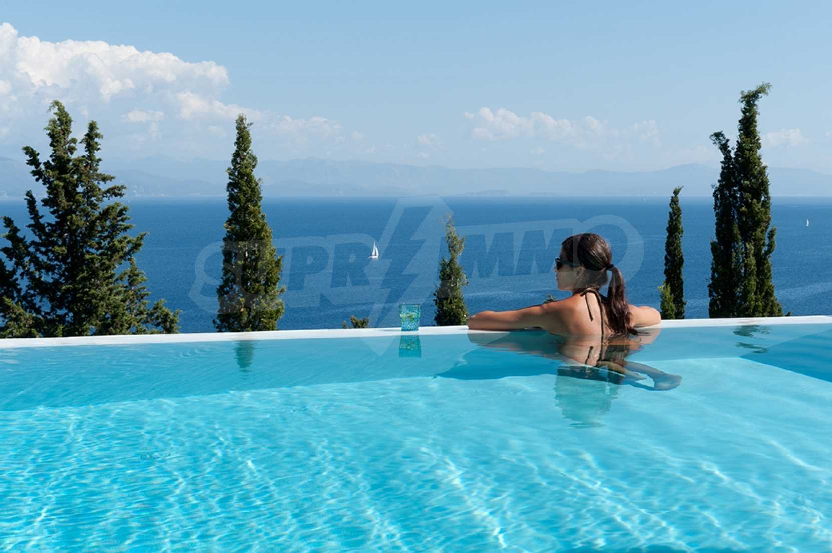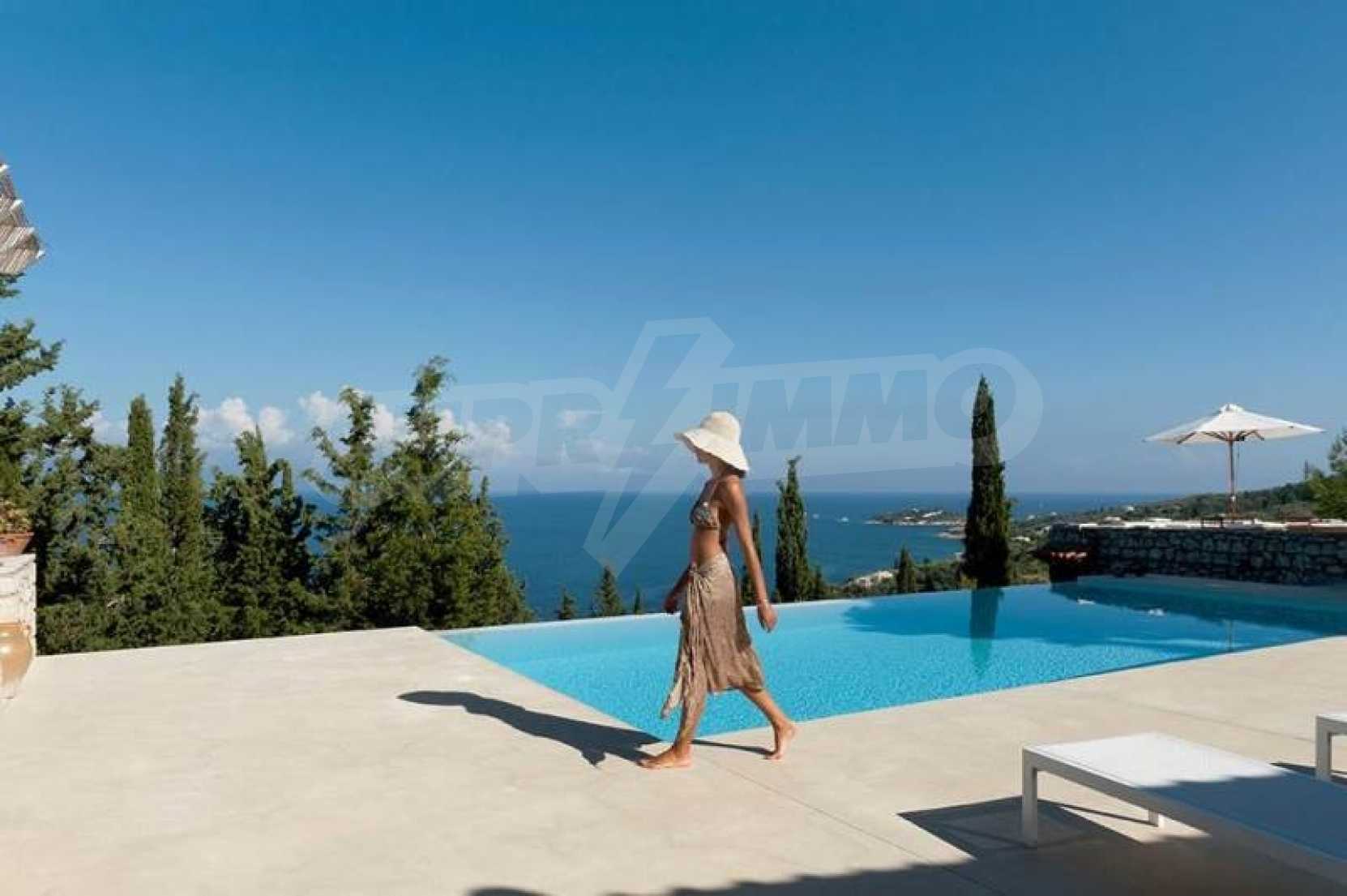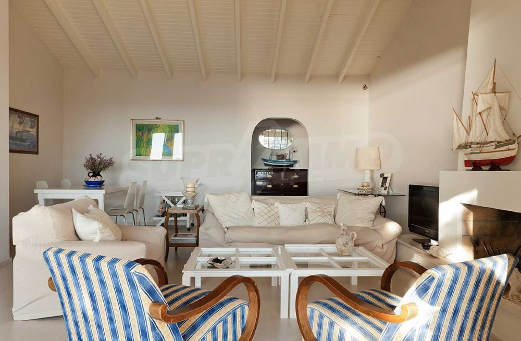 Комфорт, простота и фешенебельность-эти слова характеризуют виллу, которая продается на острове Паксос. Великолепное месторасположение, панорамные виды безбрежного голубого моря делают эту виллу необыкновенной. Бассейн и сад позволяют расслабиться и отдохнуть, набраться сил. Великолепная гостиная, которая позволяет нам наслаждаться морским видом и зеленью кипарисов, камин в гостиной облицован мрамором. Просторная и комфортная, удобная кухня снабжена самыми необходимыми бытовыми кухонными приборами. Всё окружающее пространство наполнено запахами цветов, кустарников и моря. Хочеться взять акварель и запечатлеть эти мгновения и палитру красок, корорую нам дарит каждый день пребывания на этом удивительном острове. Основные 3 спальни с ванными комнатами и балконами,которые открывают нам захватывающий панорамный вид. Спальня для гостей имеет встроенную кровать,стилизованную под 80-е года и ванную.