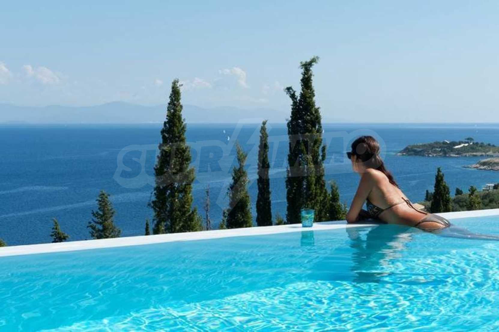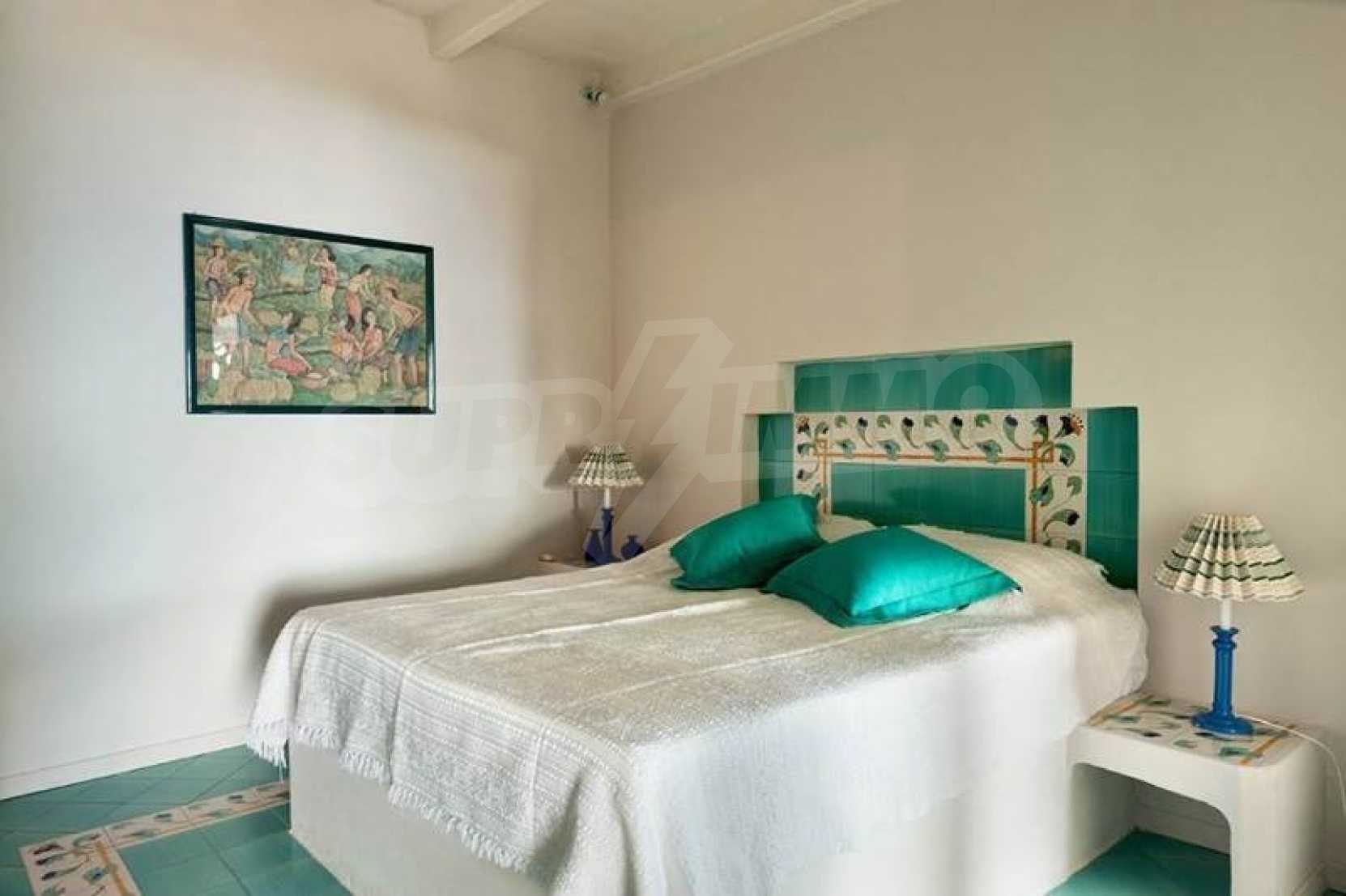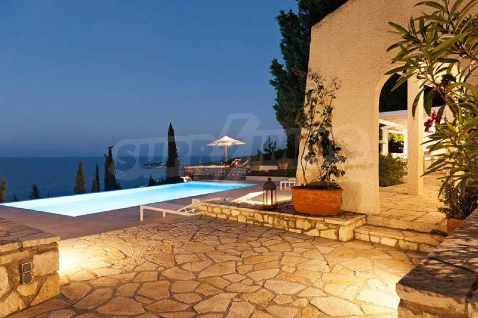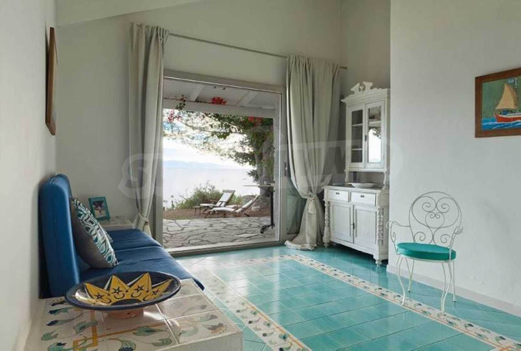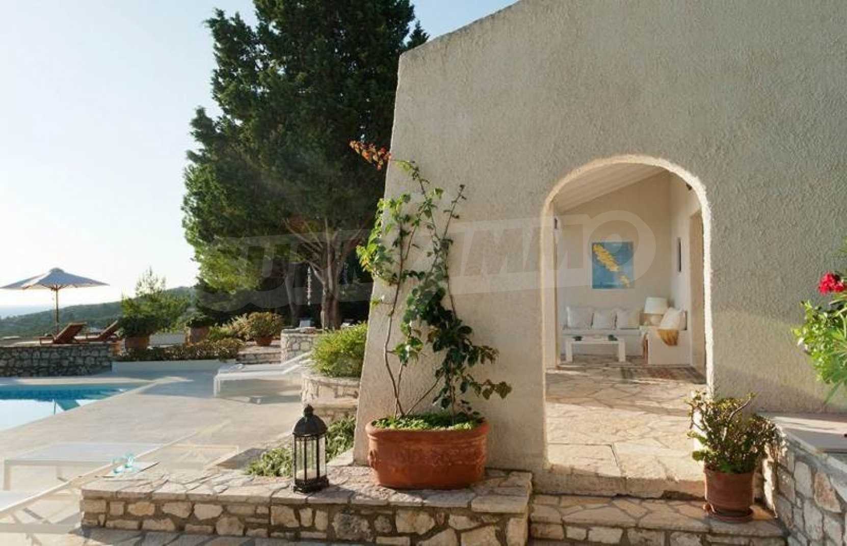 Комфорт, простота и фешенебельность-эти слова характеризуют виллу, которая продается на острове Паксос. Великолепное месторасположение, панорамные виды безбрежного голубого моря делают эту виллу необыкновенной. Бассейн и сад позволяют расслабиться и отдохнуть, набраться сил. Великолепная гостиная, которая позволяет нам наслаждаться морским видом и зеленью кипарисов, камин в гостиной облицован мрамором. Просторная и комфортная, удобная кухня снабжена самыми необходимыми бытовыми кухонными приборами. Всё окружающее пространство наполнено запахами цветов, кустарников и моря. Хочеться взять акварель и запечатлеть эти мгновения и палитру красок, корорую нам дарит каждый день пребывания на этом удивительном острове. Основные 3 спальни с ванными комнатами и балконами,которые открывают нам захватывающий панорамный вид. Спальня для гостей имеет встроенную кровать,стилизованную под 80-е года и ванную.