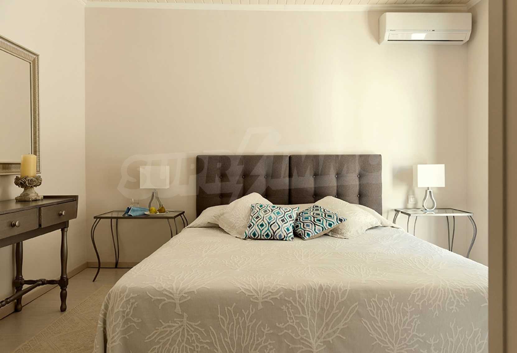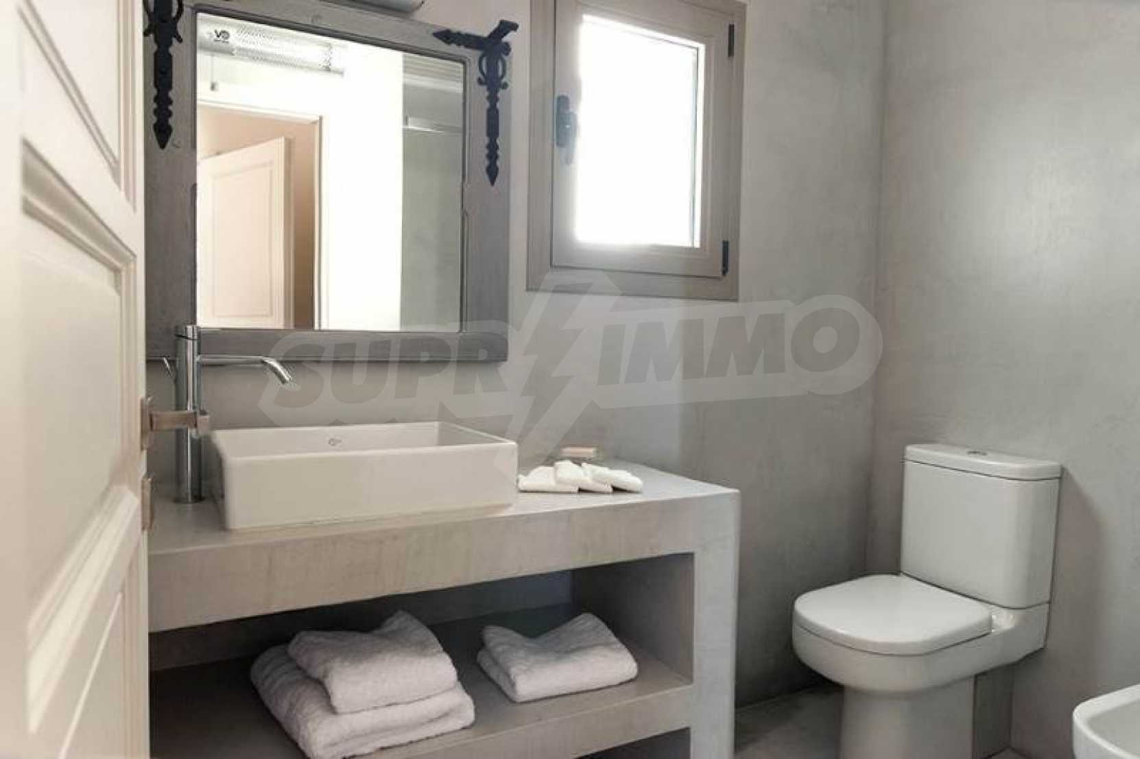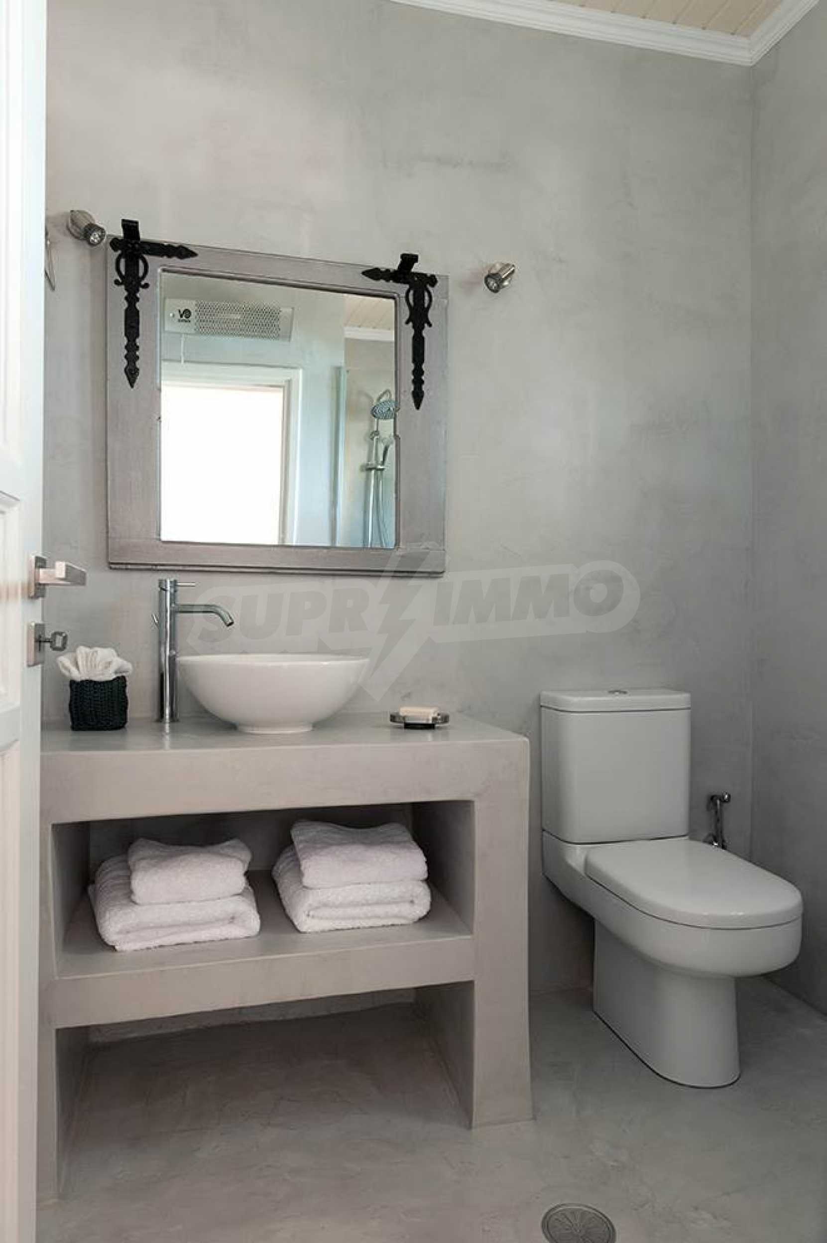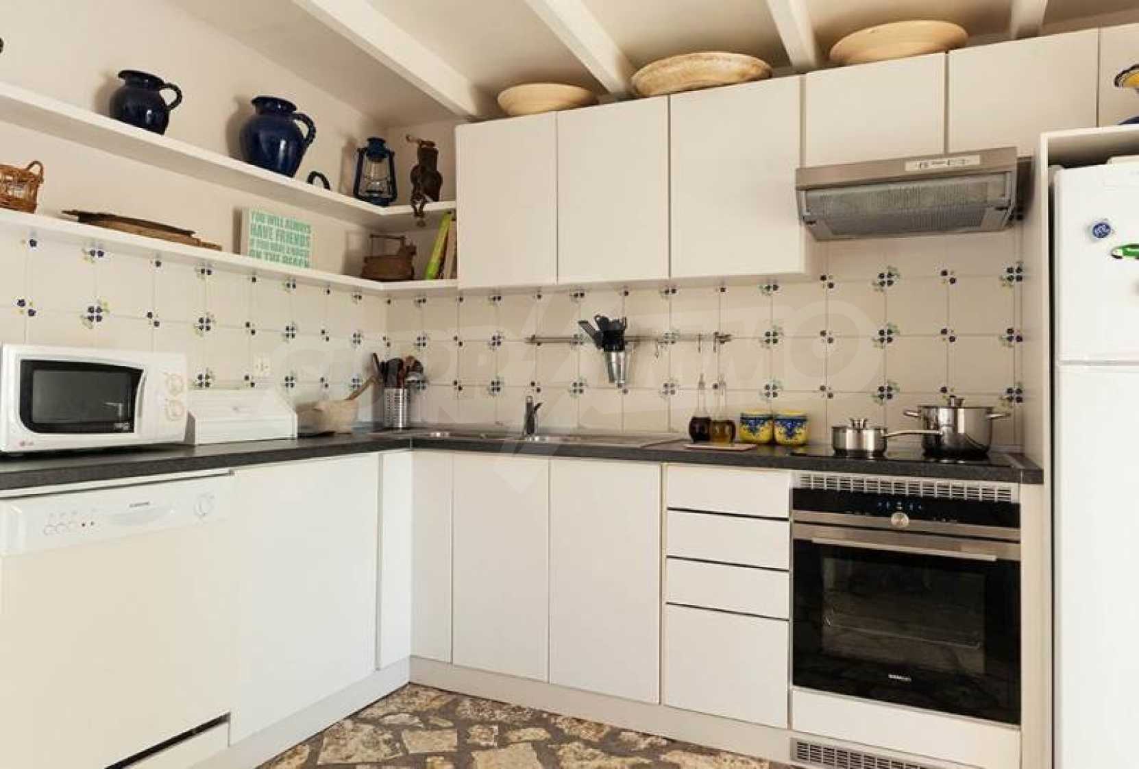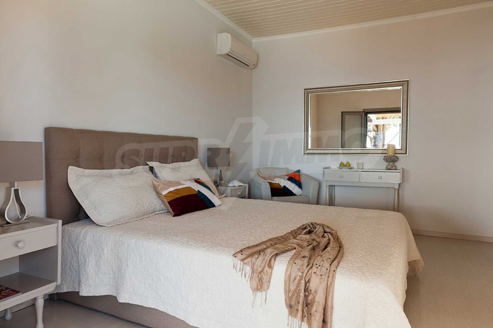 Комфорт, простота и фешенебельность-эти слова характеризуют виллу, которая продается на острове Паксос. Великолепное месторасположение, панорамные виды безбрежного голубого моря делают эту виллу необыкновенной. Бассейн и сад позволяют расслабиться и отдохнуть, набраться сил. Великолепная гостиная, которая позволяет нам наслаждаться морским видом и зеленью кипарисов, камин в гостиной облицован мрамором. Просторная и комфортная, удобная кухня снабжена самыми необходимыми бытовыми кухонными приборами. Всё окружающее пространство наполнено запахами цветов, кустарников и моря. Хочеться взять акварель и запечатлеть эти мгновения и палитру красок, корорую нам дарит каждый день пребывания на этом удивительном острове. Основные 3 спальни с ванными комнатами и балконами,которые открывают нам захватывающий панорамный вид. Спальня для гостей имеет встроенную кровать,стилизованную под 80-е года и ванную.