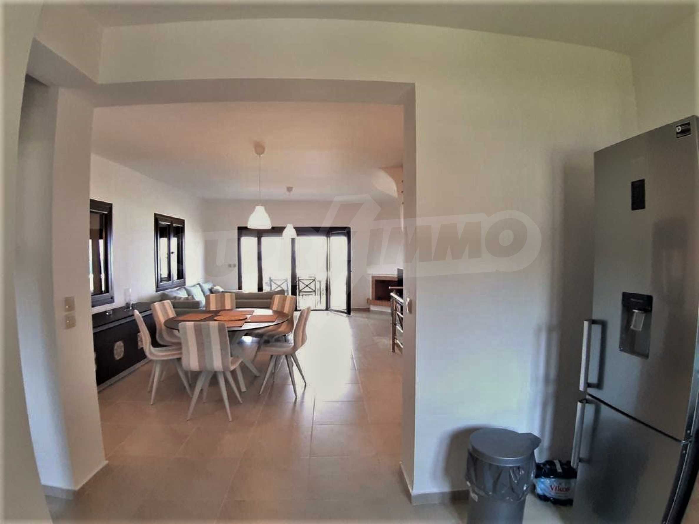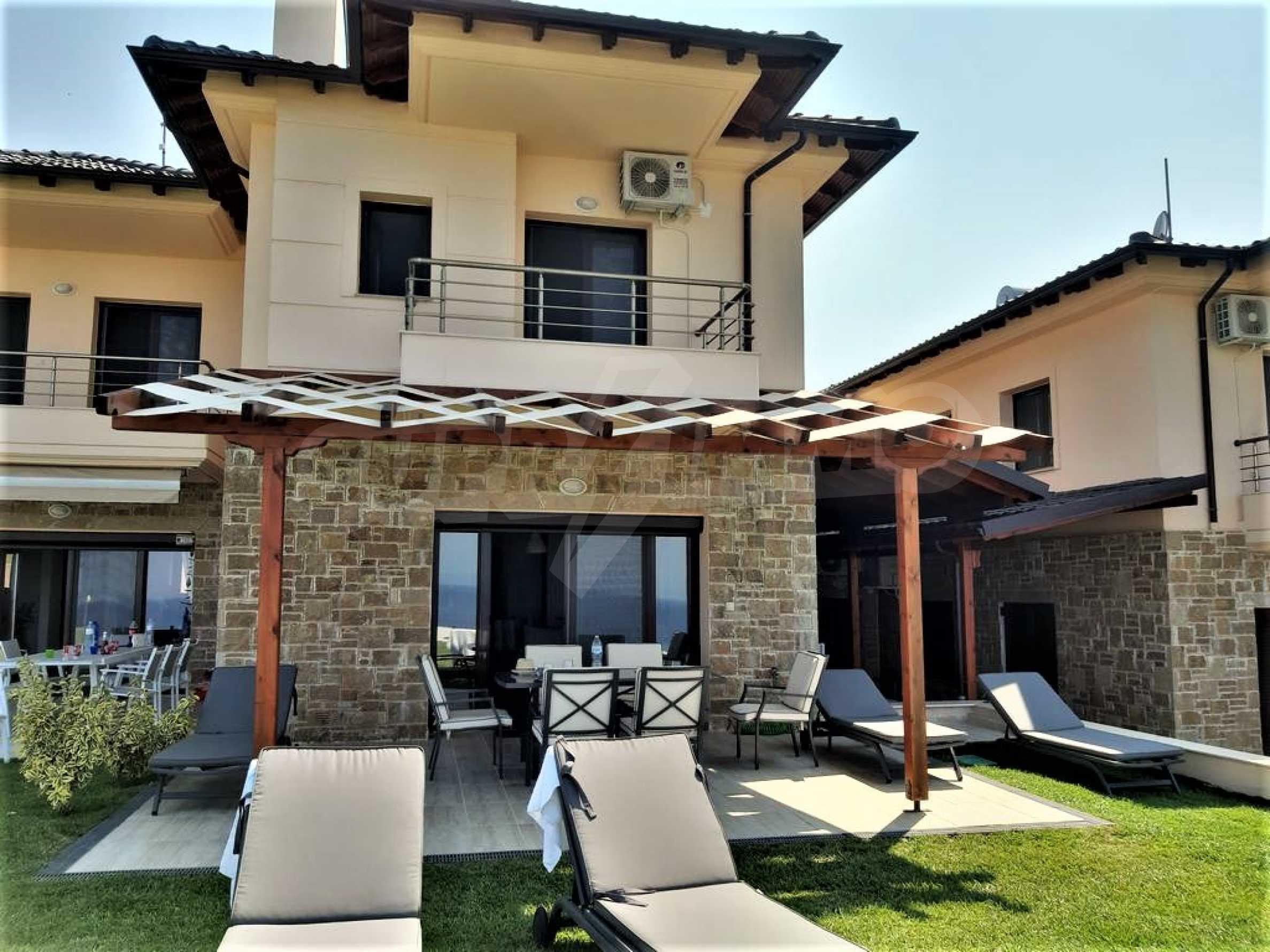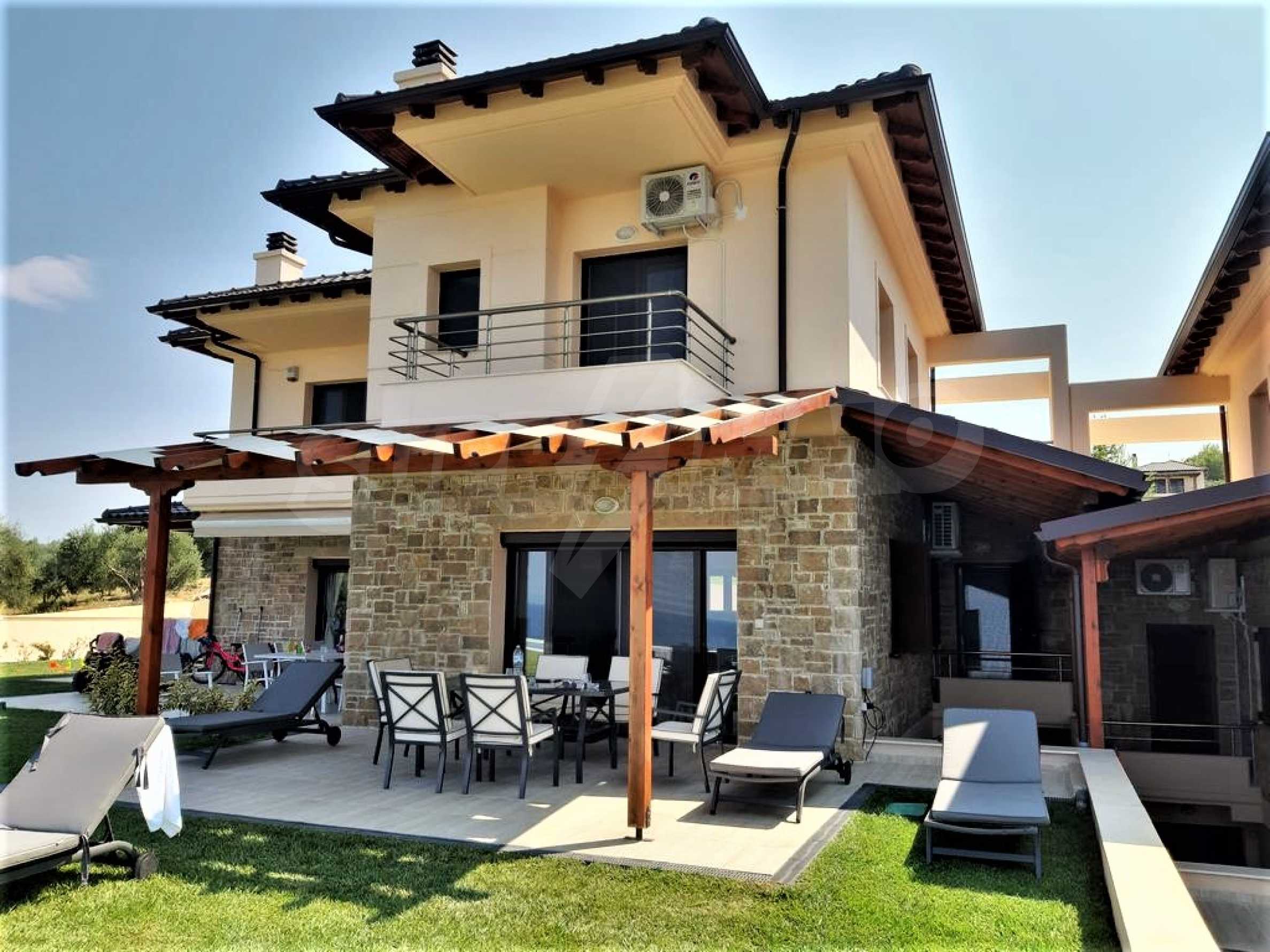 Предлагаем вам дом, часть комплекса у моря в Ханиотисе, Кассандре, Халкидики. Новое кирпичное строительство в характерном стиле с черепичной крышей. На вилле есть все удобства, обеспечивающие уют и комфорт, а также просторный двор с общим бассейном и прекрасным видом. В поселке есть все удобства - множество продуктовых магазинов, магазины одежды и сувениров, салоны красоты, таверны, парк и огромный красивый пляж с ресторанами.