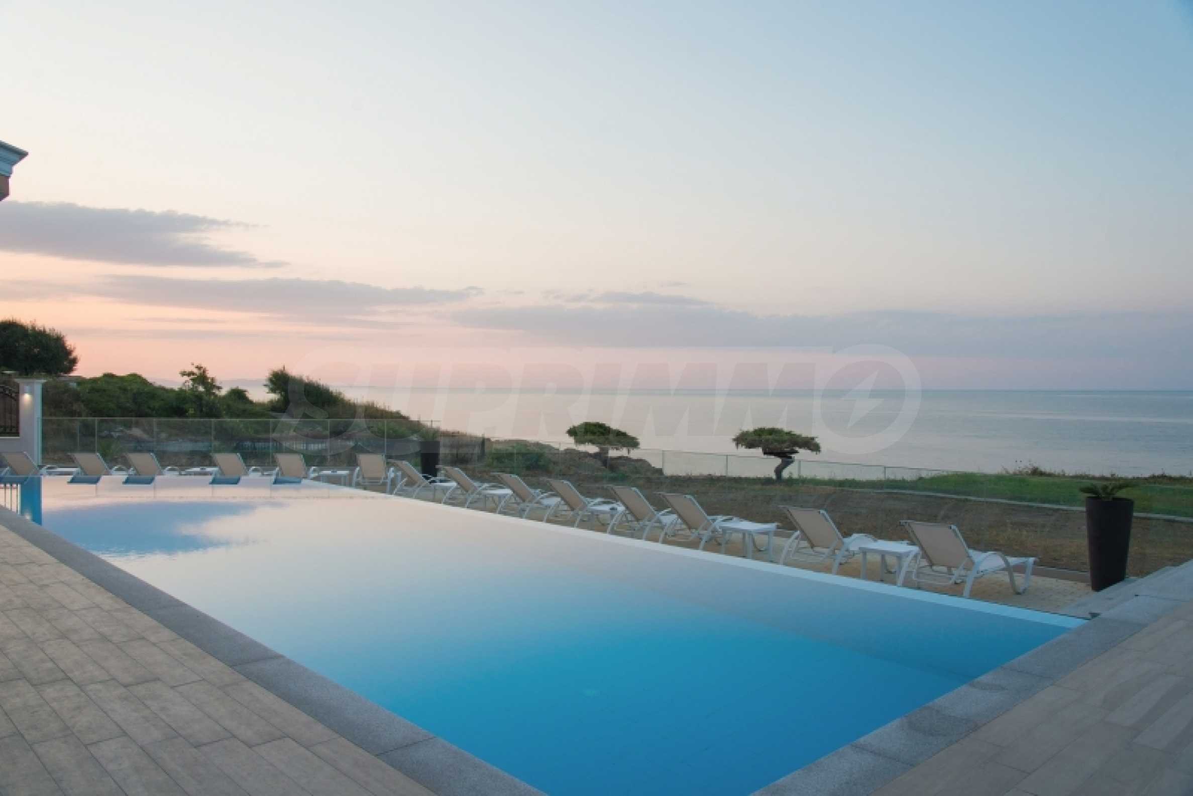 Недвижимость в таком комплексе – воплощение мечты: стиль и элегантность, впечатляющие виды на море, зелёные зоны и современный панорамный бассейн на первой линии. Роскошные апартаменты и студии обставлены со вкусом и в современном стиле, создавая идеальные условия для прекрасного семейного или романтического отдыха в этом тихом и спокойном районе болгарского черноморского побережья.