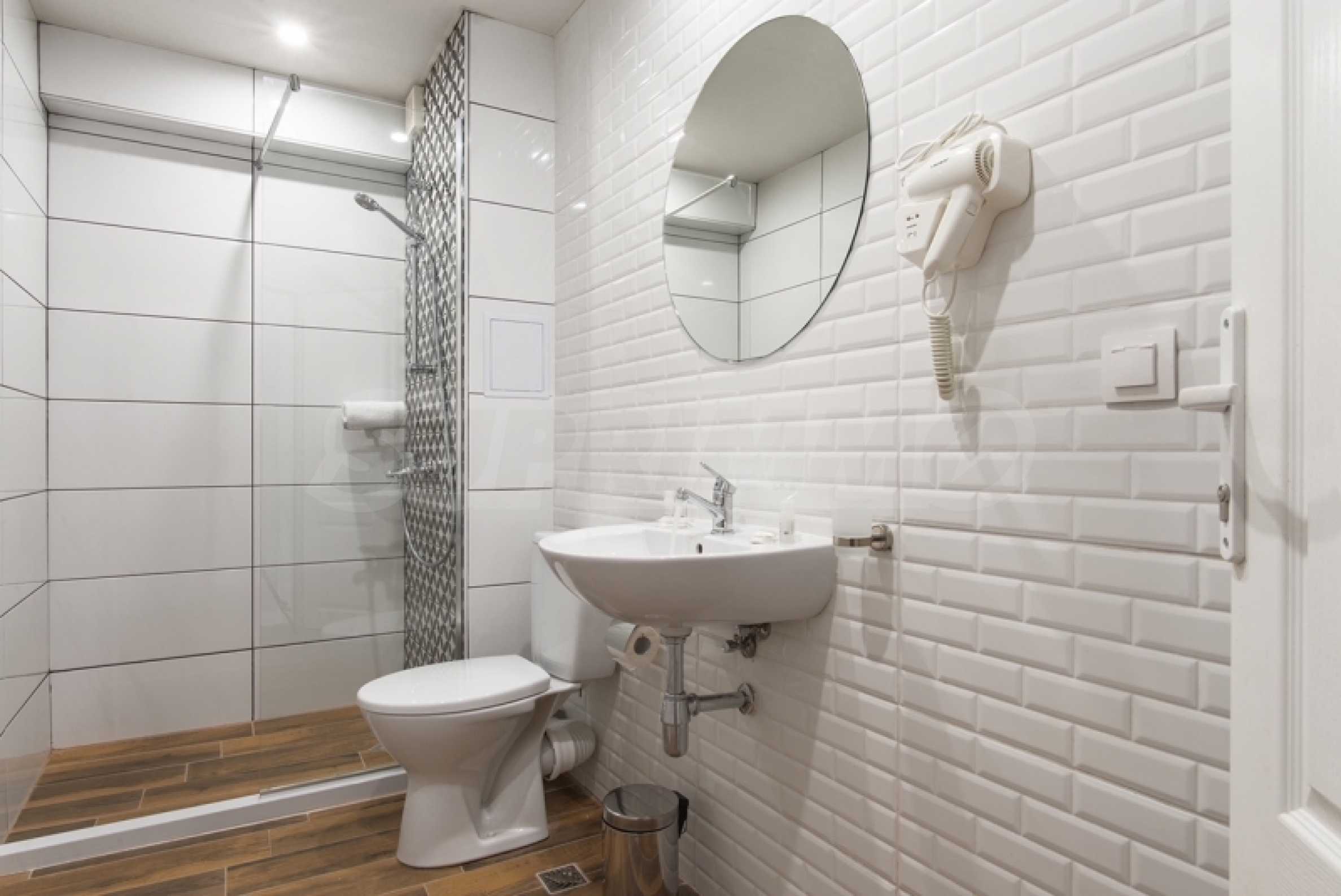 - полностью оборудованные ванные комнаты с душевыми кабинами, сантехникой, аксессуарами и водонагревателями;