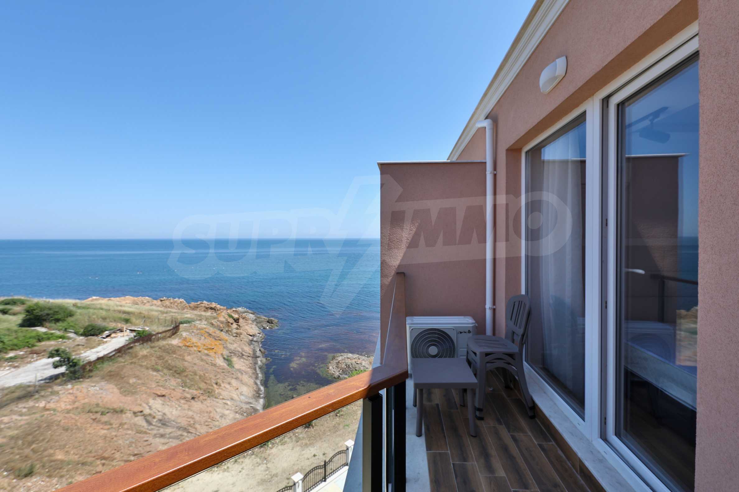 Недвижимость в таком комплексе - воплощение мечты - много стиля и элегантности, впечатляющий вид на море, зеленые зоны и современный панорамный бассейн на первой линии. Роскошные апартаменты и студии обставлены со вкусом и современным подходом, что создает предпосылки для прекрасного семейного или романтического отдыха в этом тихом и спокойном районе болгарского побережья Черного моря.