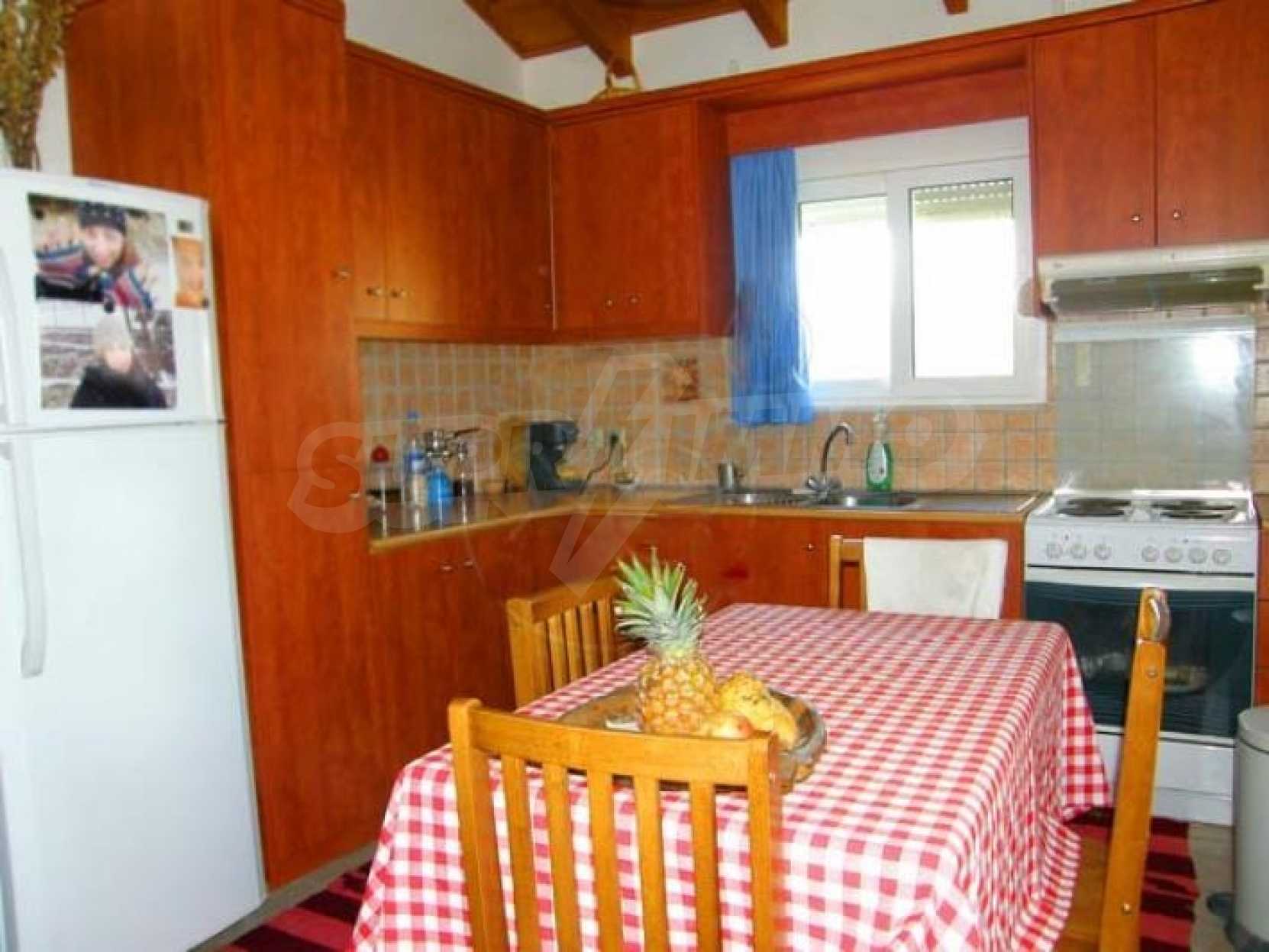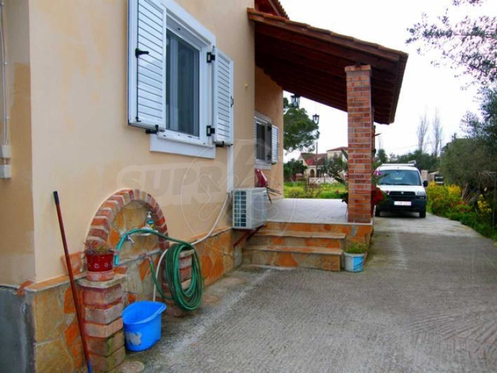 Закинф, недавно обставленный двухуровневый дом площадью 100 кв.м., продается. Эта традиционная вилла на возвышении на первом этаже, светлая, 3 спальни, 2 ванные комнаты, гостиная открытой планировки, кухня, центральное отопление, камин, панорамный вид, открытая парковка, кладовая и сад. Внутренняя лестница, ведущая на чердак, к третьей спальне имеет собственную ванную комнату. Имеет отопление, деревянные потолки, сейсмостойкую конструкцию. К тому же крытый гараж, комнатная горелка, предназначенная для барбекю. Ухоженный сад с деревьями и цветами. Земельный участок под дом 1150 кв.м., имеет 2 входа, главный дом и второстепенный. Также есть возможность построить второй дом. Год постройки 2007. Расстояния: 4км от города, 3км до моря, 4км от аэропорта. Цена: 280,000 евро договорная