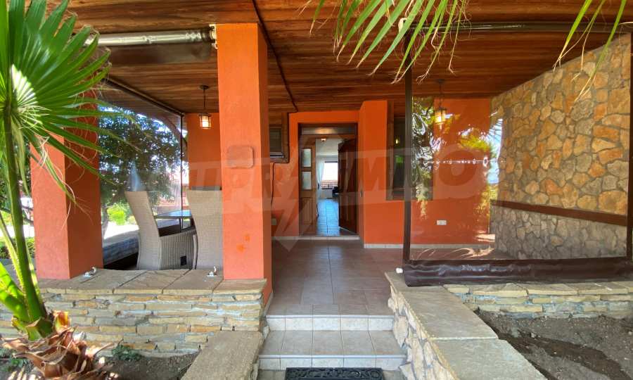 Дом типа «дуплекс», с приятной благоустроенной верандой, гостиной с кухней и террасой с видом на море, двумя спальнями с общей террасой с видом на море, двумя ванными комнатами. Из дома открывается вид на уникальные раскопки, памятник культуры - Колокитский некрополь.