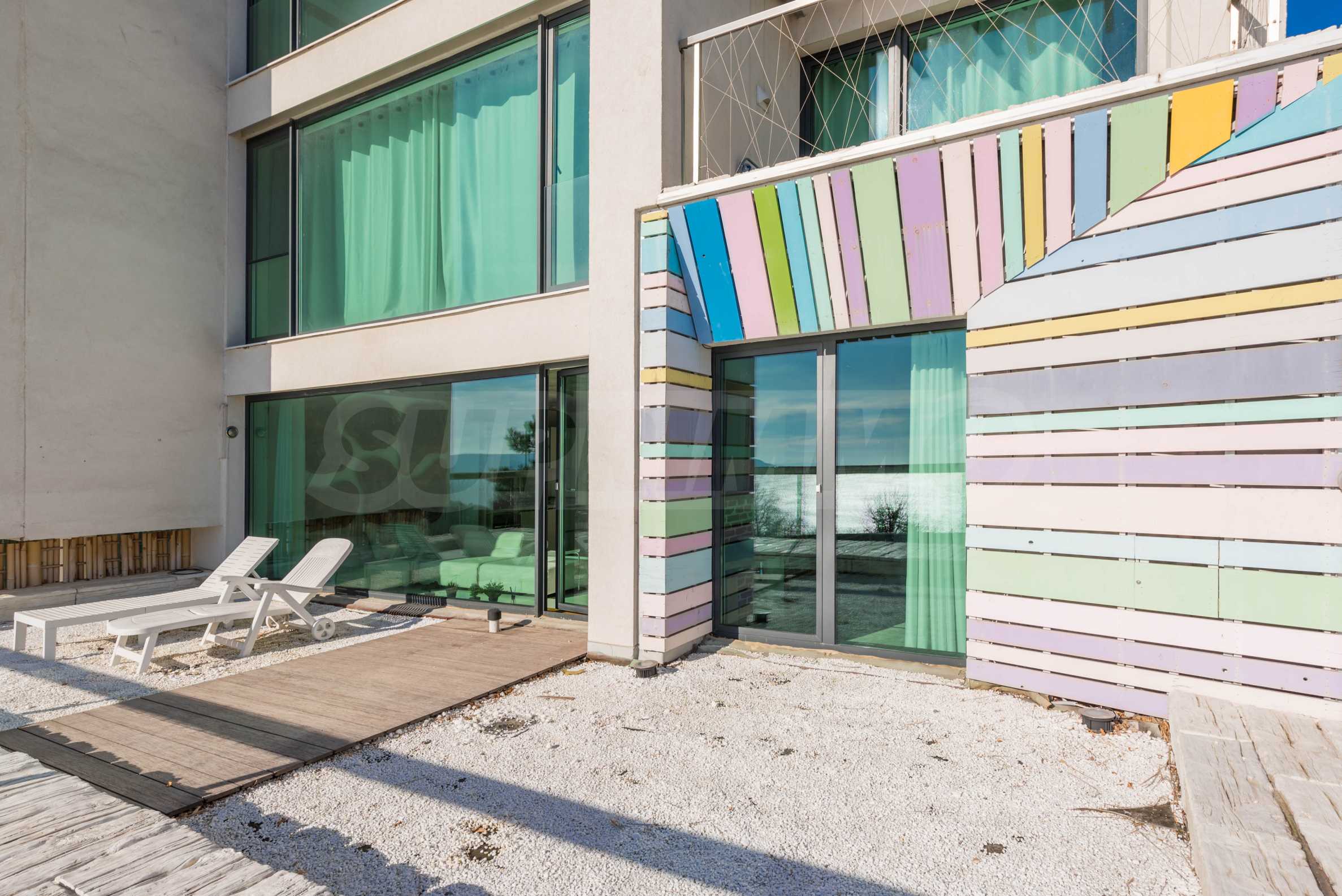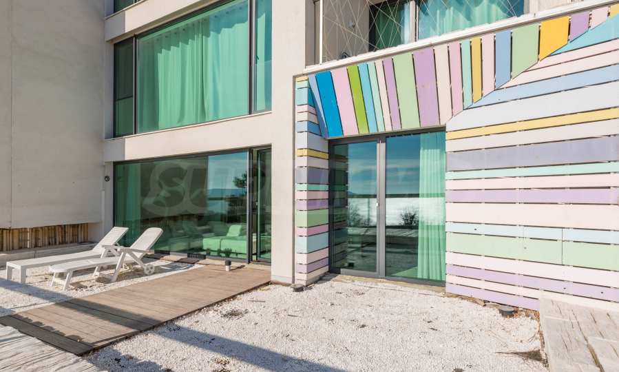 Неповторимая трехкомнатная квартира расположена на первом этаже «Умного дома» в прибрежном районе Св. Николая в Варне.