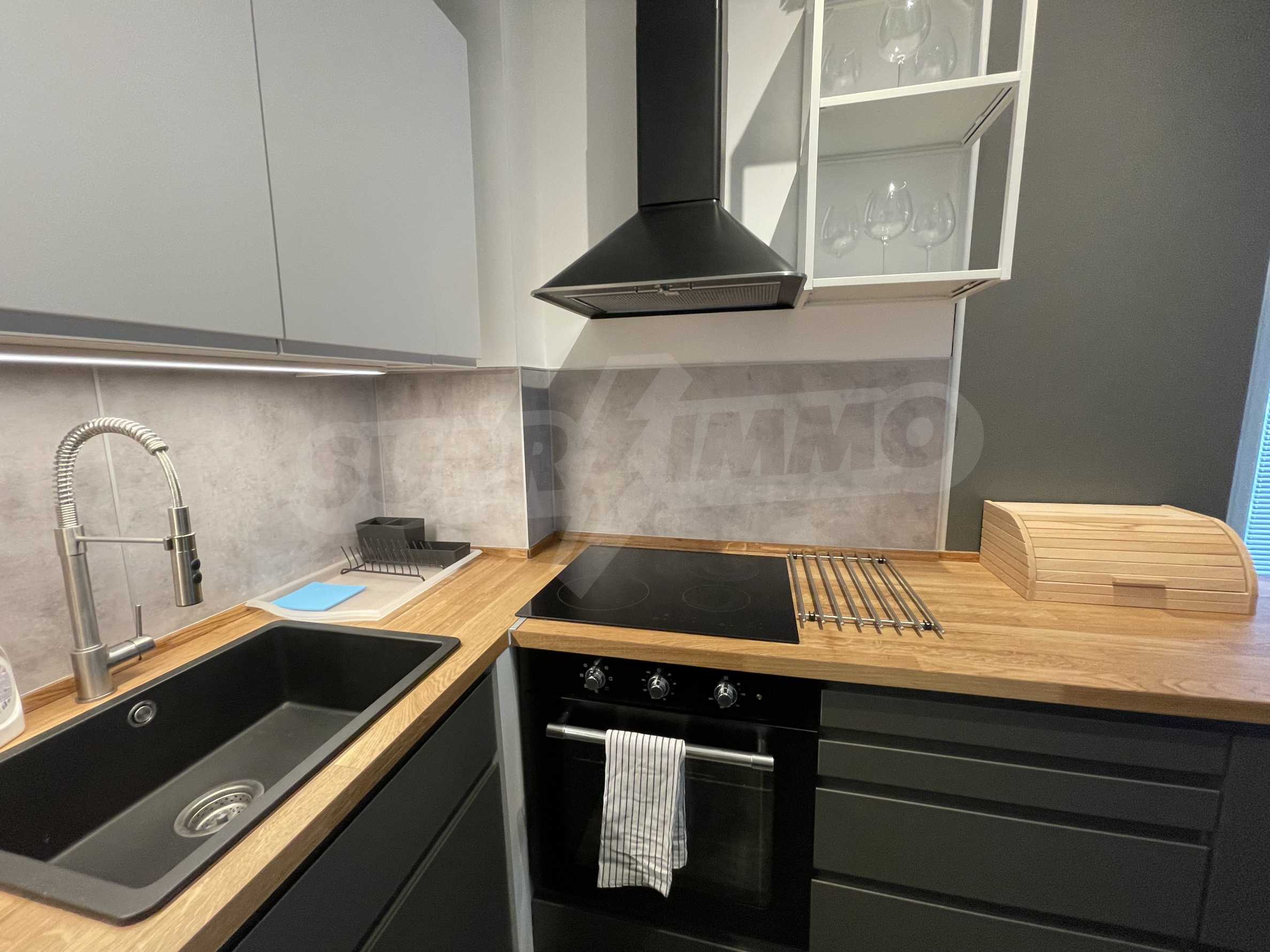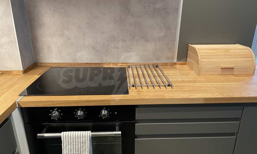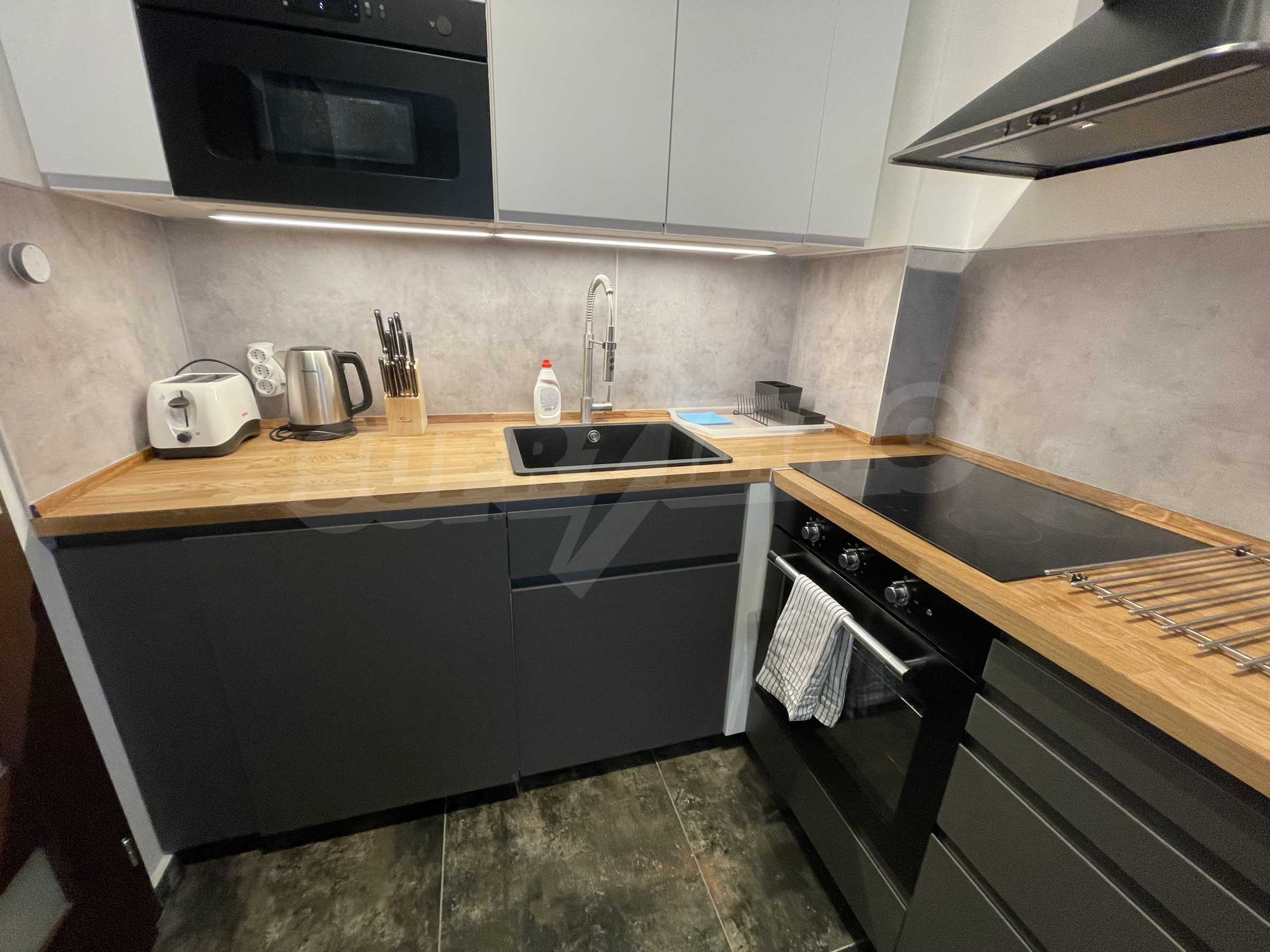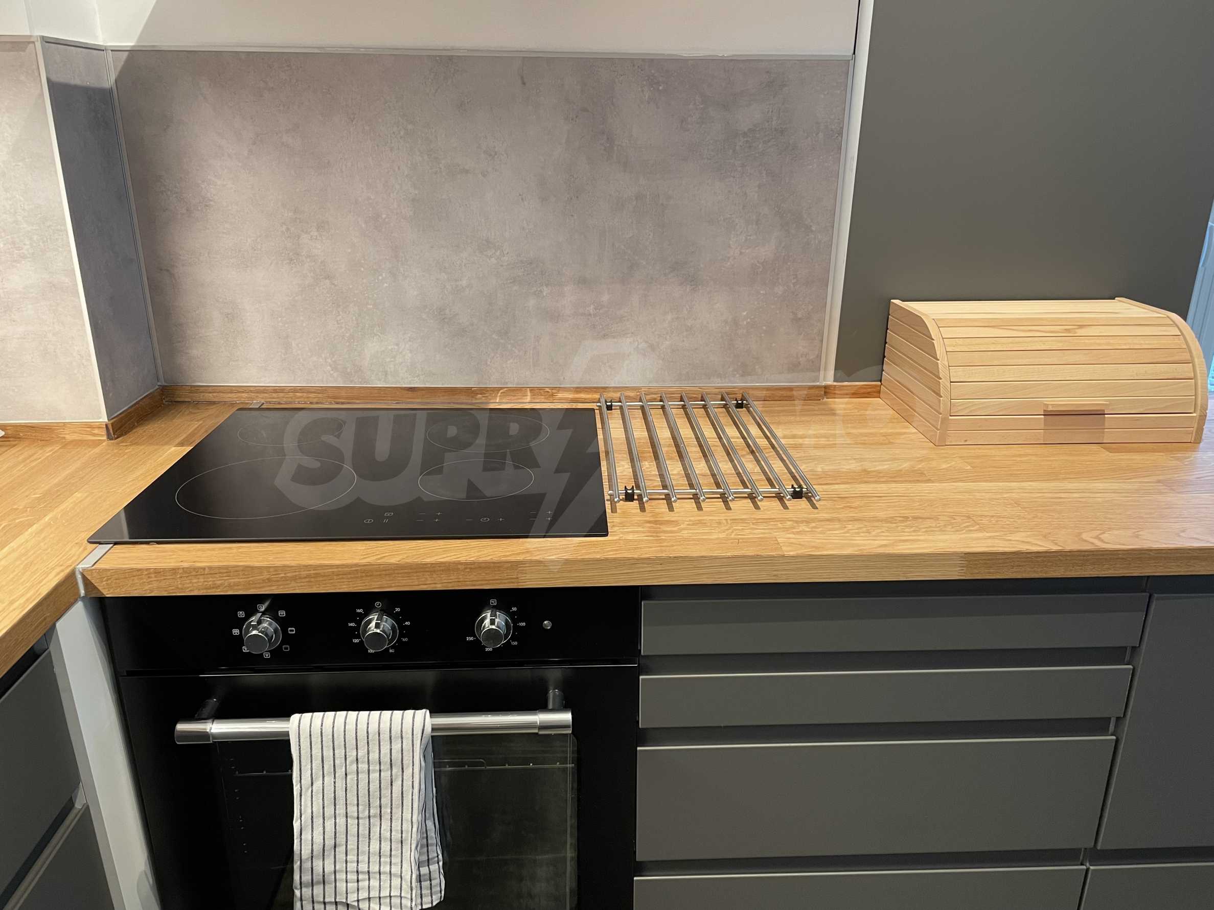 Он расположен на первом этаже, общей площадью 52,08, жилой площадью 45,95 квадратных метров и функциональной планировкой: прихожая, гостиная с высококачественной кухней, удобная спальня и ванная комната. К нему принадлежит сад площадью 8,63 квадратных метра, подходящий для отдыха. Недвижимость компактная, с современным интерьером в серых тонах, высококачественным оснащением, эффектным освещением и деталями. В доме газовое отопление с теплыми полами (автоматическая регулировка) и инверторный кондиционер "Mitsubishi". Также установлена комбинированная стиральная машина с сушкой и посудомоечной машиной. В доме высокие потолки 3,3 метра.