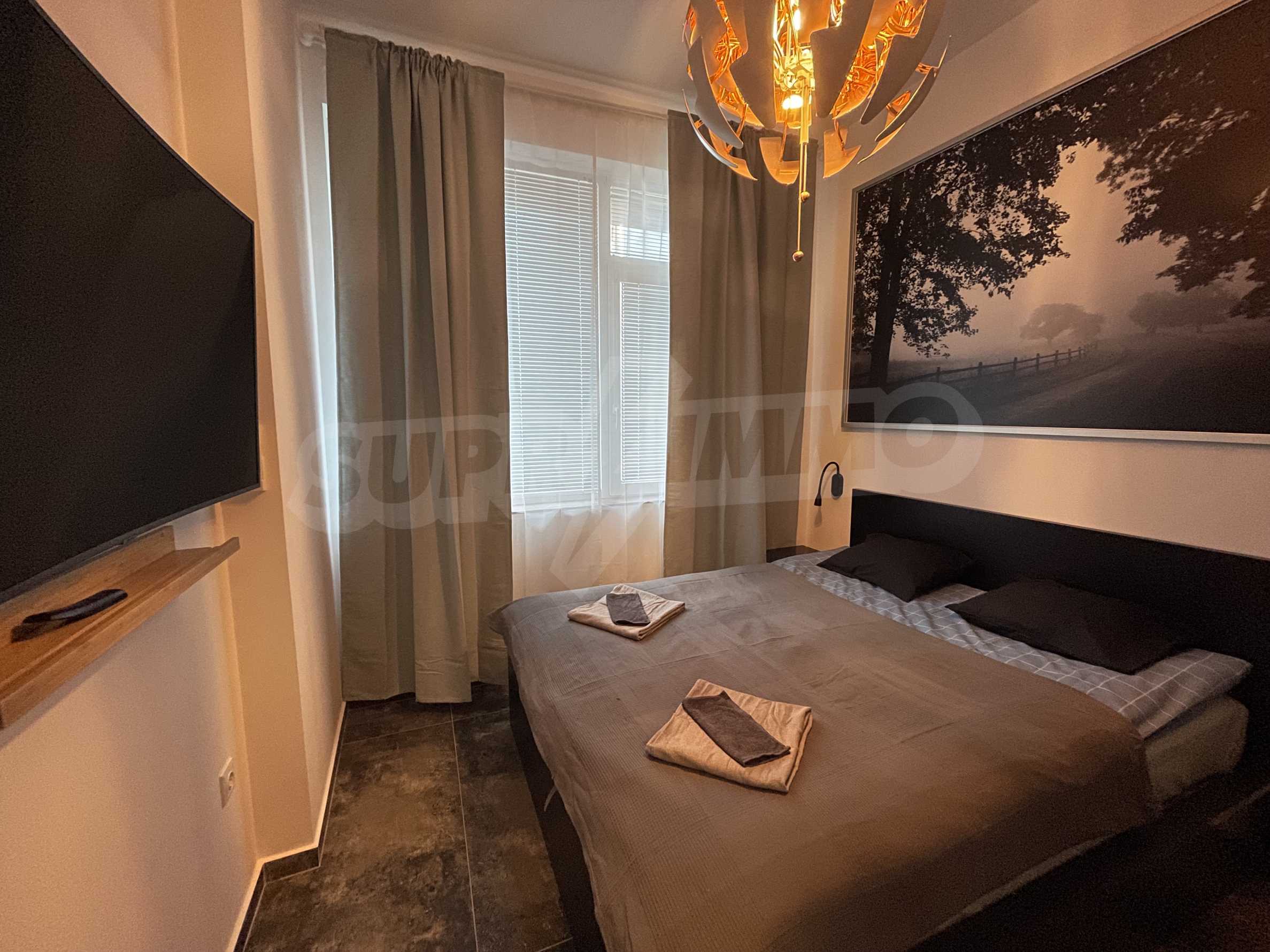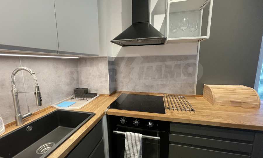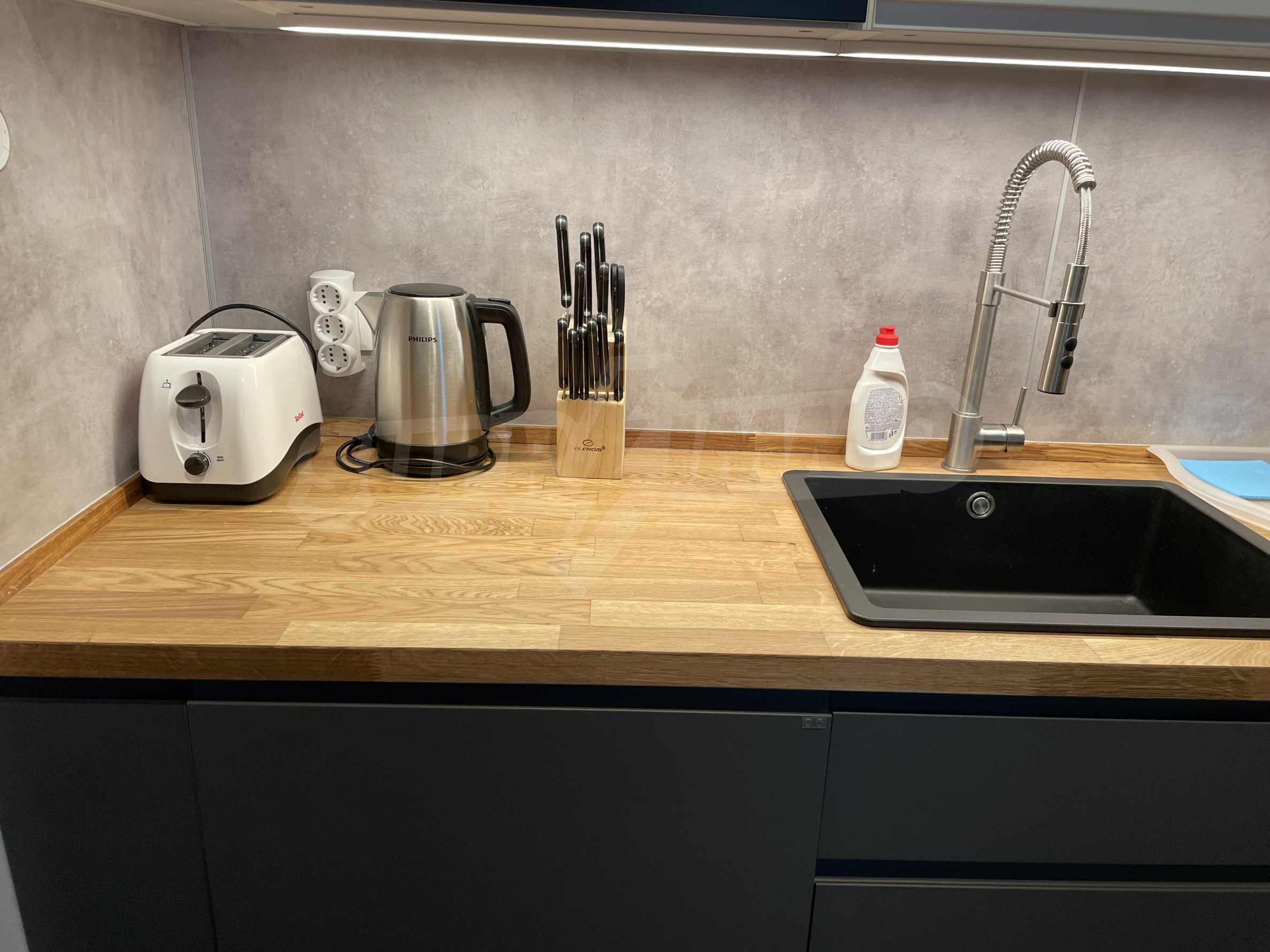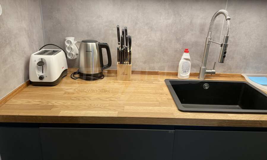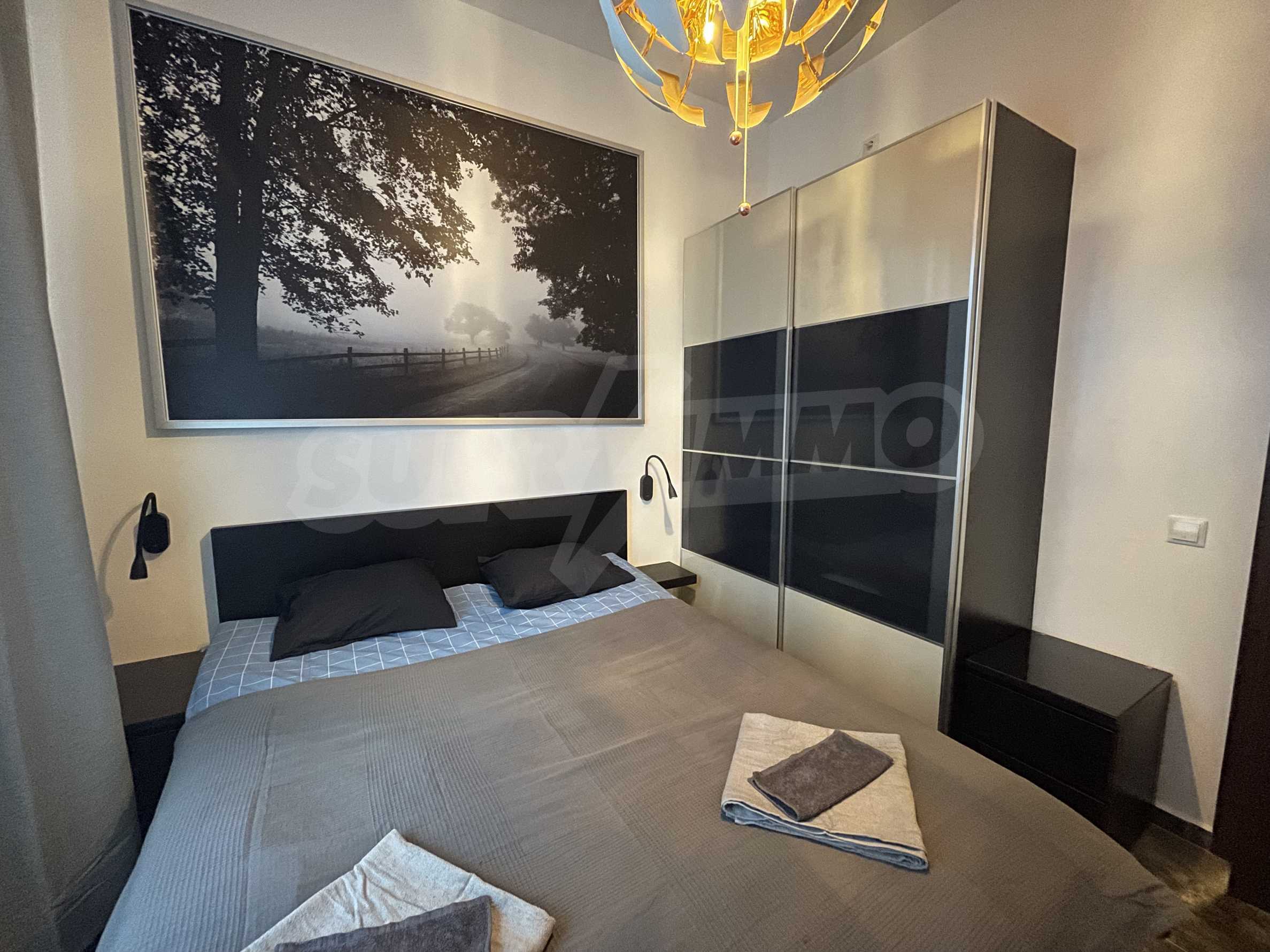 Он расположен на первом этаже, общей площадью 52,08, жилой площадью 45,95 квадратных метров и функциональной планировкой: прихожая, гостиная с высококачественной кухней, удобная спальня и ванная комната. К нему принадлежит сад площадью 8,63 квадратных метра, подходящий для отдыха. Недвижимость компактная, с современным интерьером в серых тонах, высококачественным оснащением, эффектным освещением и деталями. В доме газовое отопление с теплыми полами (автоматическая регулировка) и инверторный кондиционер "Mitsubishi". Также установлена комбинированная стиральная машина с сушкой и посудомоечной машиной. В доме высокие потолки 3,3 метра.